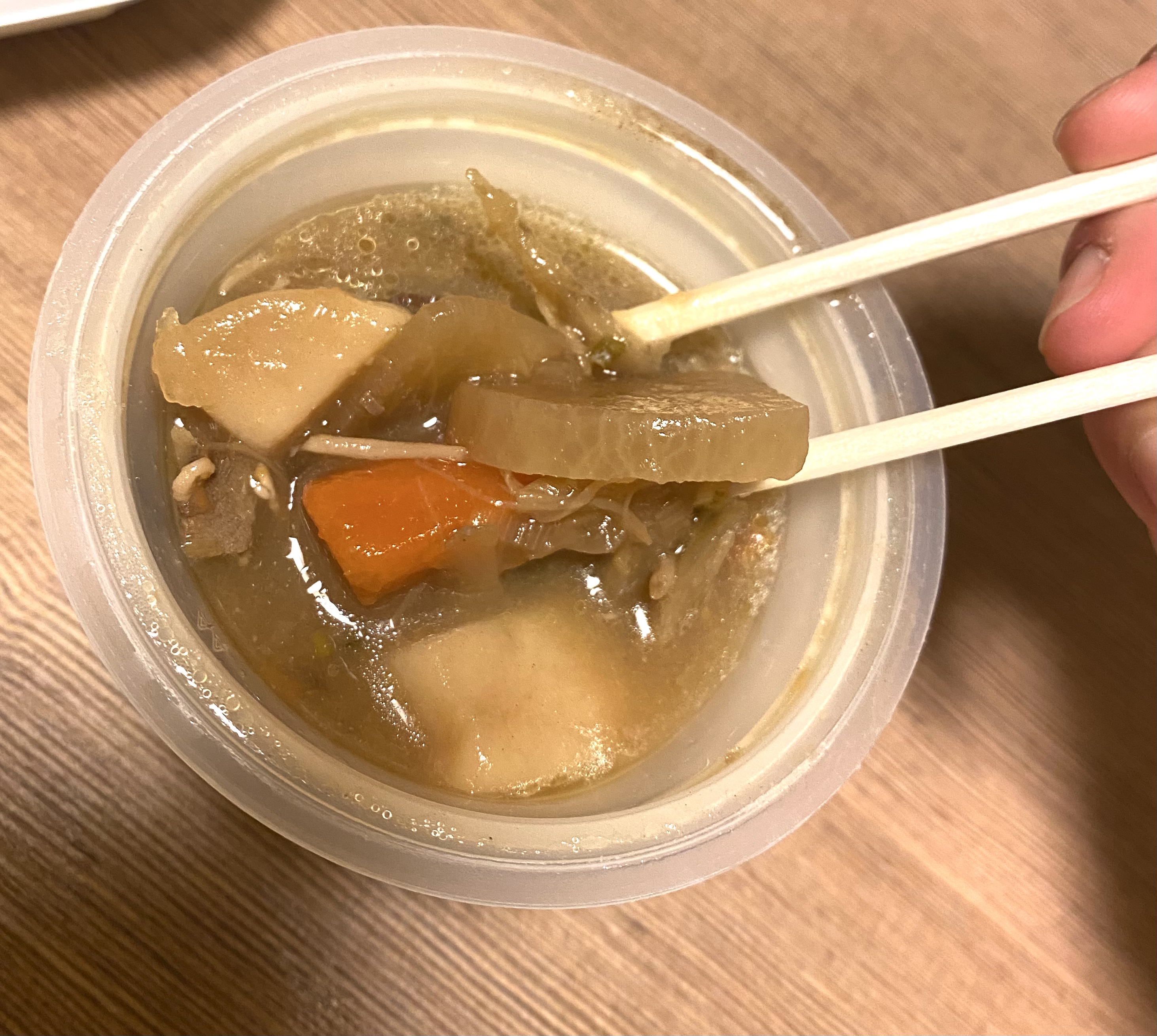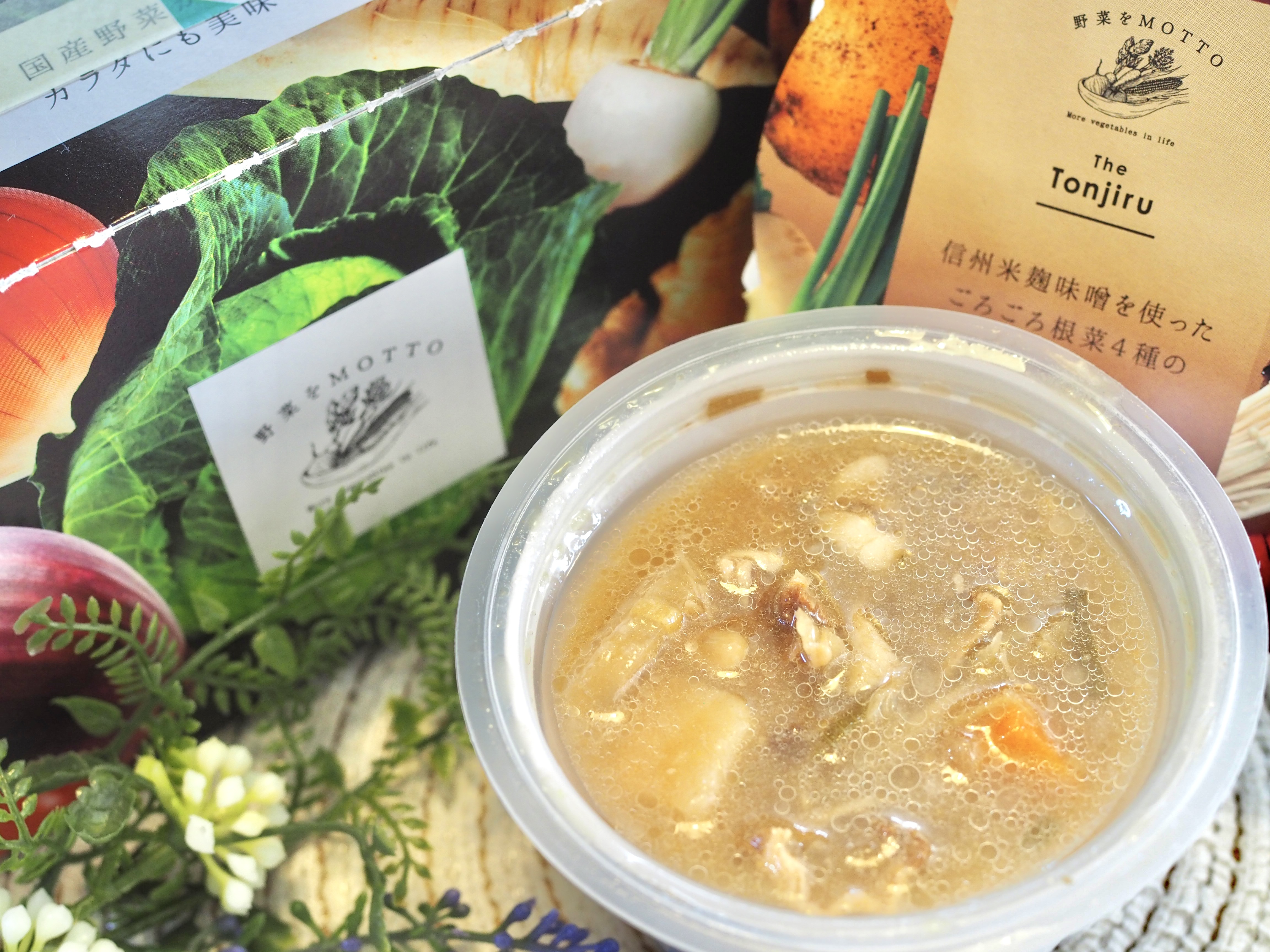 食べてみると、味噌と野菜の優しい香りと共にほっこり安心する甘みが広がり、味噌や具材の旨味がぎゅっと感じられます。