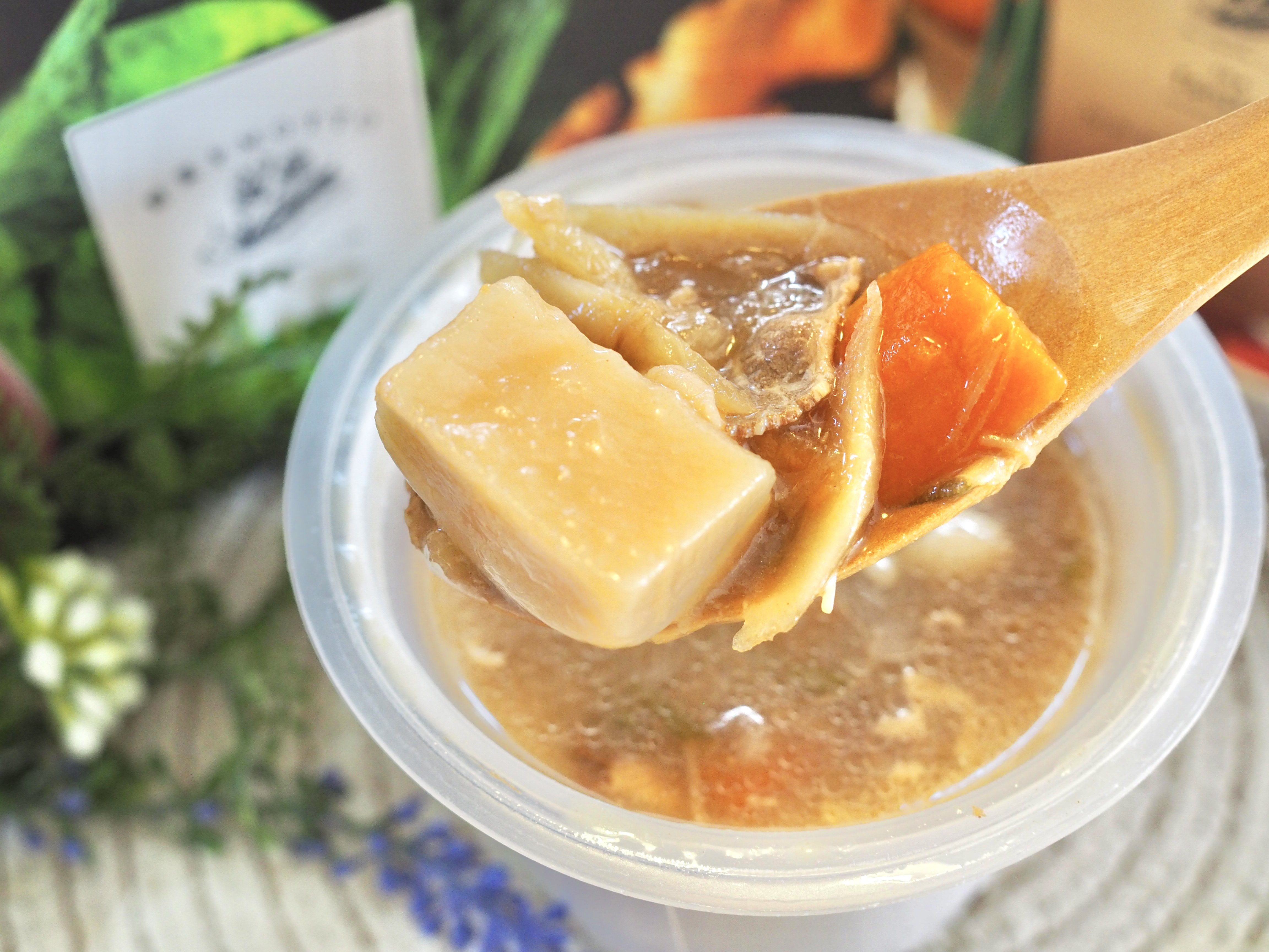 蓋を開けるとまた嬉しい驚きで、大ぶりの具材がごろごろ、たくさん入っています。