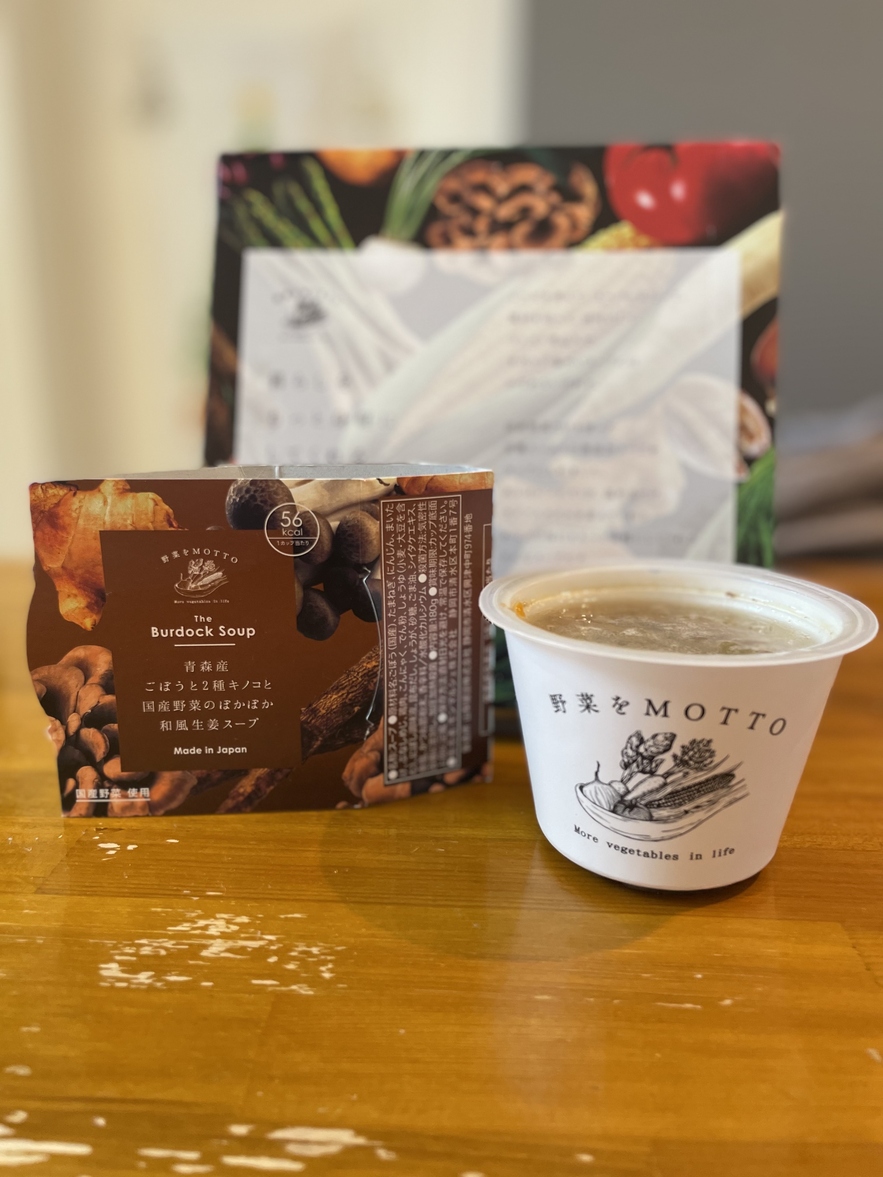 青森産ごぼうと2種キノコと国産野菜のぽかぽか和風生姜スープ