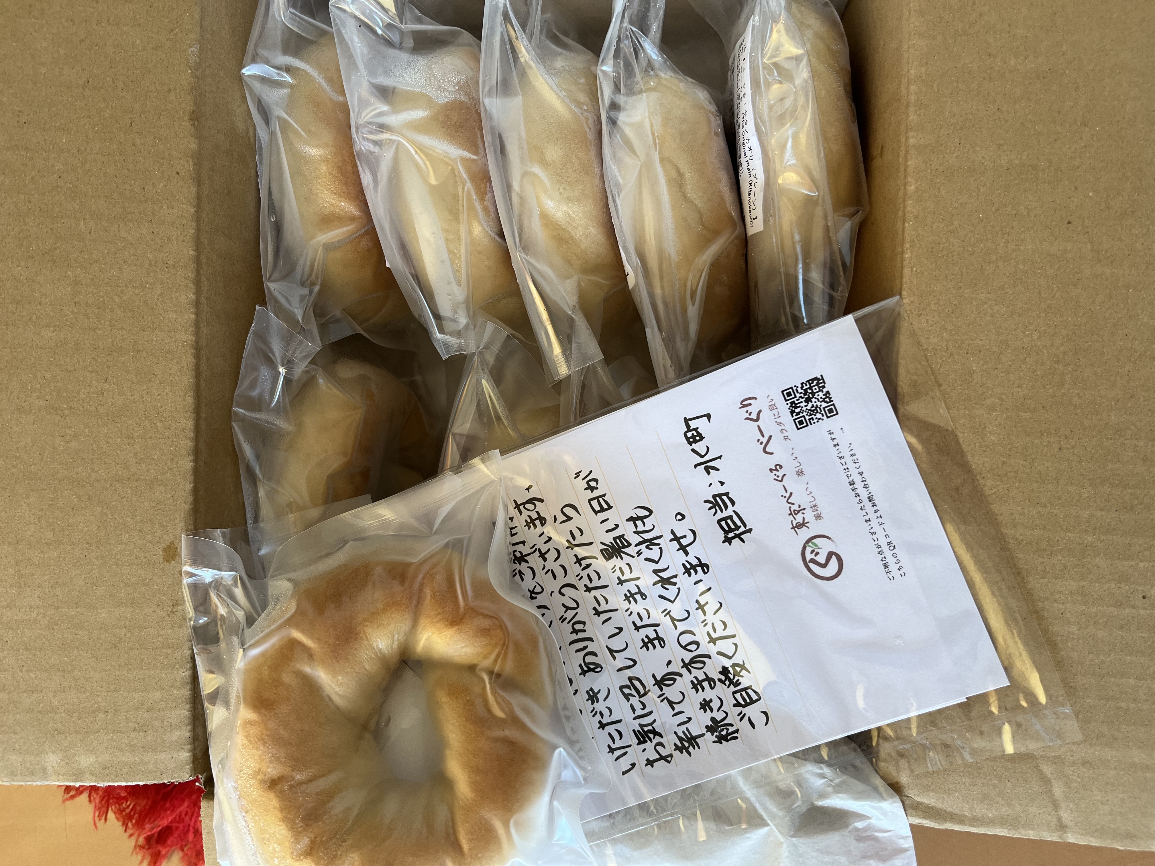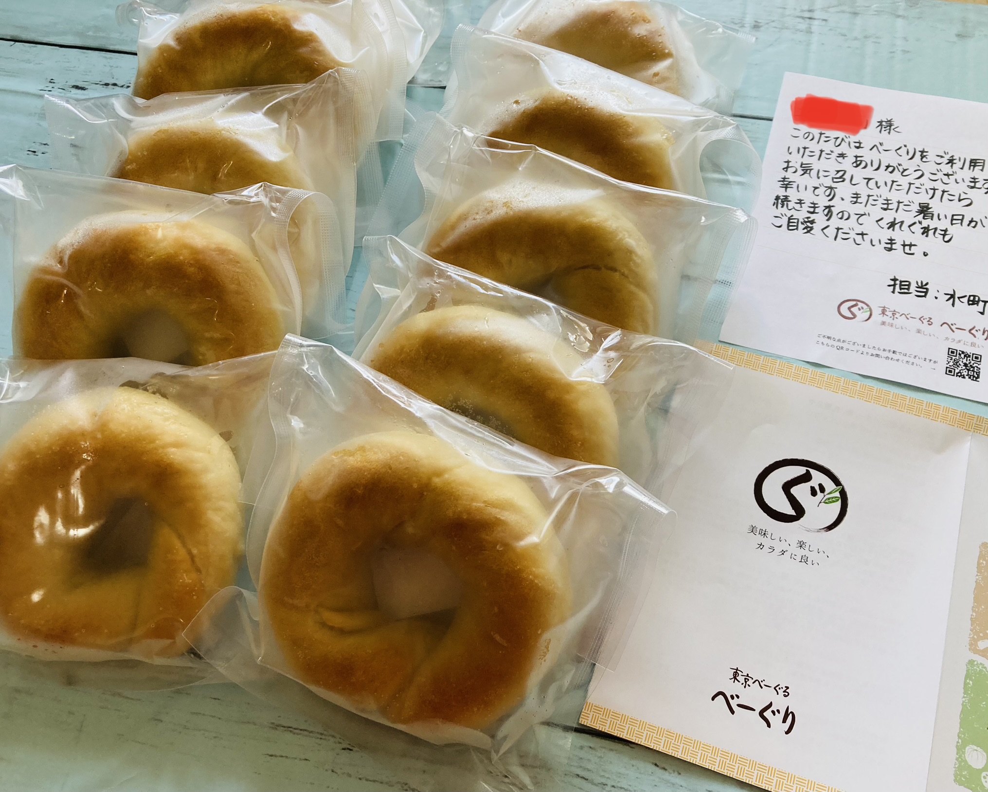 メッセージと同封されている『東京べーぐる べーぐり』様のリーフレット。商品の説明や美味しい食べ方等が書かれていました。