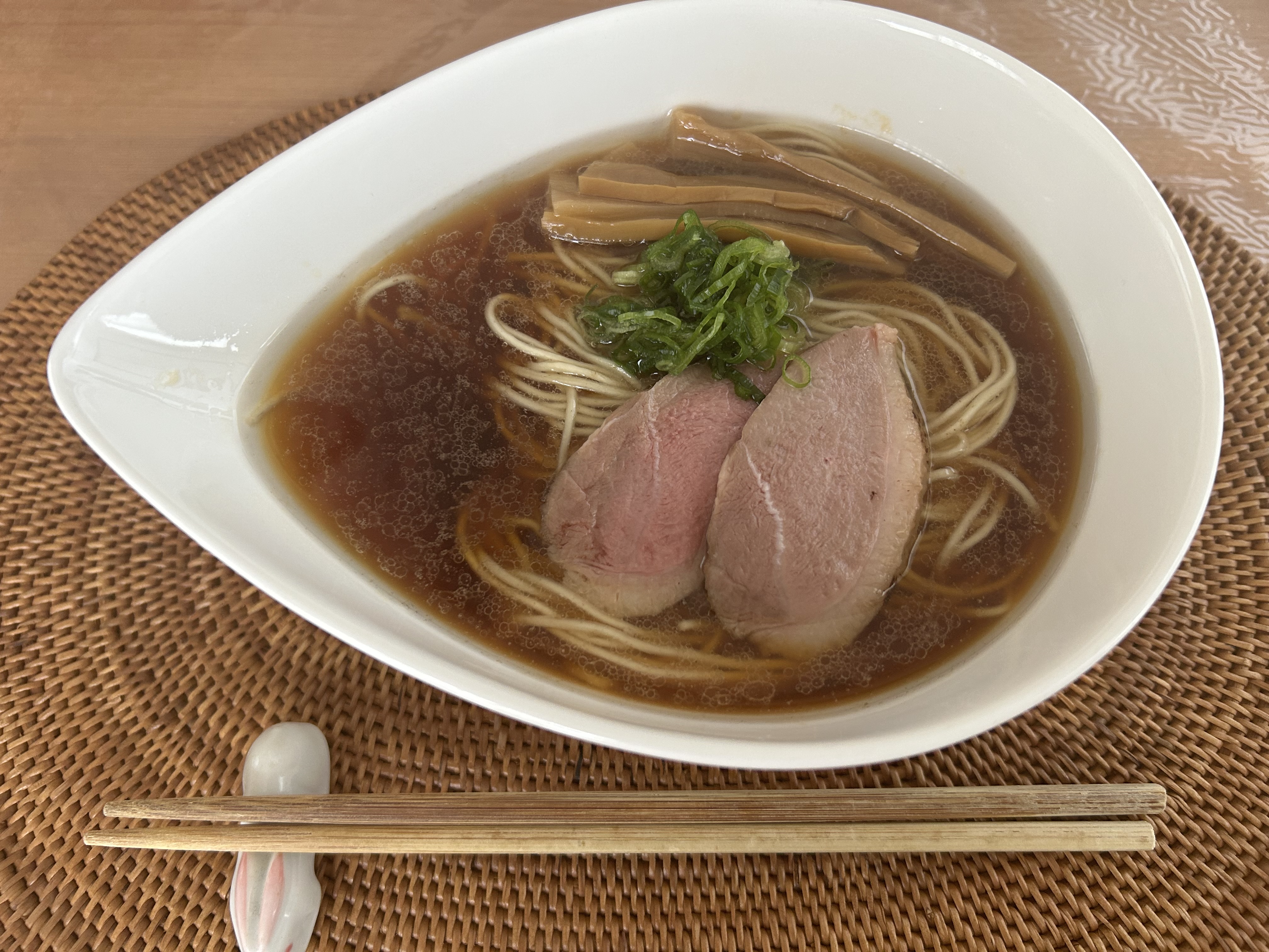 ラーメンのスープは鶏ガラや豚骨で出汁がとられることが多い印象でしたが、鴨の肉や骨から出汁をとり、鴨肉のチャーシューをトッピングした豪華な一杯を、自宅で気軽に頂けるのが嬉しい、と思いました。
