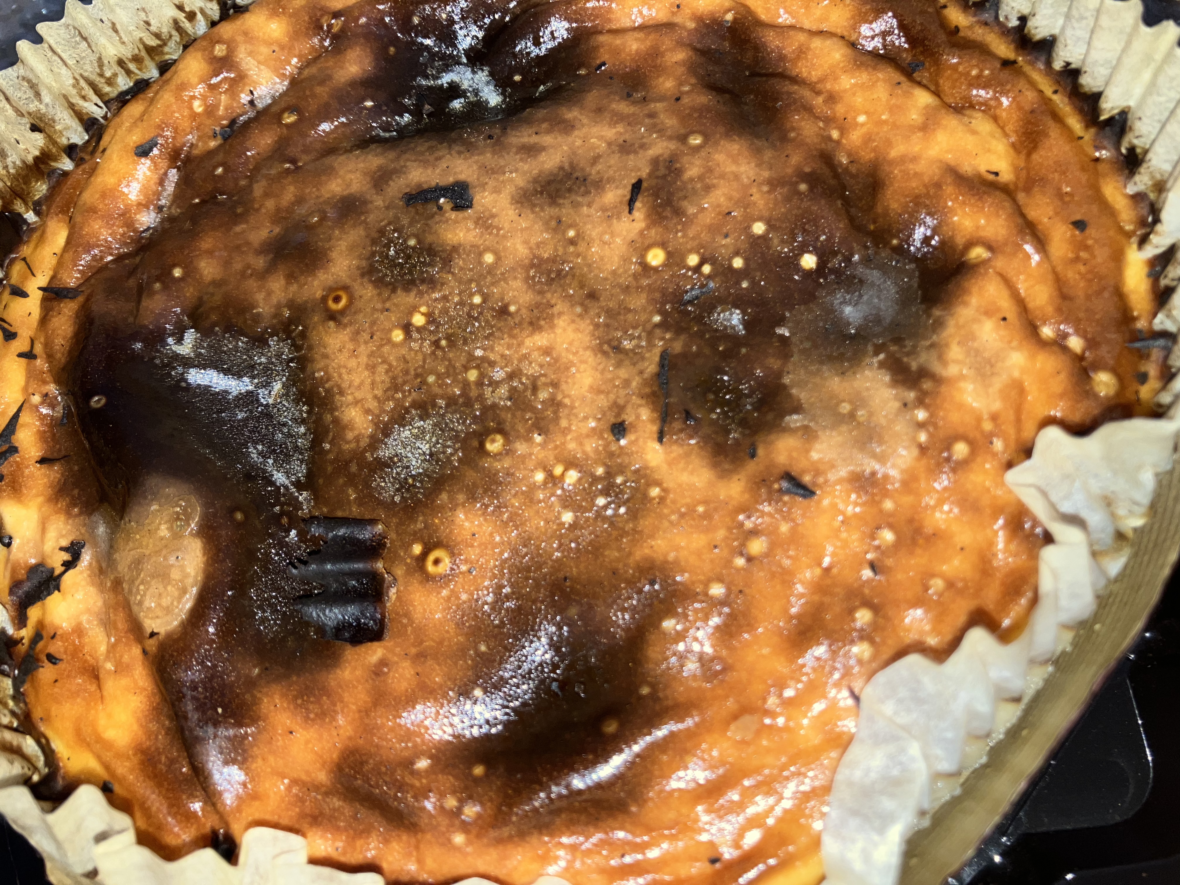 香ばしく焼き上げられた表面と、柔らかく濃厚でなめらかなプリンのような食感のバスクチーズケーキは、スペイン現地ではワインのお供としても楽しまれています。コショウをふりかけると、濃厚なチーズの風味がさらに引き立ち、洋酒とのペアリングもおすすめです。