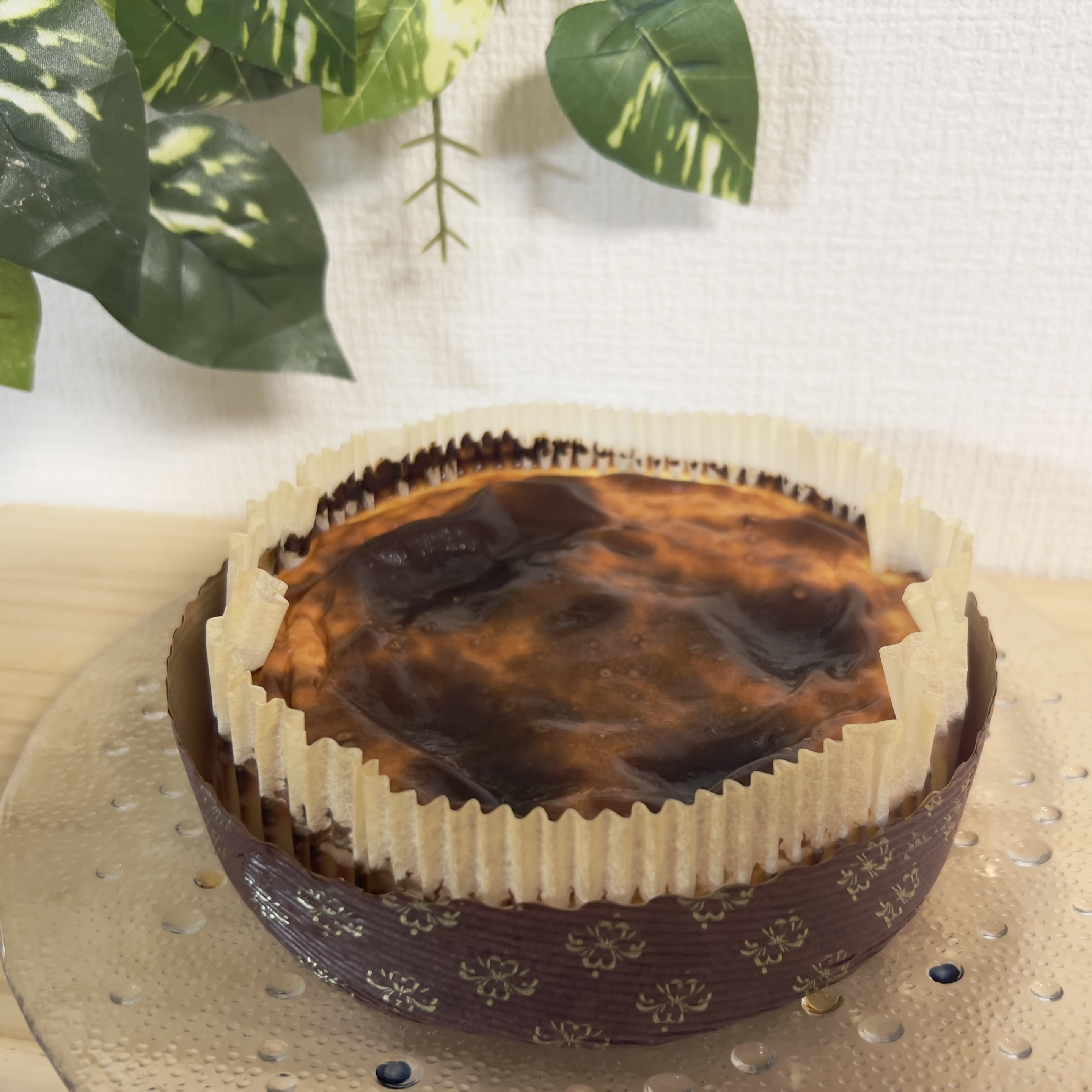 本場スペイン産「バスク風チーズケーキ」です。サン・セバスチャンスタイルの濃厚な味わいが特長。香ばしく焼き上げられた表面と、柔らかく濃厚でなめらかなプリンのような食感が楽しめます。直径約15.5cm(約5号相当)サイズなので3〜5人で食べると程よい量。おしゃれで丈夫なデザインの容器に入って届くので、手土産スイーツとしてもおすすめです。