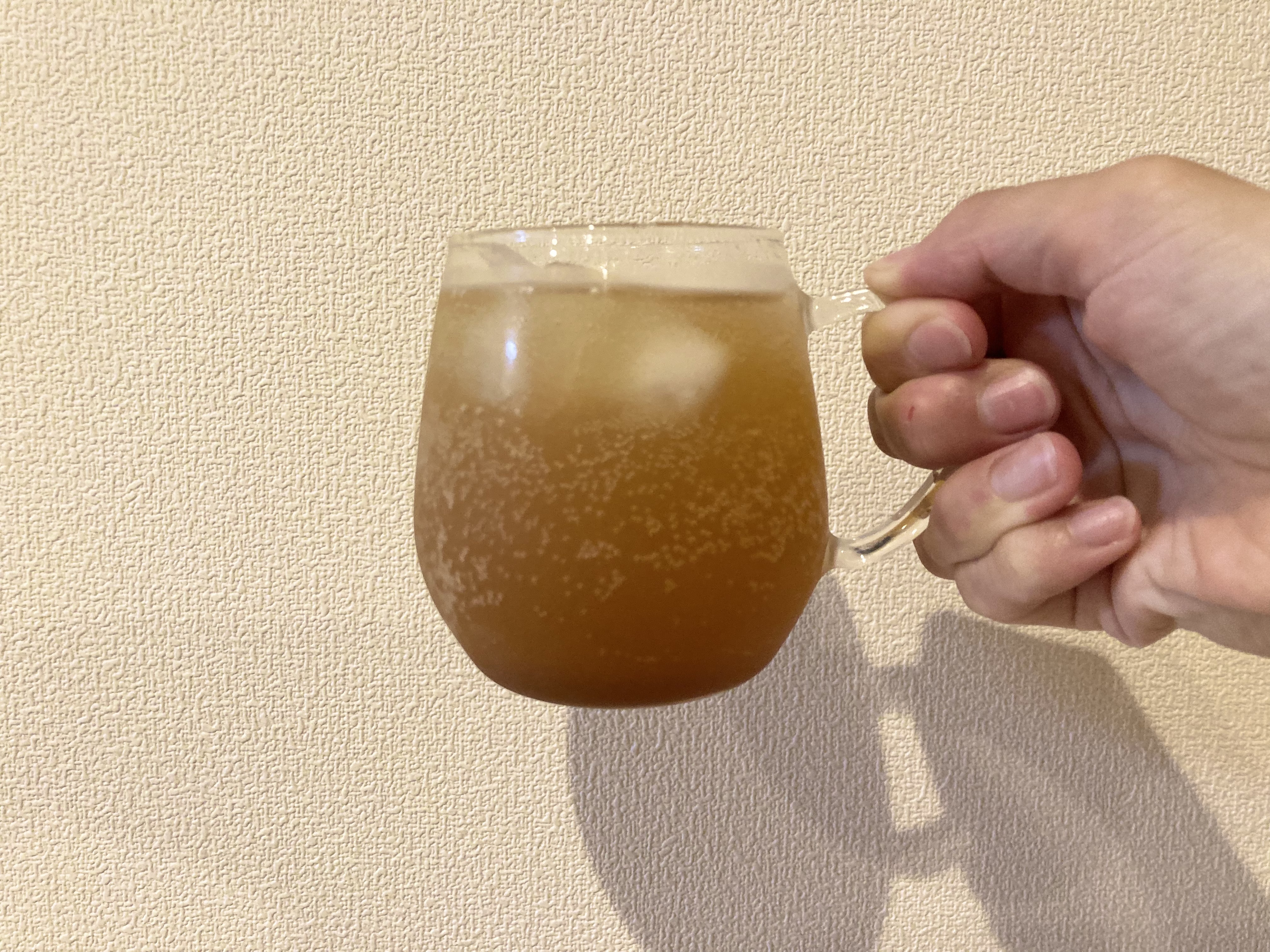 早速コーラを作ってみます。おすすめは氷の入ったグラスに、シロップと炭酸を1対4の割合で。
