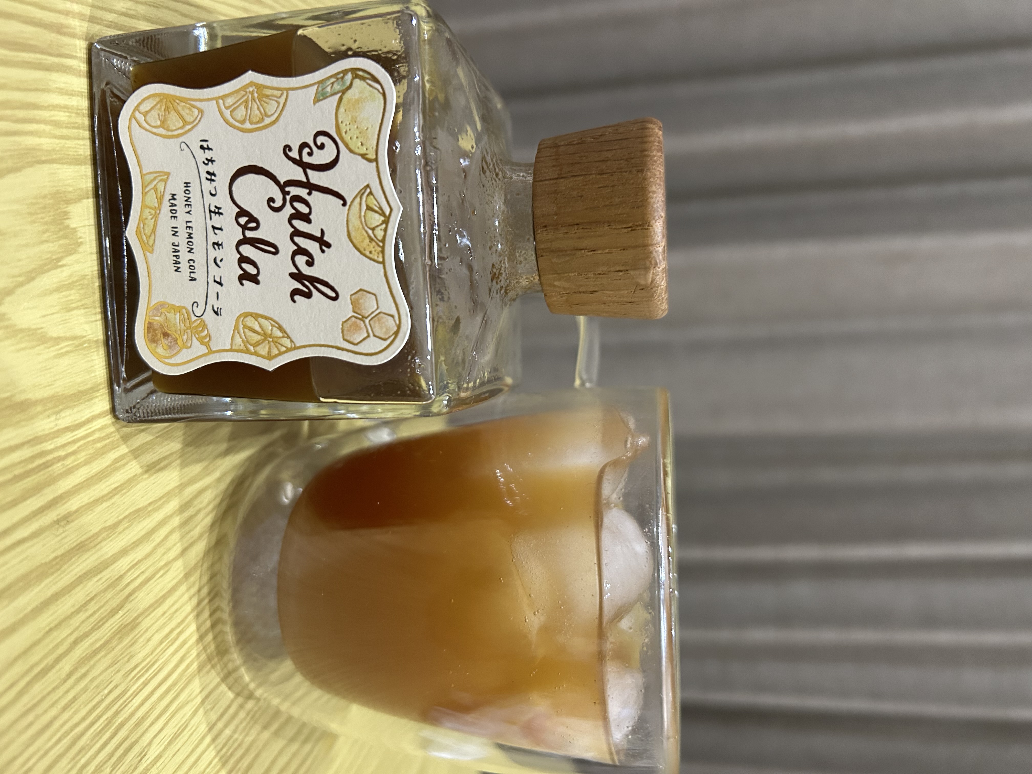 天然木の蓋を開けると、ふわっと香りがします。嗅いでみると、やさしいコーラの匂い・柑橘の爽やかさ・スパイスの折り重なる風味・・。液はわりとサラサラで、シロップといっても濃縮したとろみのような感じではないんですね。