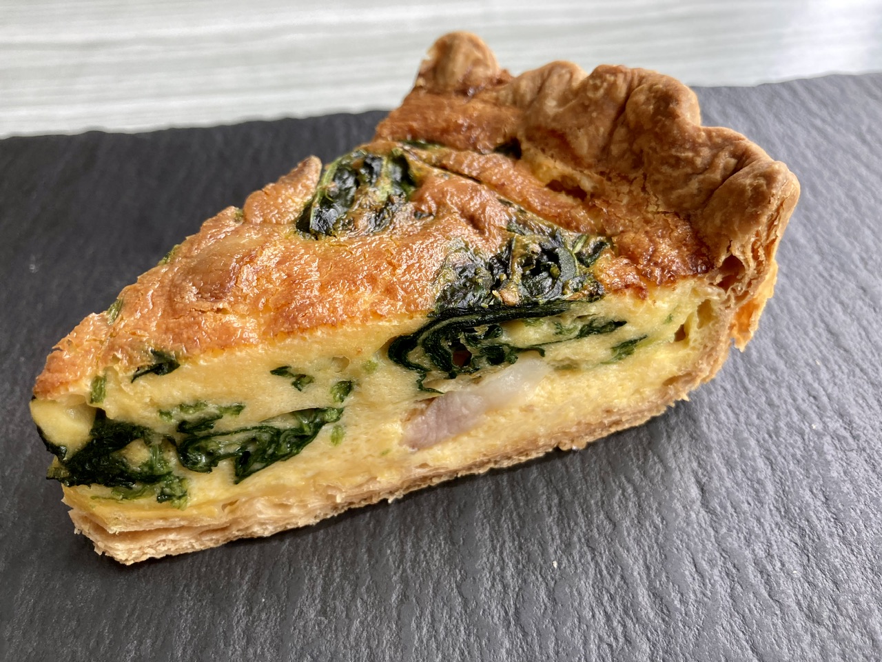 キッシュ専門店の「キッシュセット」です。ベース部分には、5種類のハーブと、なると金時や鳴門わかめを餌に育つ鶏の卵を使用。卵臭くなく、スッキリとした味わいに仕上がっています。パイ生地は、国産小麦粉を2種ブレンドすることで、サクサクの軽さを追求しています。しっかりとしたベーコンの旨味を感じる「国産ほうれん草と国産自家製ベーコン」、とろけるようなカマンベールチーズとふんわりとしたサーモンが並ぶ「カマンベールとサーモン」、しっとりジューシーなソーセージに、淡路島で育った甘みのある玉ねぎを合わせた「ハーブソーセージと淡路島玉ねぎ」など6種から好みの4種を選べる商品。異なる味わいのセットなので食べ比べも楽しめます。