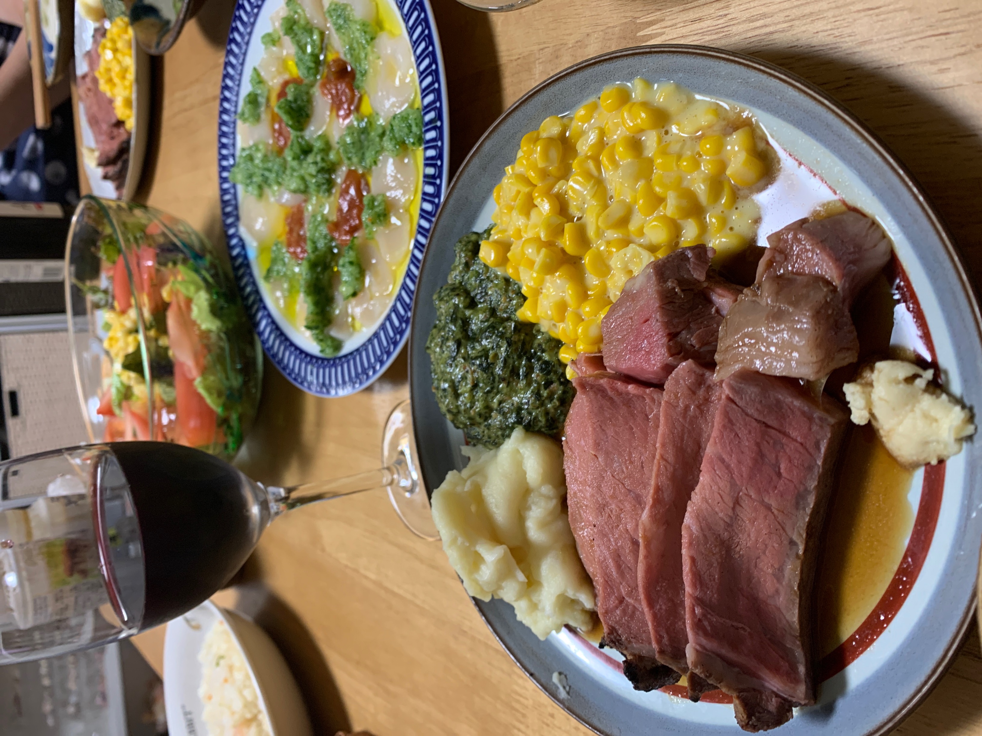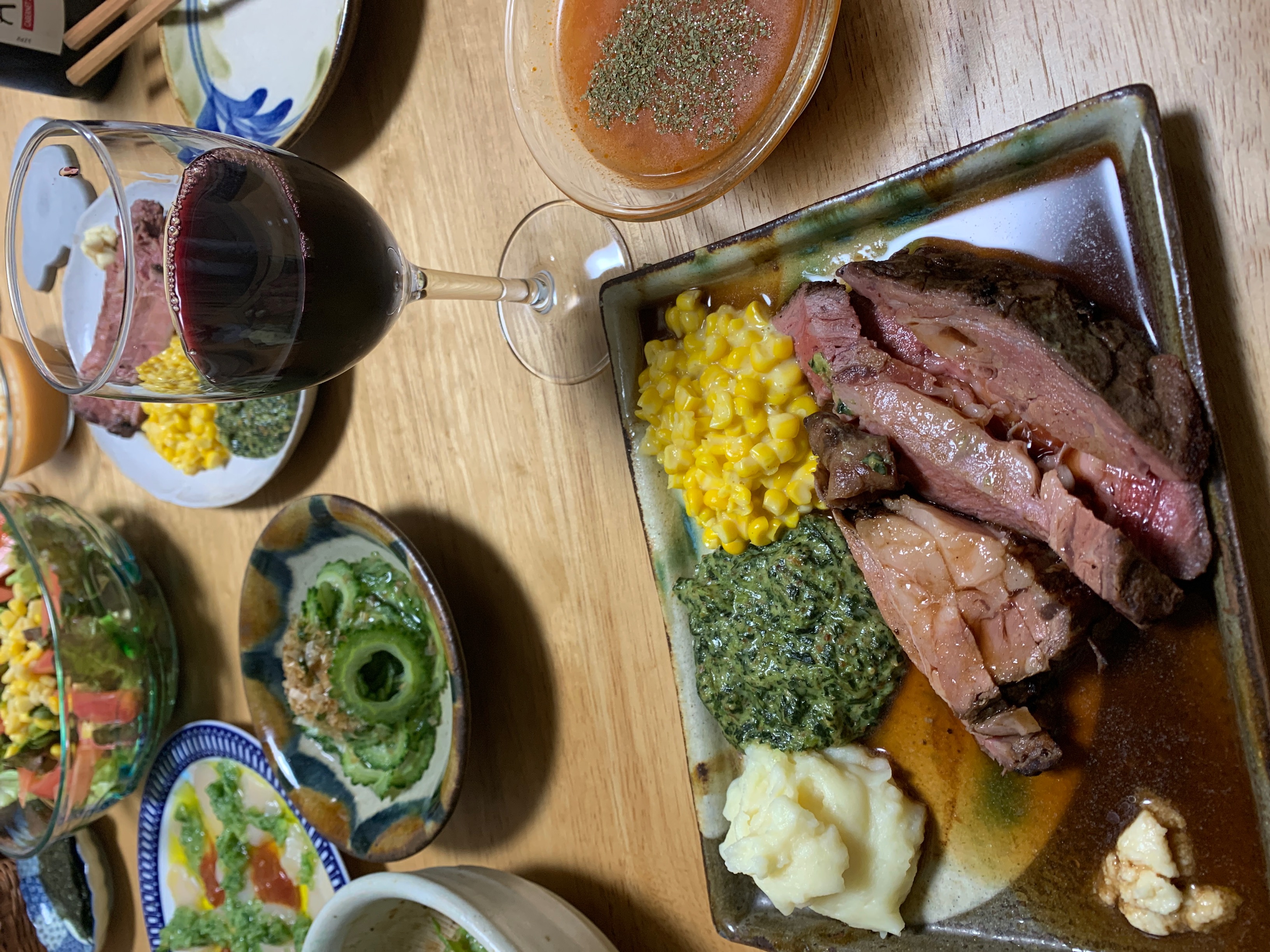 この夜は上質なプライムリブに合わせて、蟹の冷製ビスク、帆立のカルパッチョシークァーサーと胡瓜のソース、などを用意しましたが、舌を楽しませてくれたのは終始プライムリブでした。