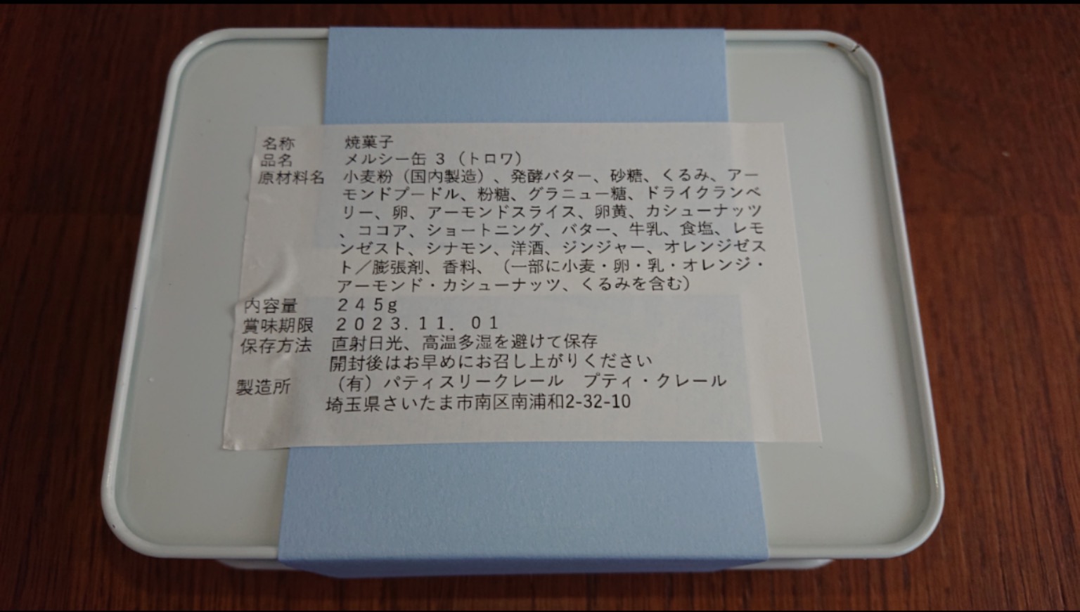 「メルシー缶3(トロワ)」は、スパイス入りの薄焼きクッキーとクルミのキャラメリゼが入った「メルシー缶」シリーズの第3弾です。