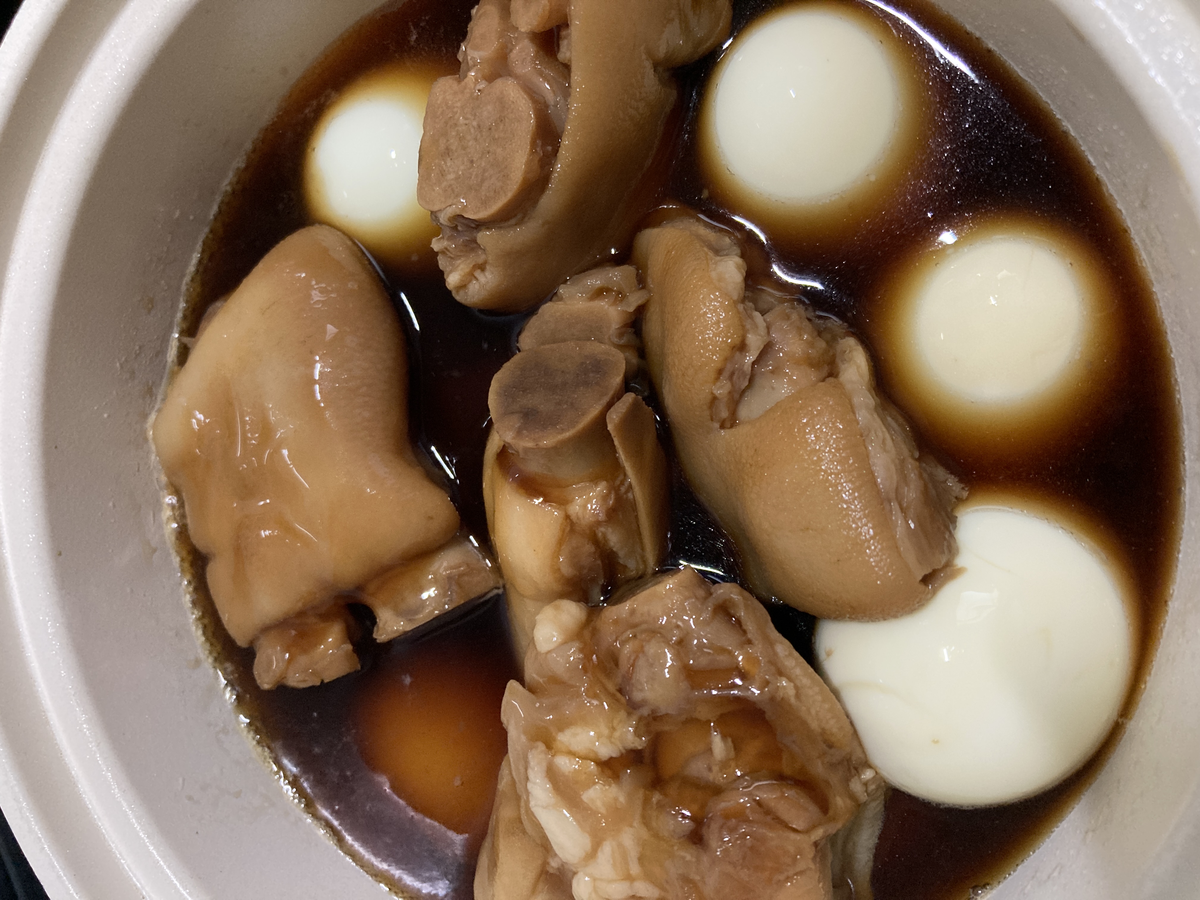 煮汁は甘みが感じられ、醤油が濃すぎない、とても優しい味。煮汁の色は濃いめなのに、、、素晴らしい。てびちに、煮汁の旨みがしっかり染み込んでいました。