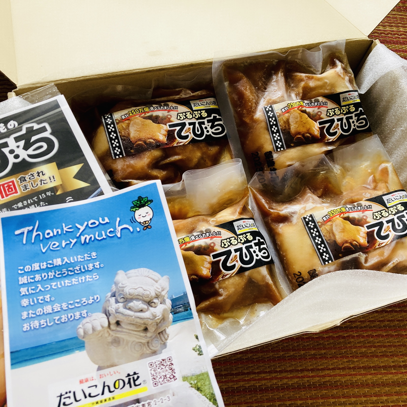 『だいこんの花』様のてびちは、リピーターが付くのも納得する、絶品てびちです。これから、是非定期的に購入したいと思います。