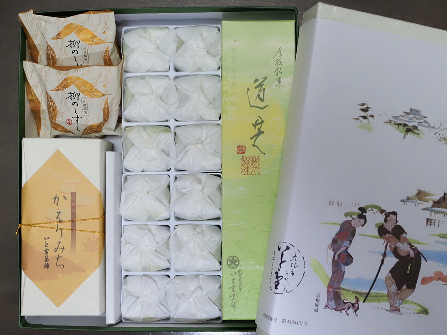 滋賀県彦根市で創業210余年の和菓子店いと重菓舗の看板商品、埋れ木などのお菓子を詰合せに致しました。
