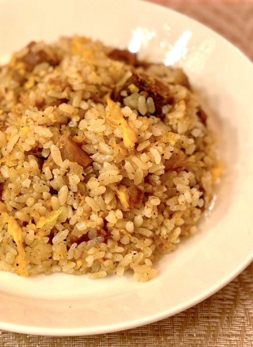 黒胡椒がピリリッと効いたクセになるチャーシュー炒飯です。並ばなくても家で簡単に丸鶴の味が楽しめます。