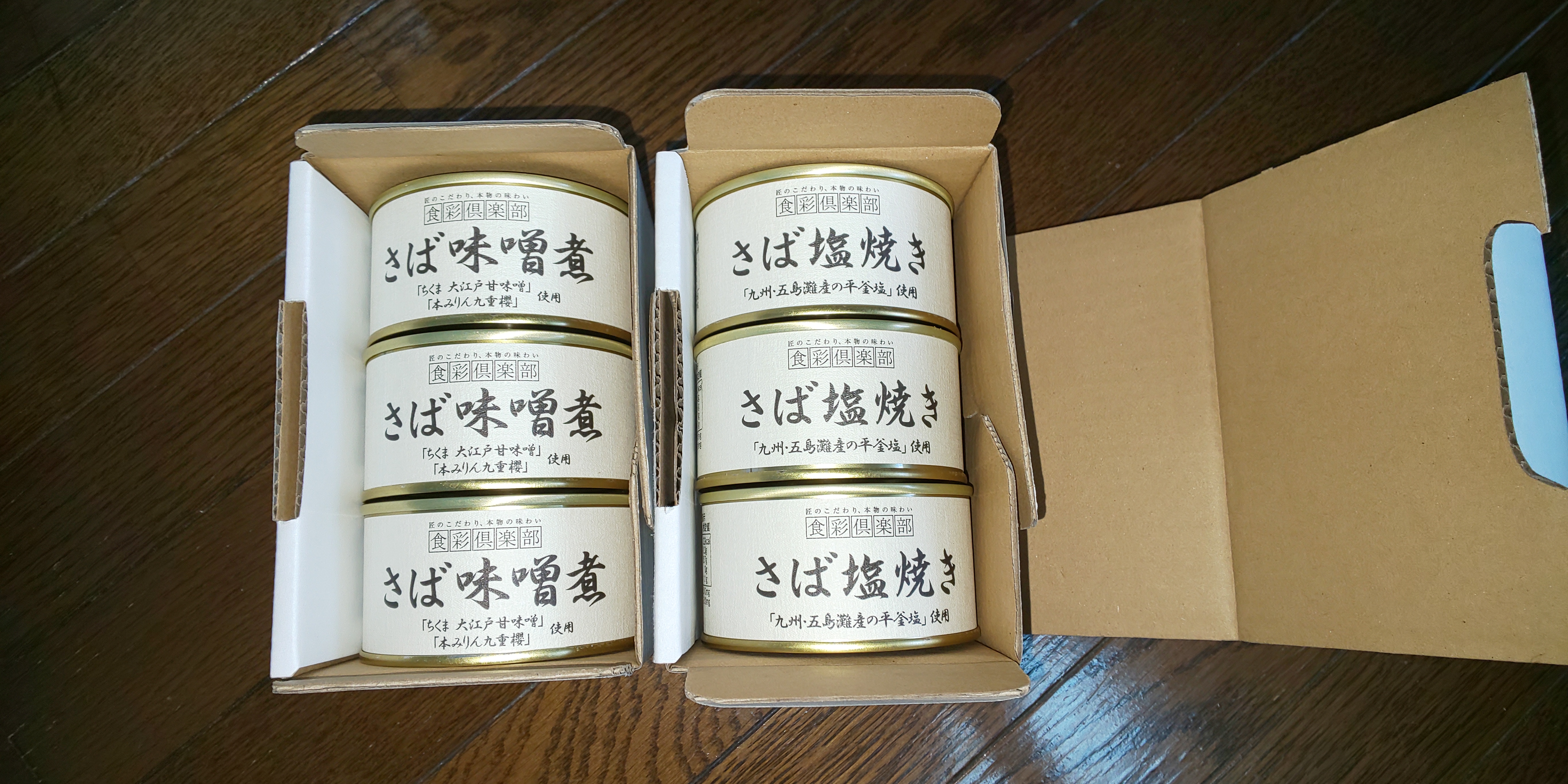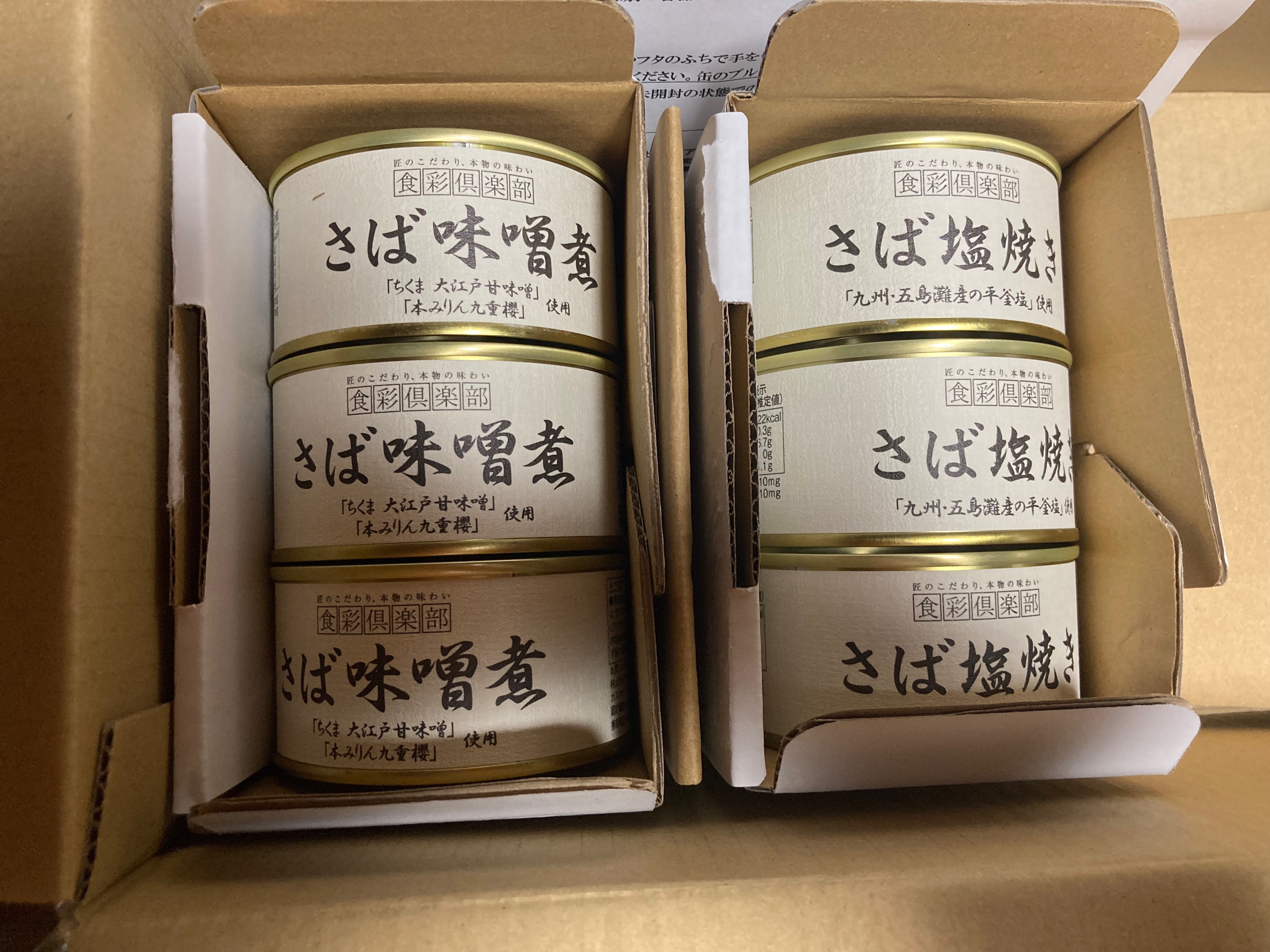 さば塩焼き缶3個とさば味噌煮缶が3個。