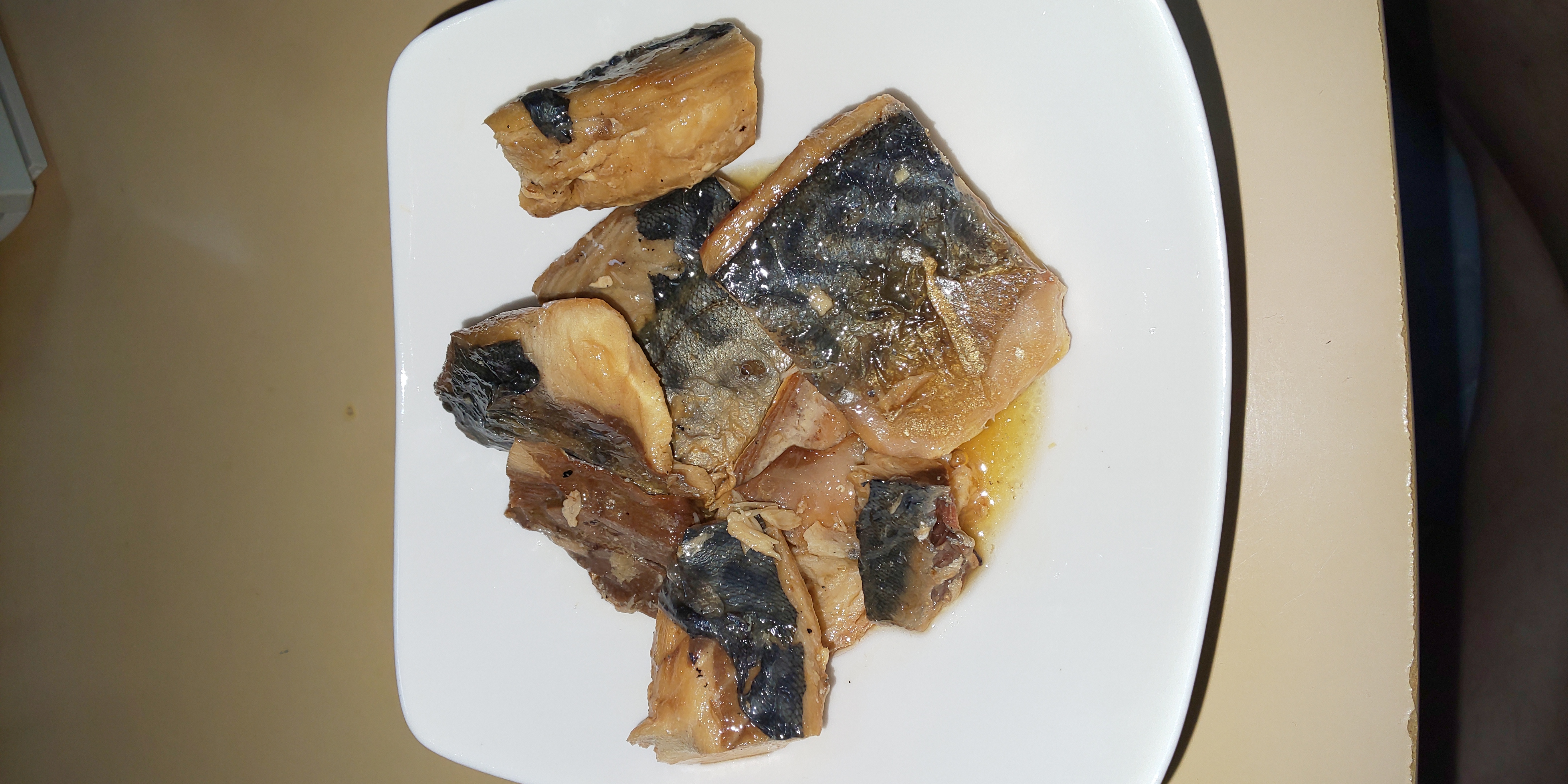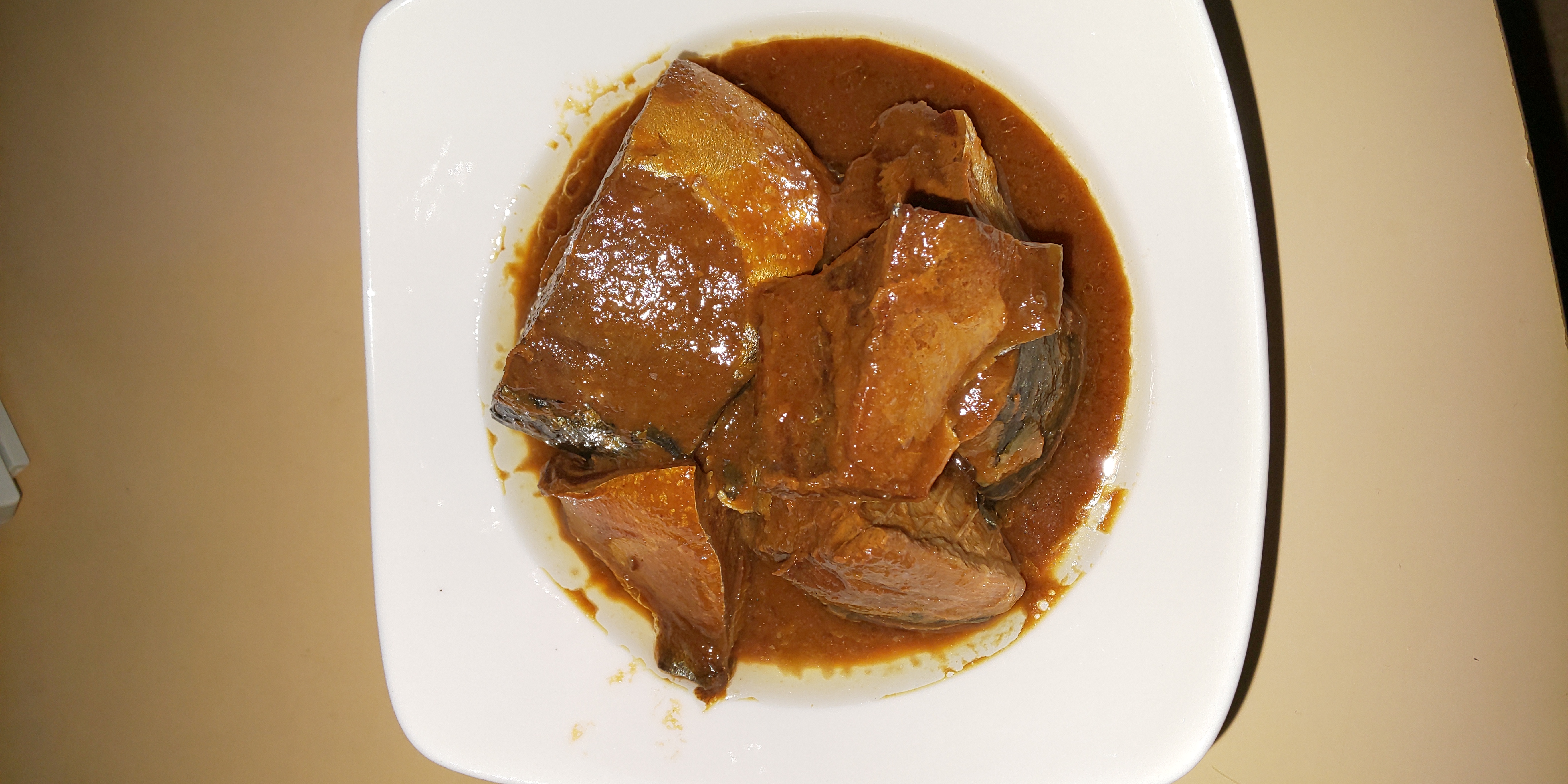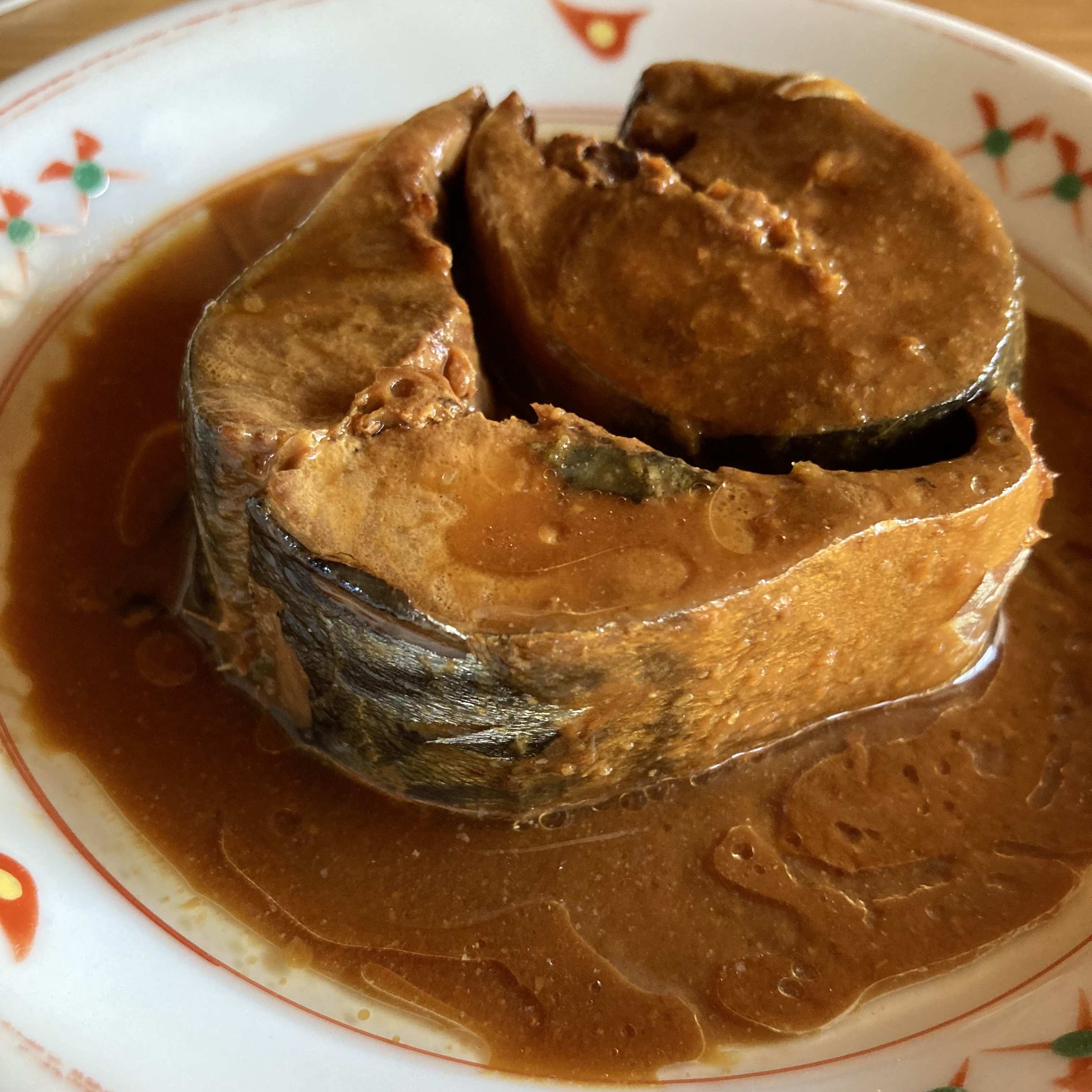 さば味噌煮缶を開けると、大きな塊が二つ目に飛び込んできました。