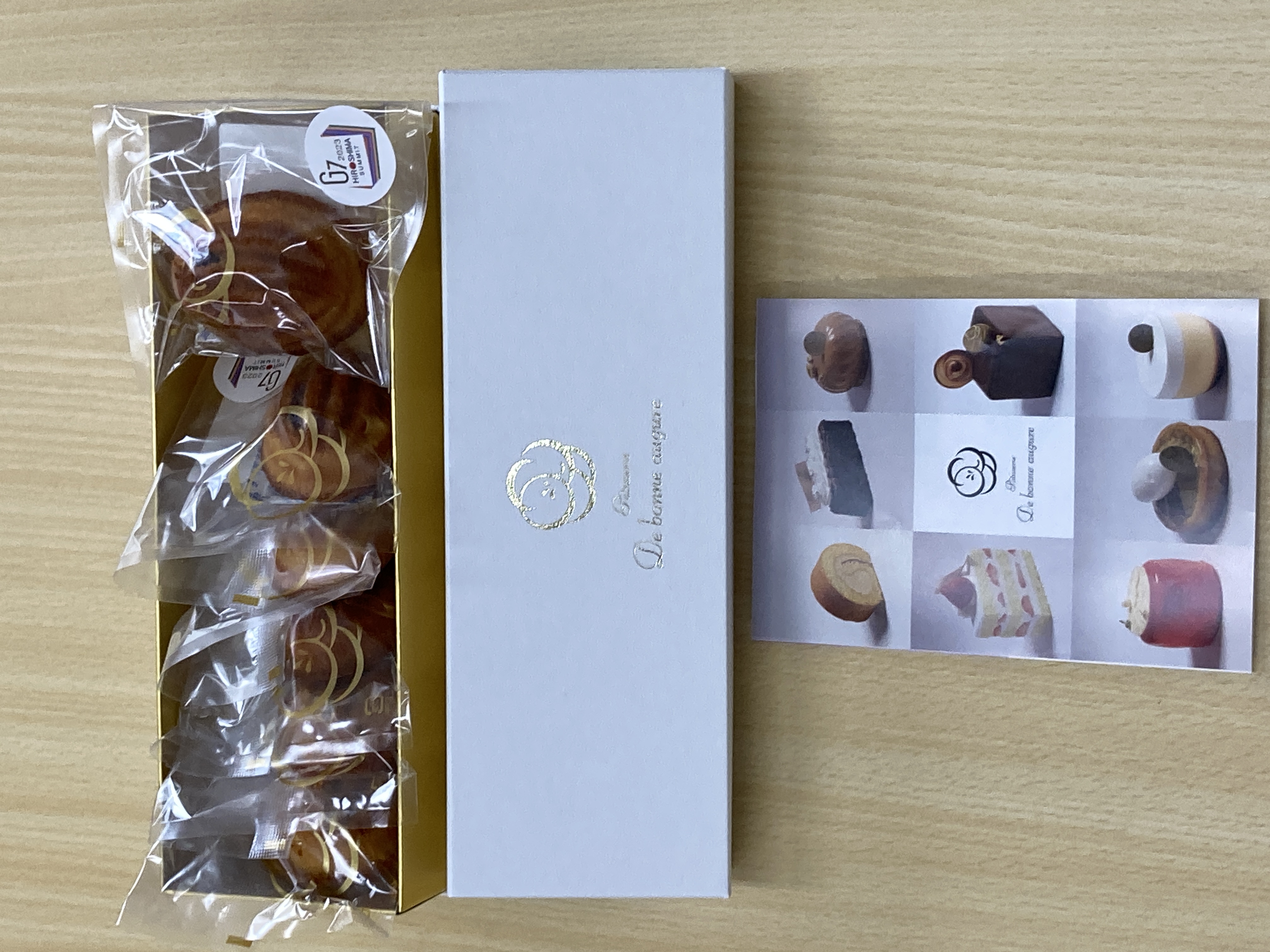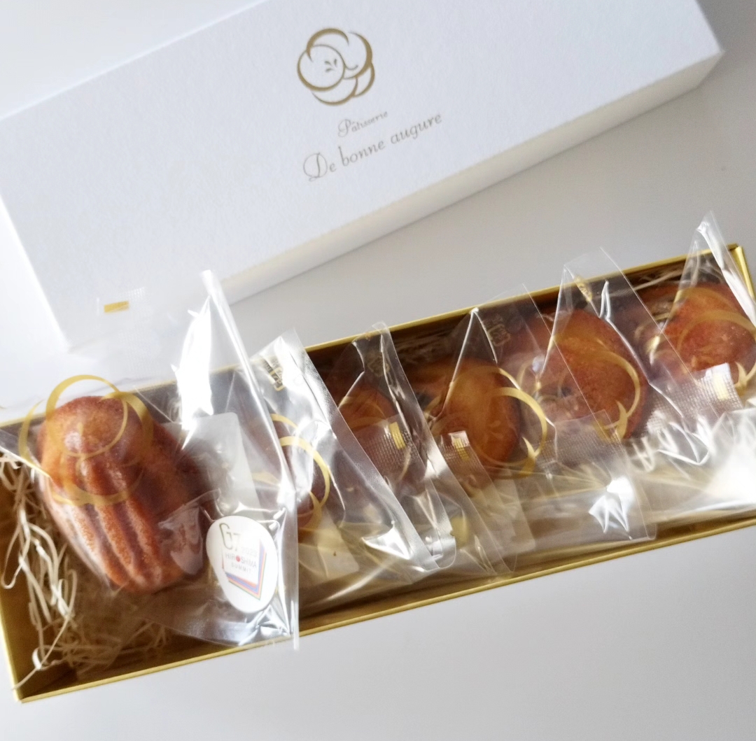 種の形をモチーフにした「焼き菓子」です。パウンドケーキに使用する材料に白餡を練り込んだ生地が印象的。中央には、小豆餡が入っています。味わい深く、和菓子の風味を楽しめる焼き菓子に仕上っています。オーナーシェフが、G7広島サミットの初日ワーキングディナーの際に監修、提供したデザートを、アレンジしたスイーツです。贈答用の白い箱に入って届くので、贈り物にもおすすめです。