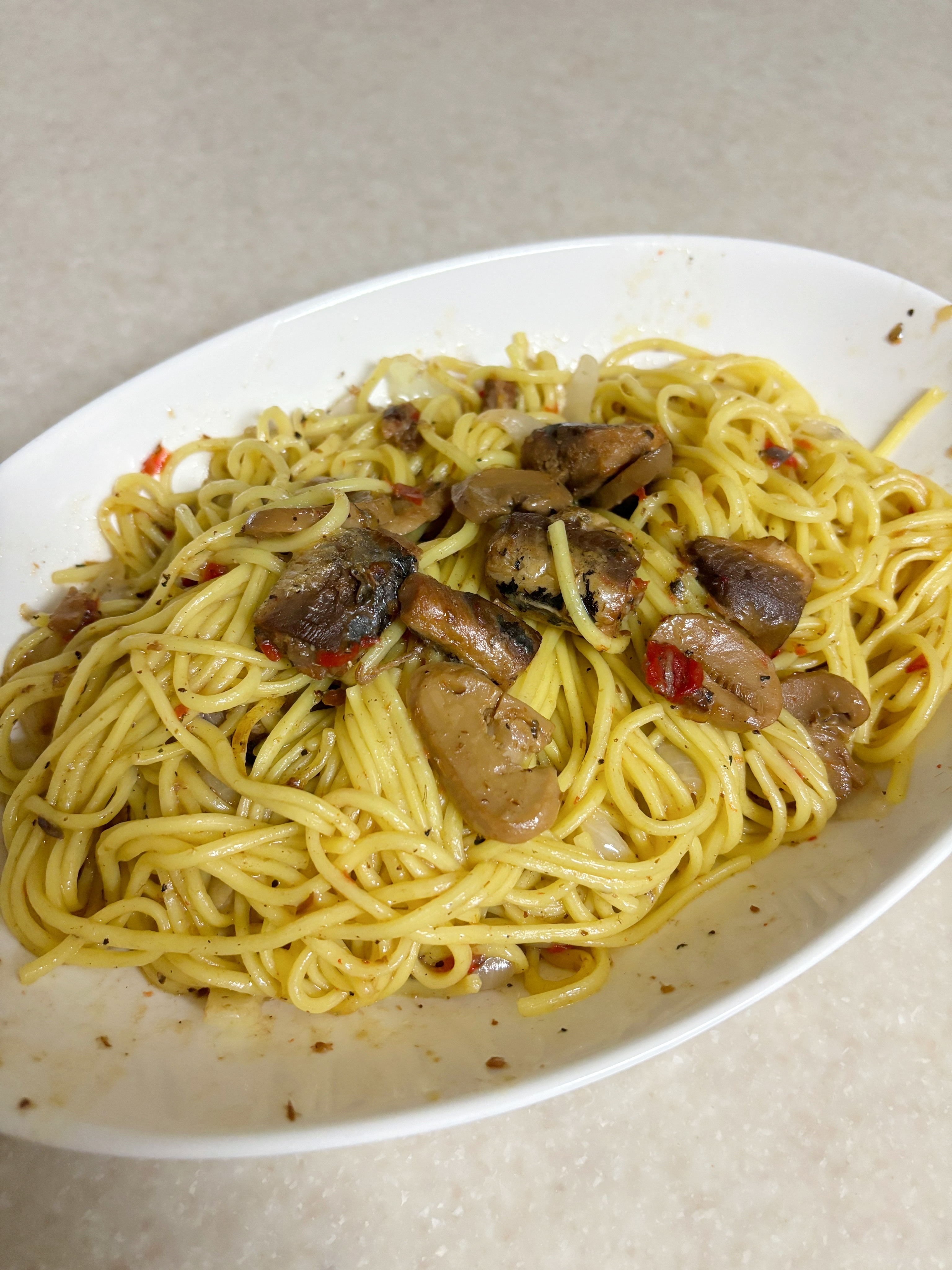 ペペロンチーノ風は、ニンニクの風味はもちろん、唐辛子の味がかなりきいていて旨辛!!
