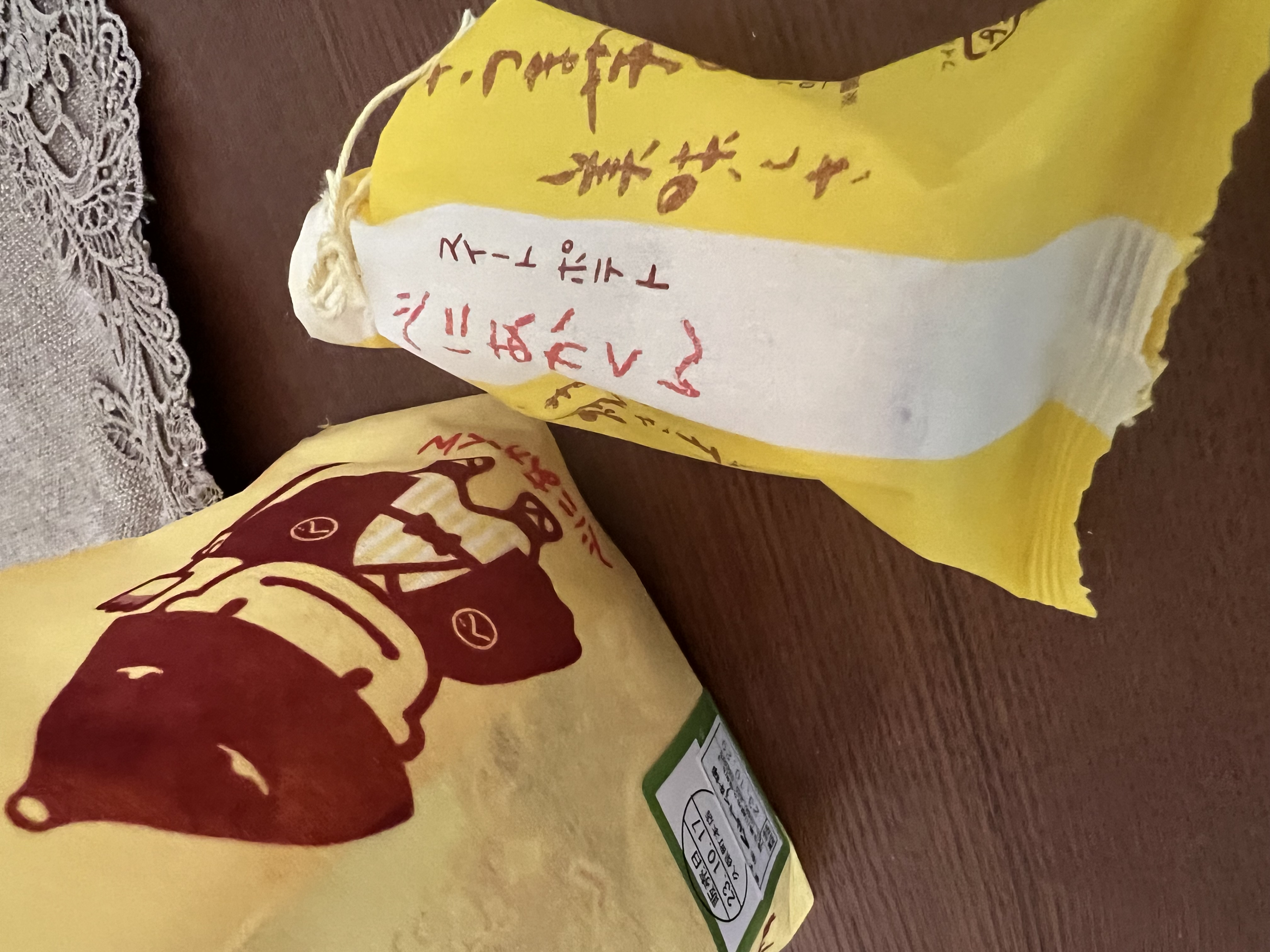 包装そっくりの大きなBIG巾着袋の中に「べにあかくん」を詰めました!可愛くて大人気です。