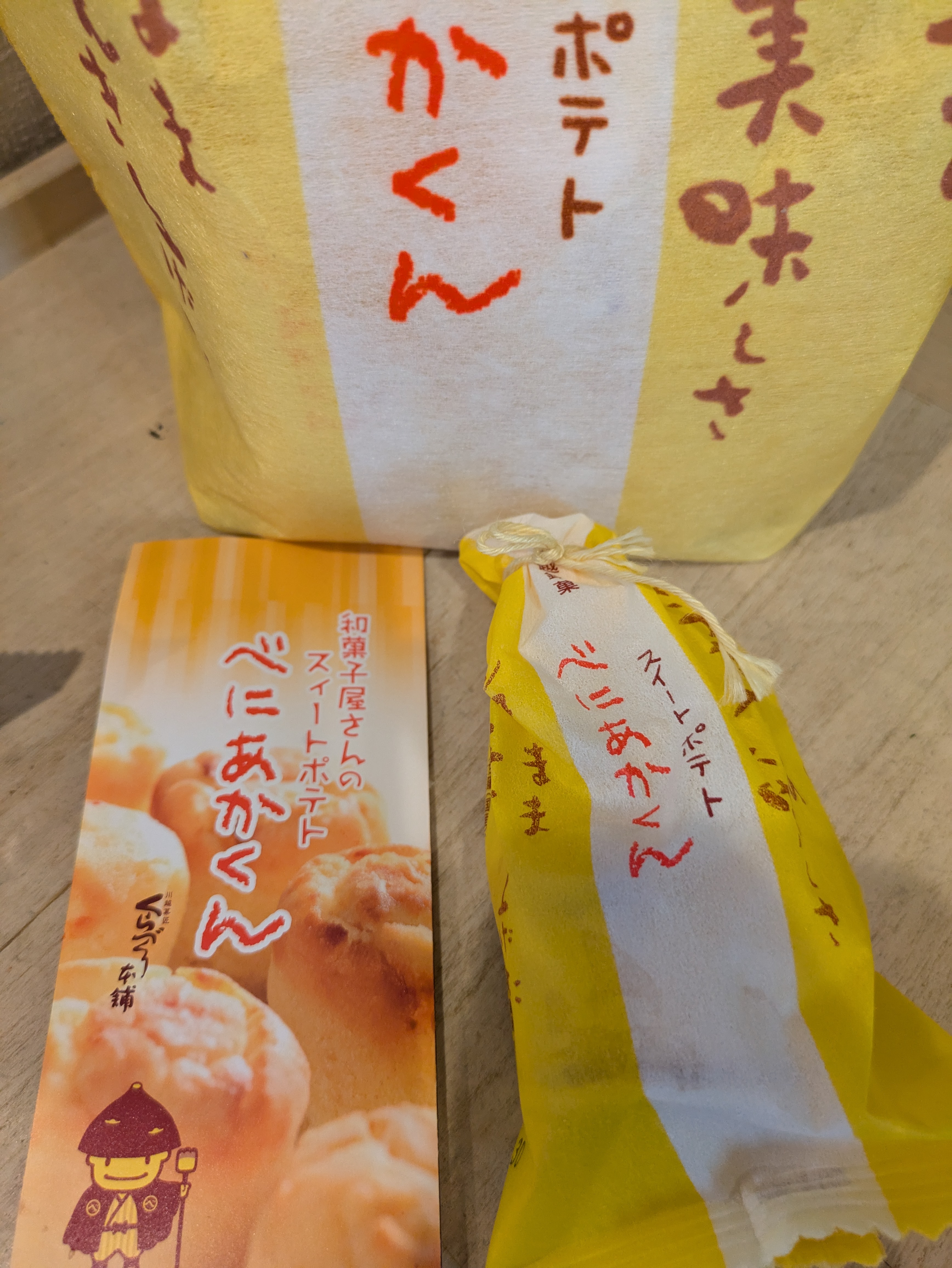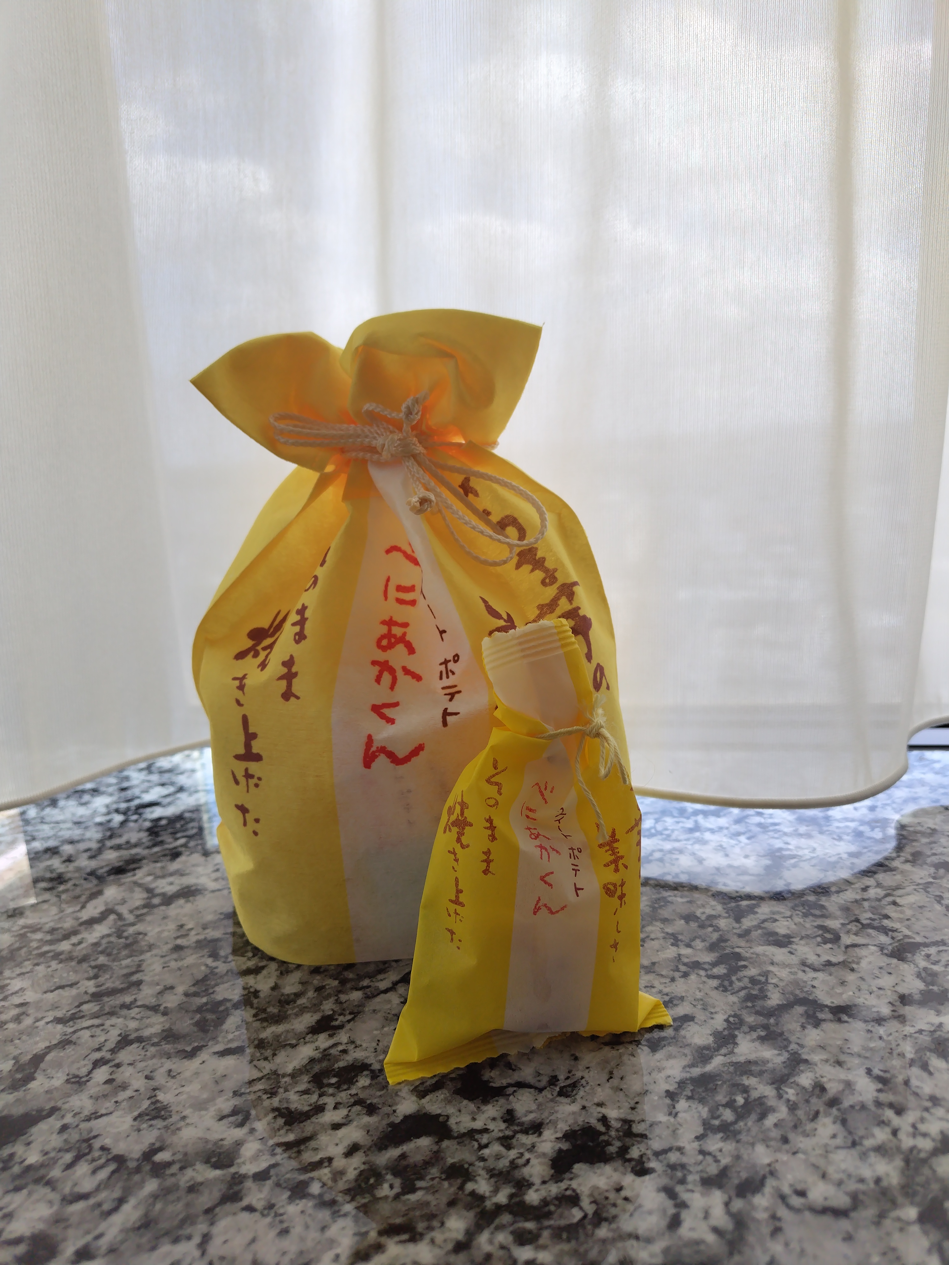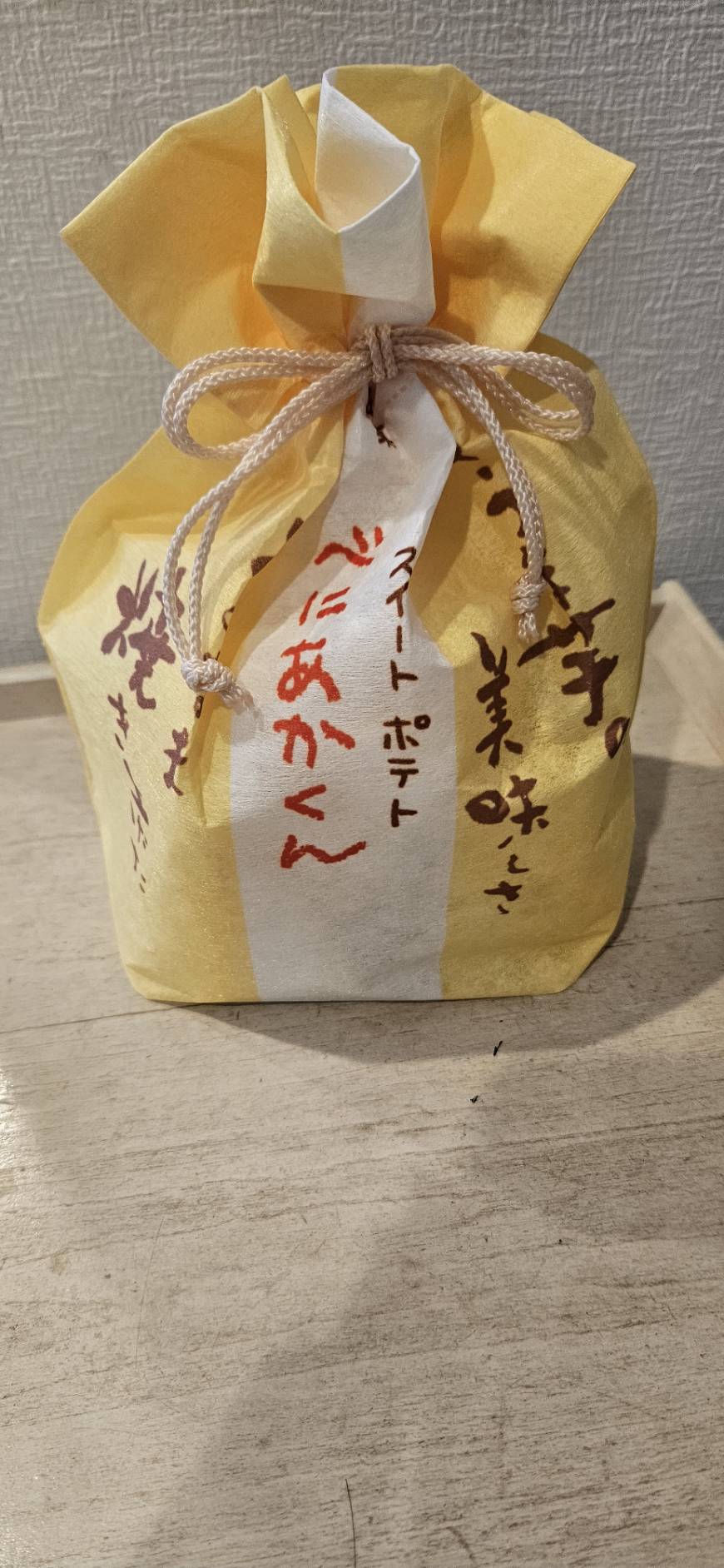 和菓子屋ならではの「スィートポテト」です。香料を使わない素朴なさつま芋と味わいと、フレッシュバターの芳ばしい香りが魅力。しっとり、ふわっとした食感です。厳選した北海道の新鮮なフレッシュバターと生クリームを贅沢に使い、白餡を合わせたことで、さっぱりとした軽い食感に仕上がっています。さつま芋の素朴でホクホクとした口あたりの良い味わいを生かしたスイーツです。べにあかくんのイラスト入りの巾着に入って届くので、プチギフトにもおすすめです。