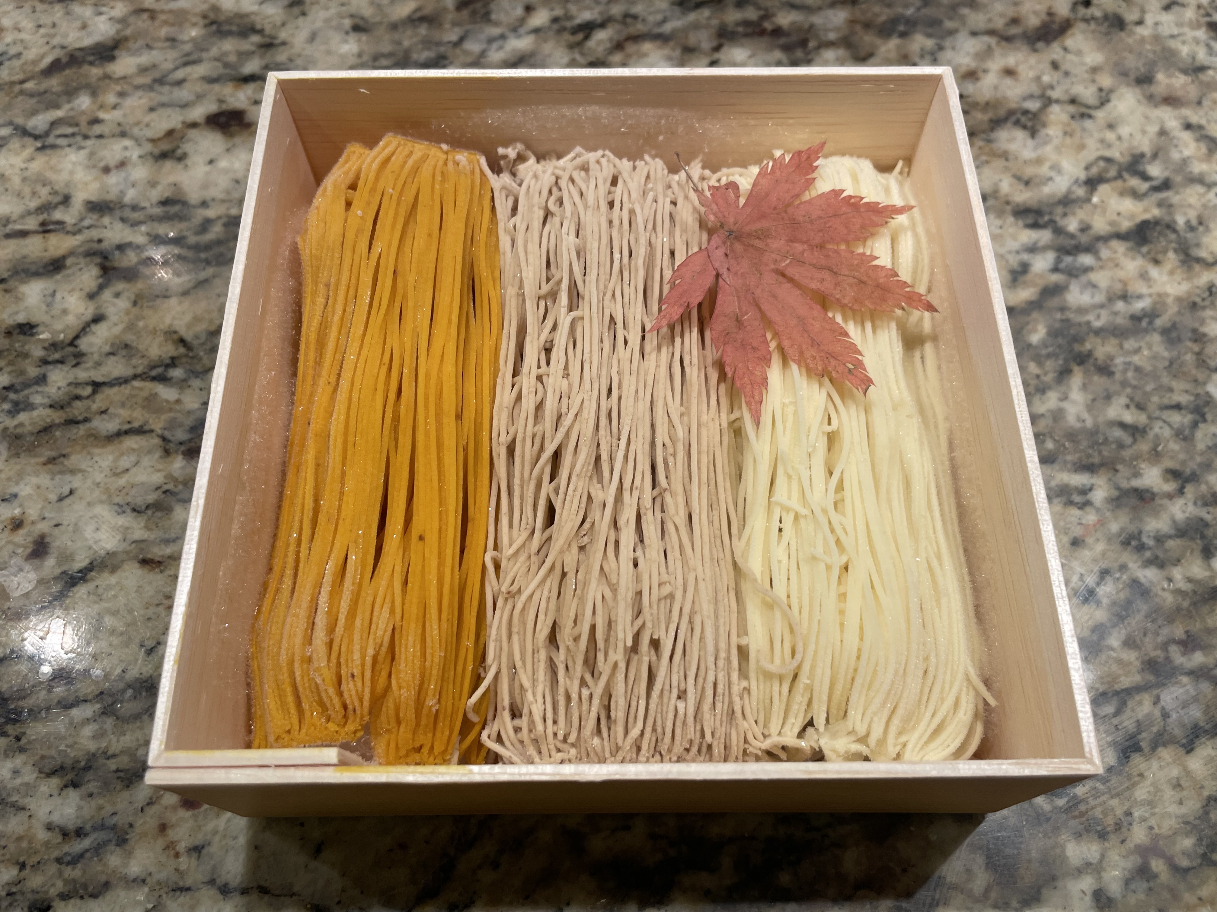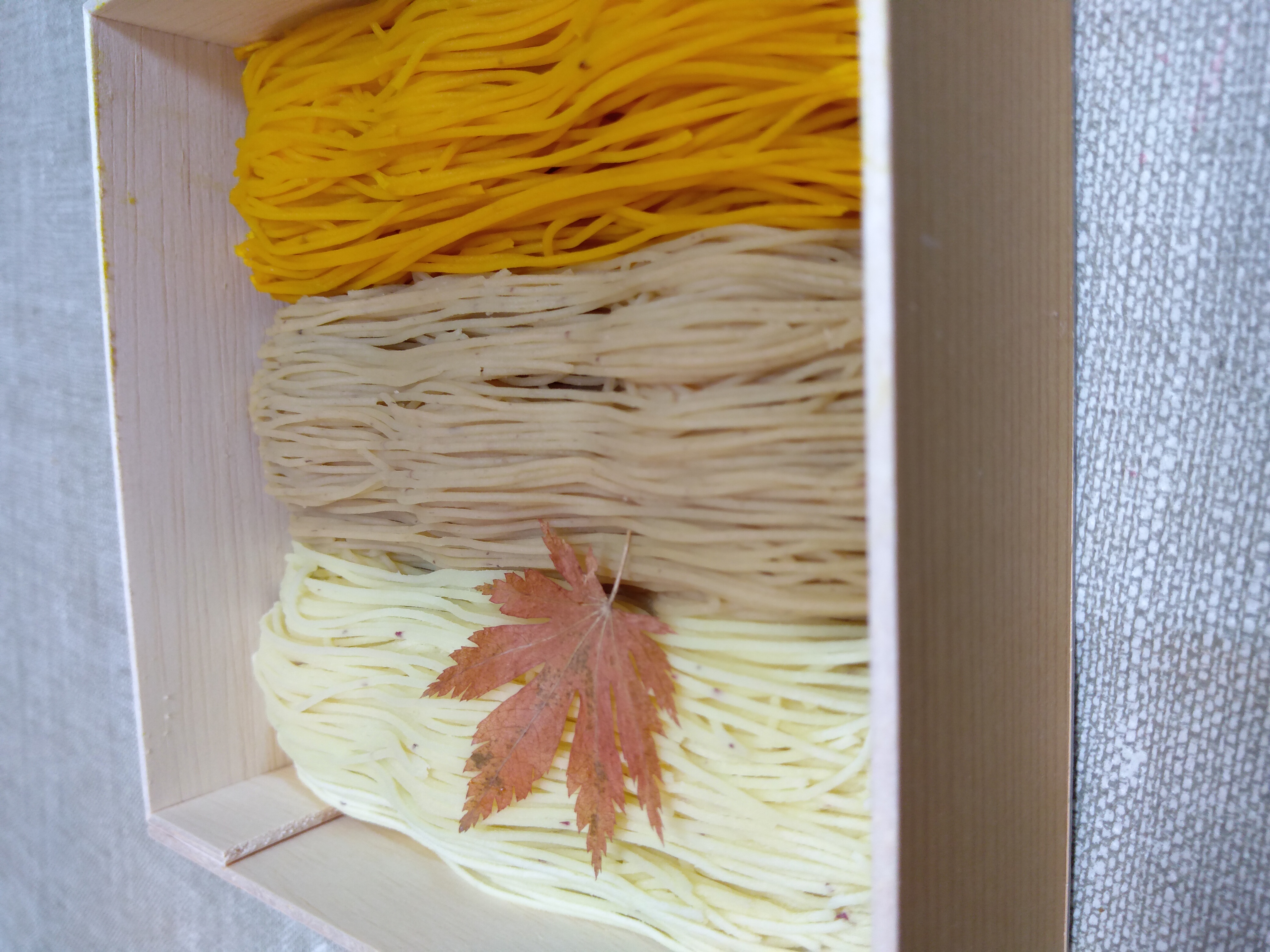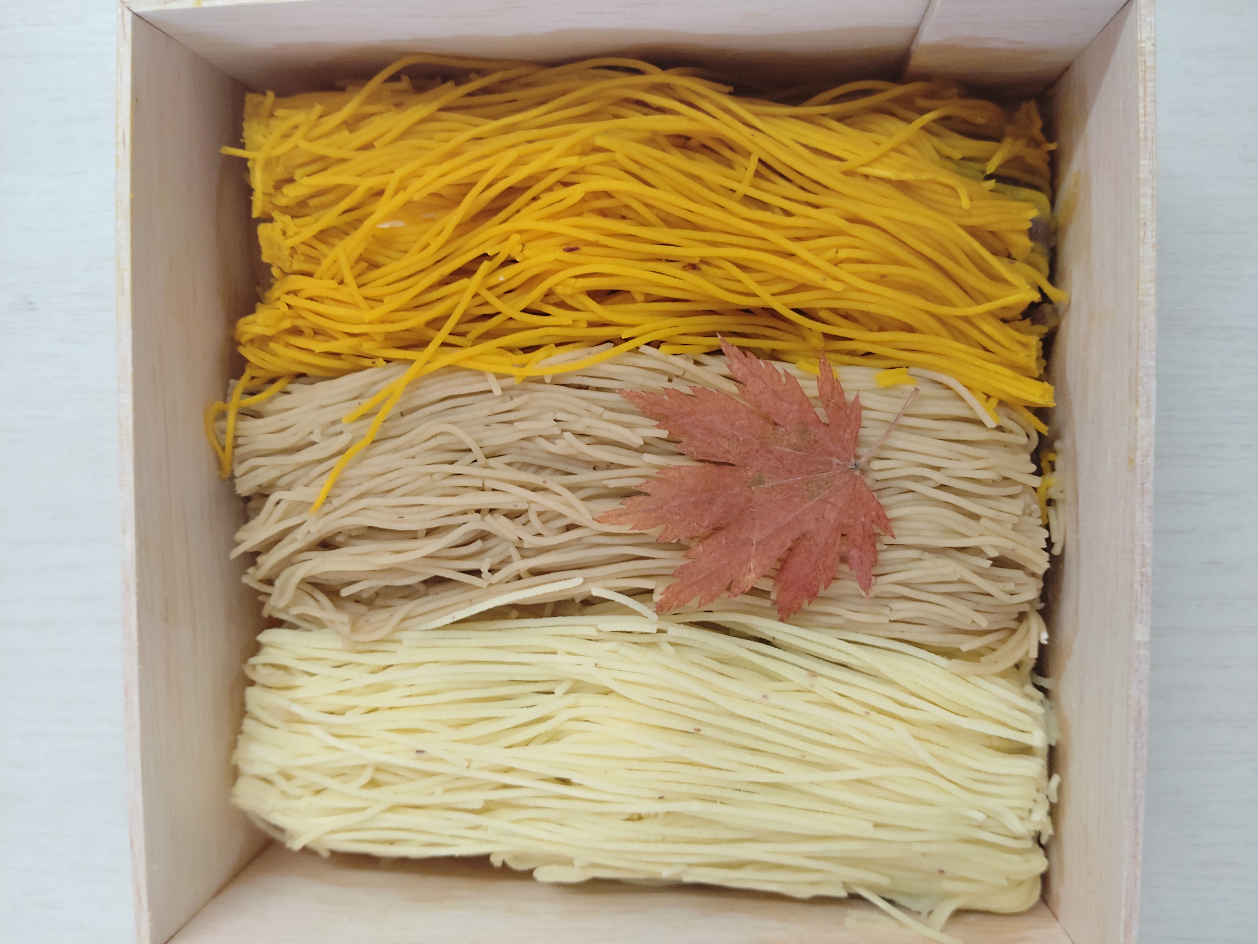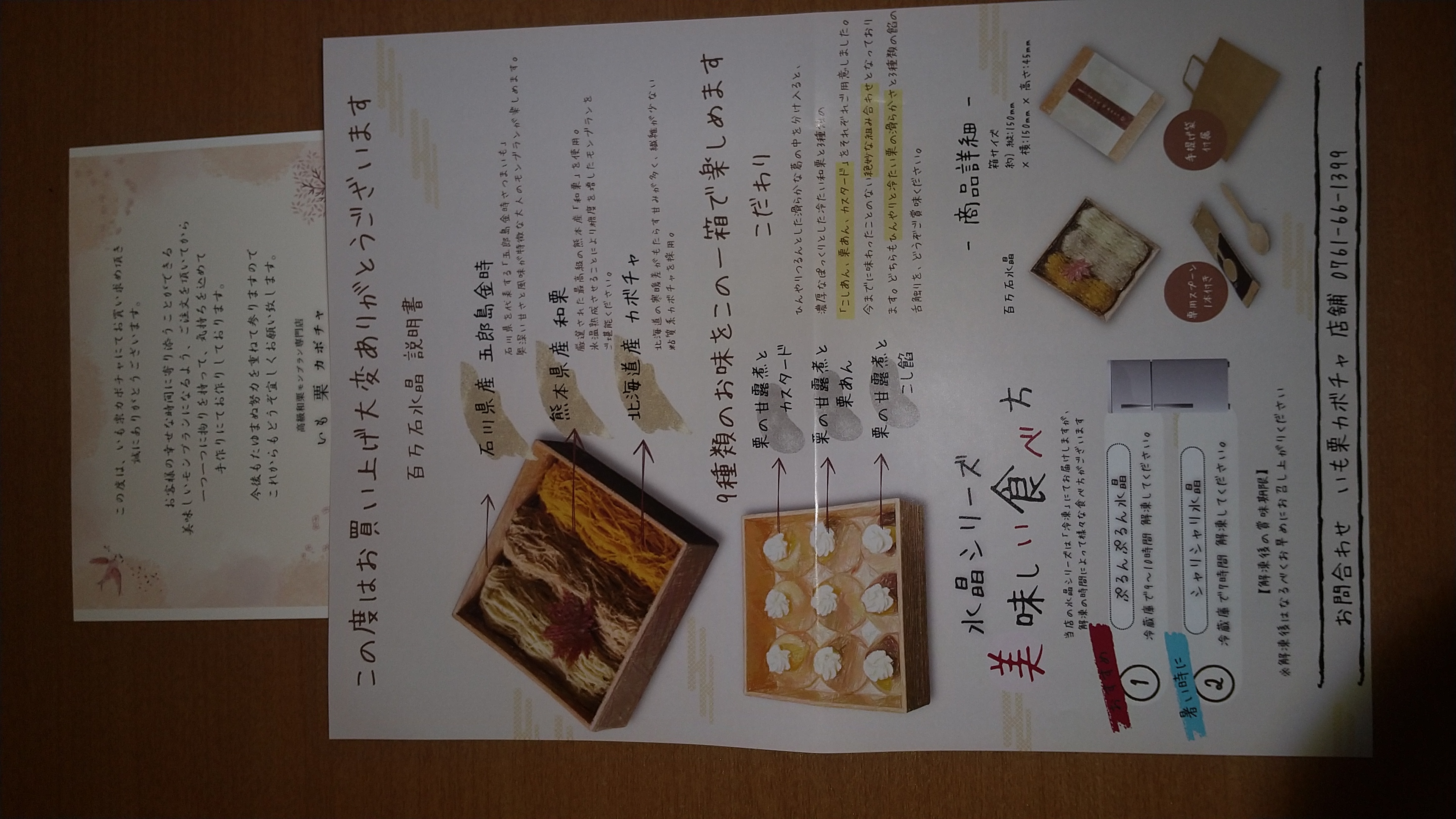 葛とさつま芋・栗・カボチャの融合が楽しい、和菓子です。ひんやりつるんとした葛の中に和栗と3種類の餡(こし餡・栗餡・カスタード)が入っています。その上にたっぷりと、3種のペースト(熊本産和栗・石川産五郎島金時・北海道産カボチャ)がのっている華やかな商品。全て自社で手作りしているので、1日の販売数は限定20個。専用お重入りなので手土産スイーツとしてもおすすめです。