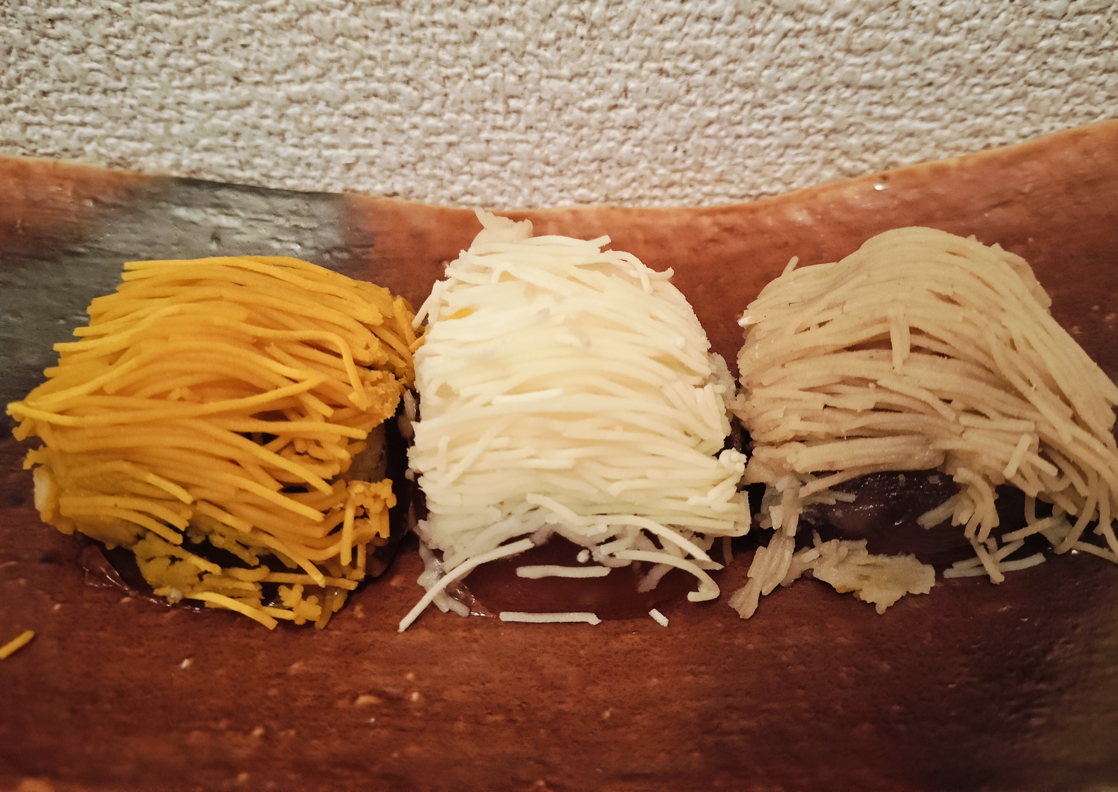 3色のモンブランが重なり合った美しい見た目は贈り物にもぴったり。3種のモンブラン✕3種の餡で9種類の組み合わせを楽しめます。我が家では3人で食べ切れるサイズでした。もしかしたら2人で完食という方もいるかも。高級感がある特別な贈り物になると思います。
