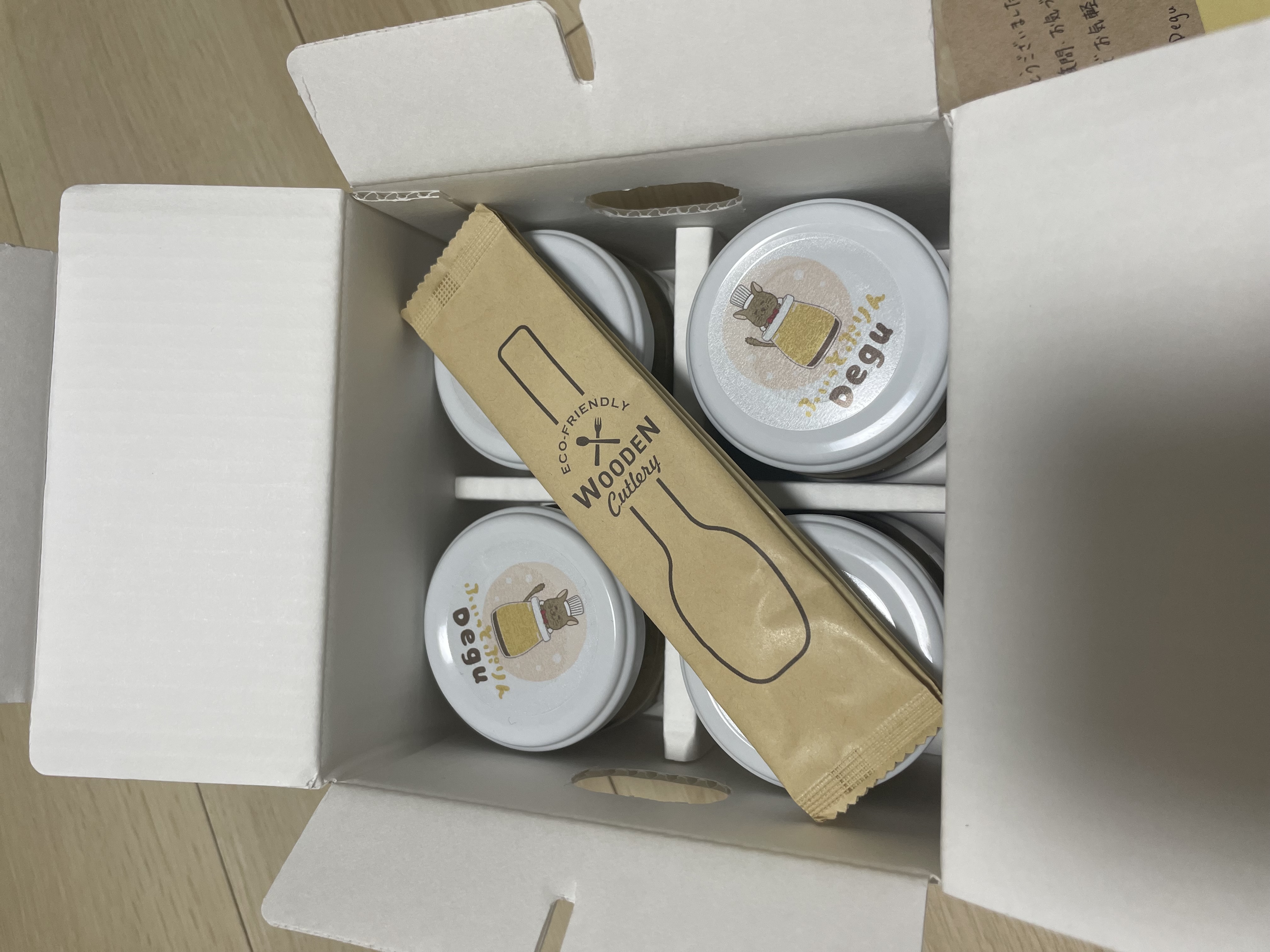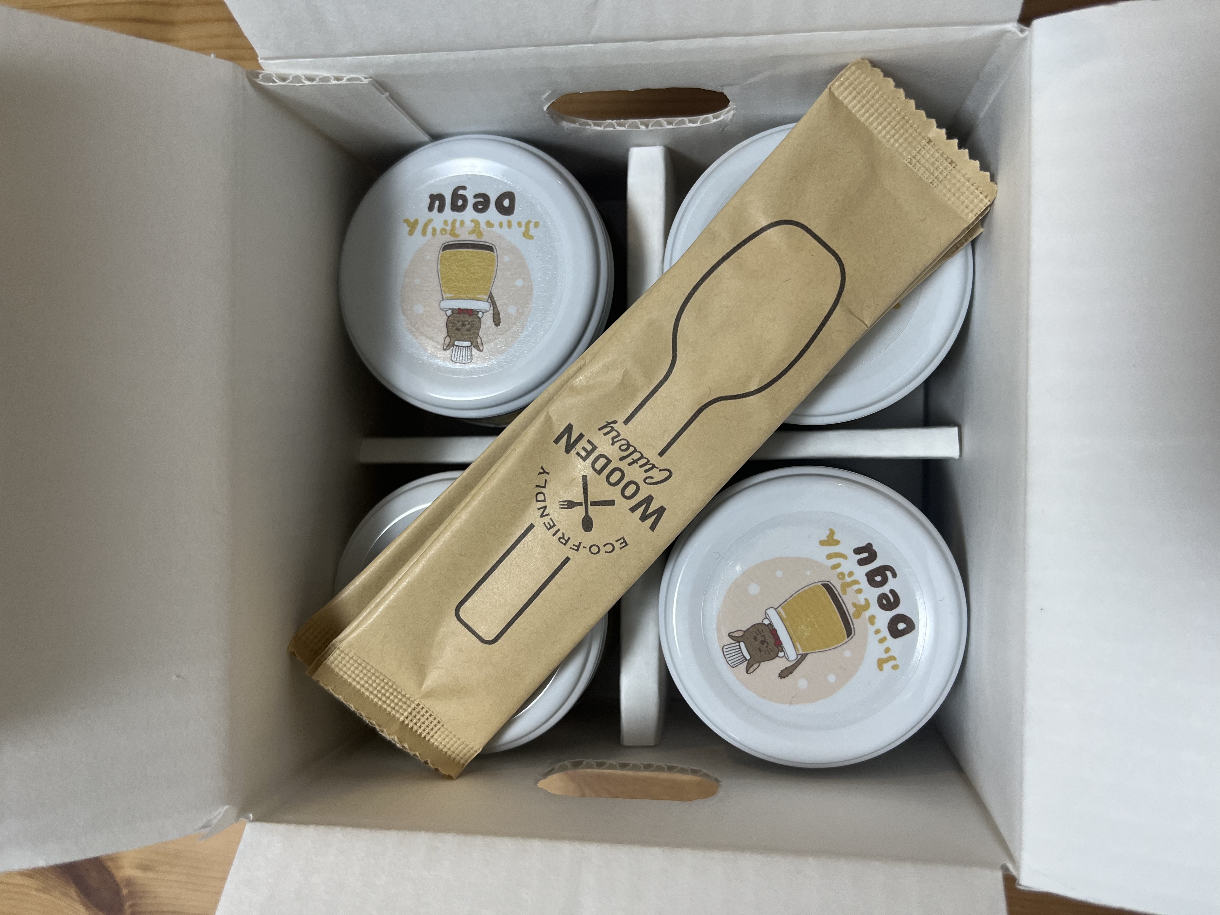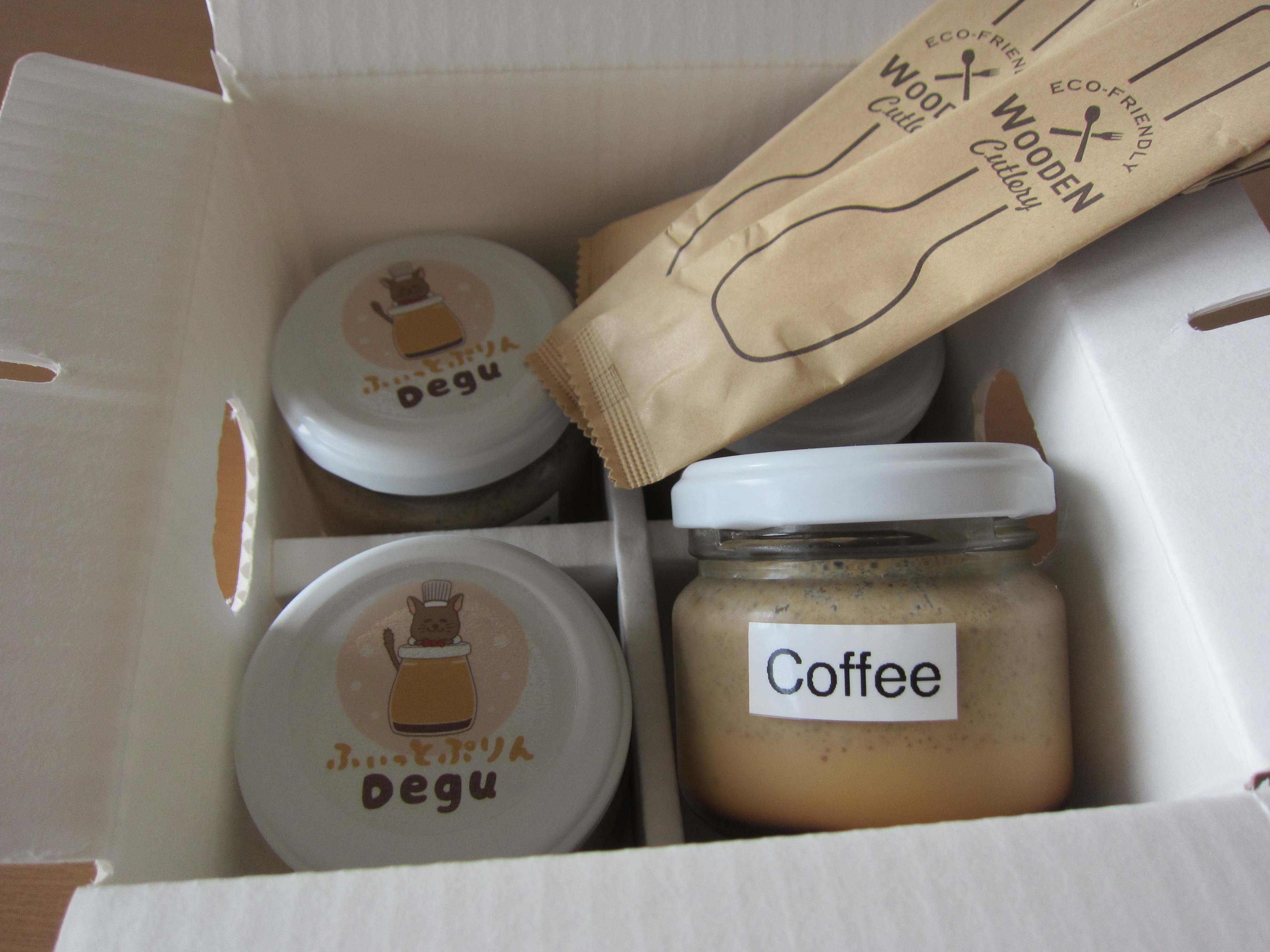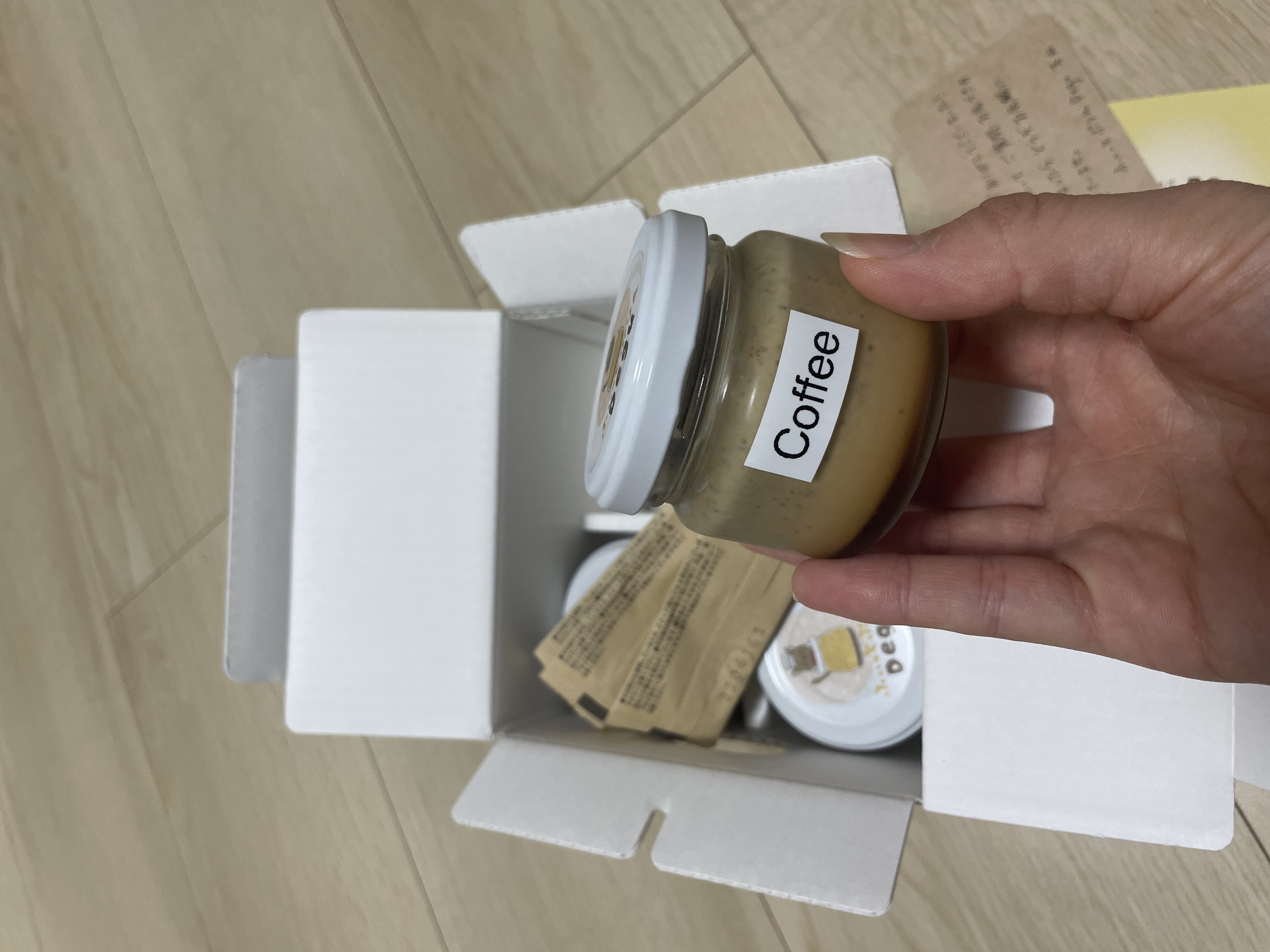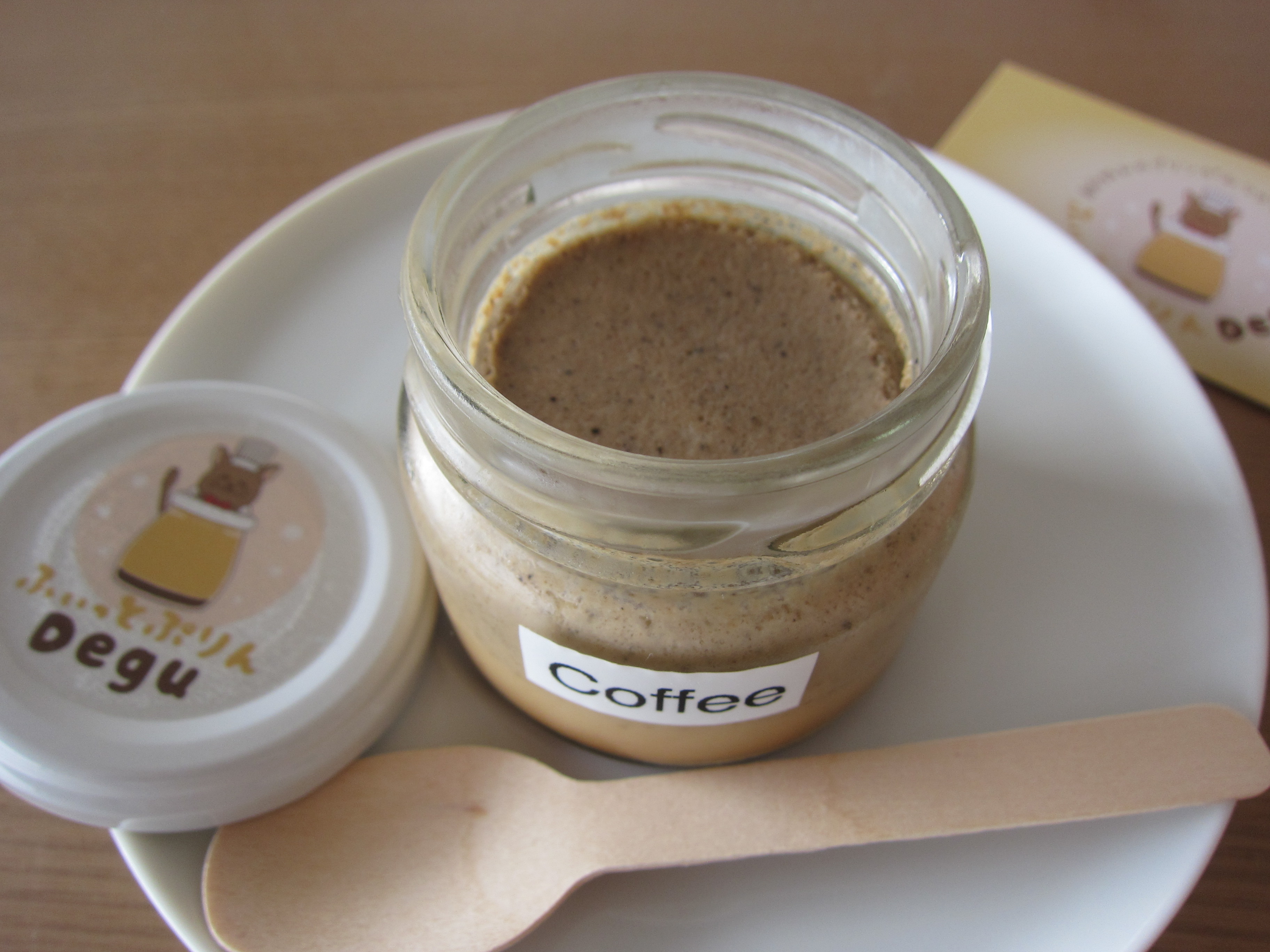 コーヒープリンが4つ入っており、可愛らしいこぶりの瓶に入っていました。