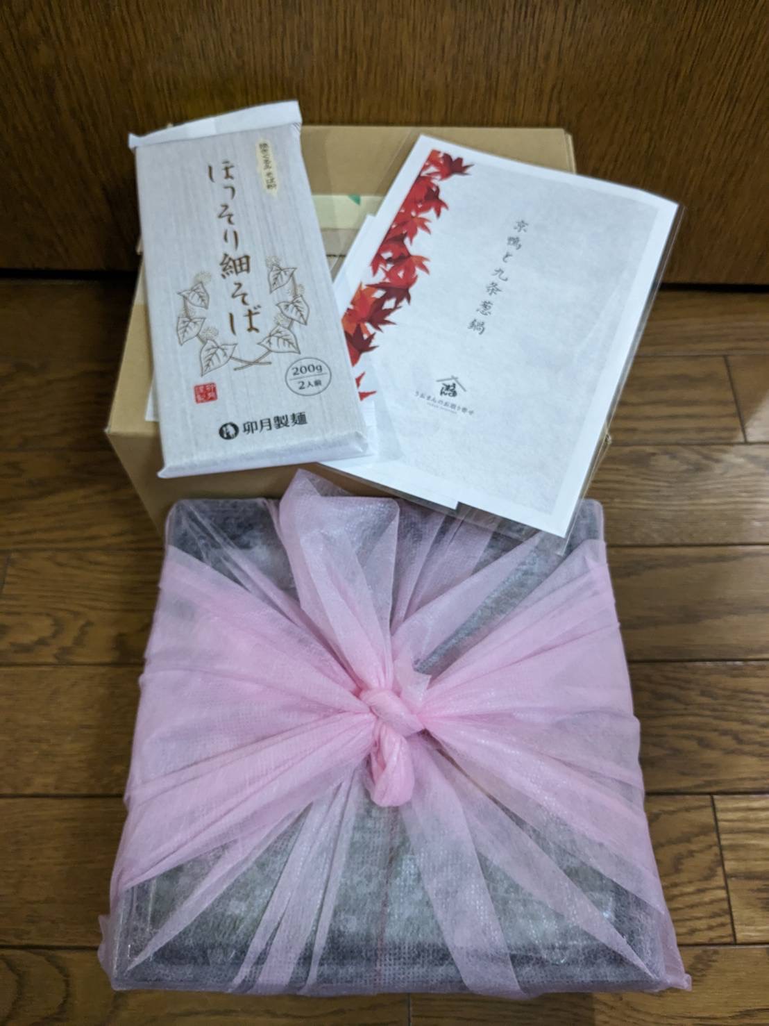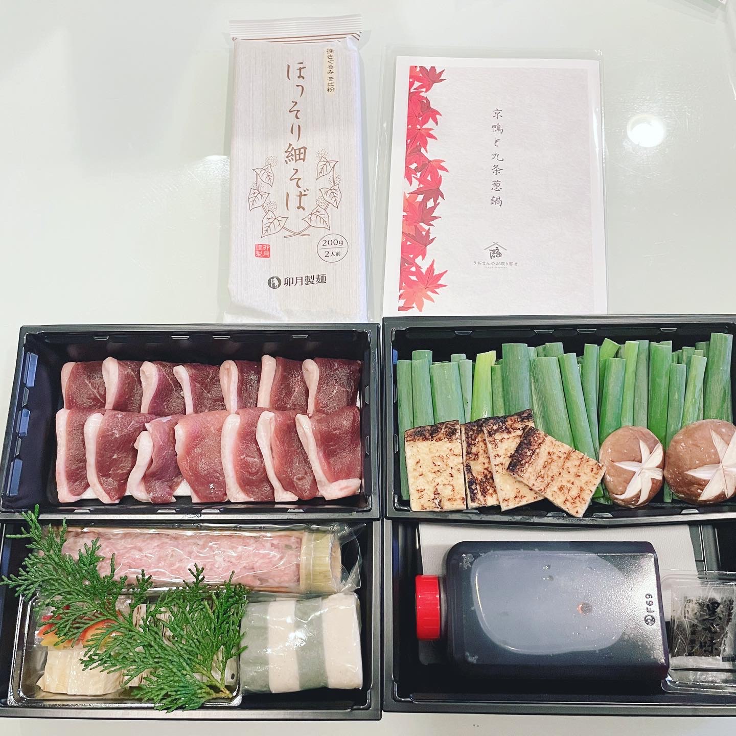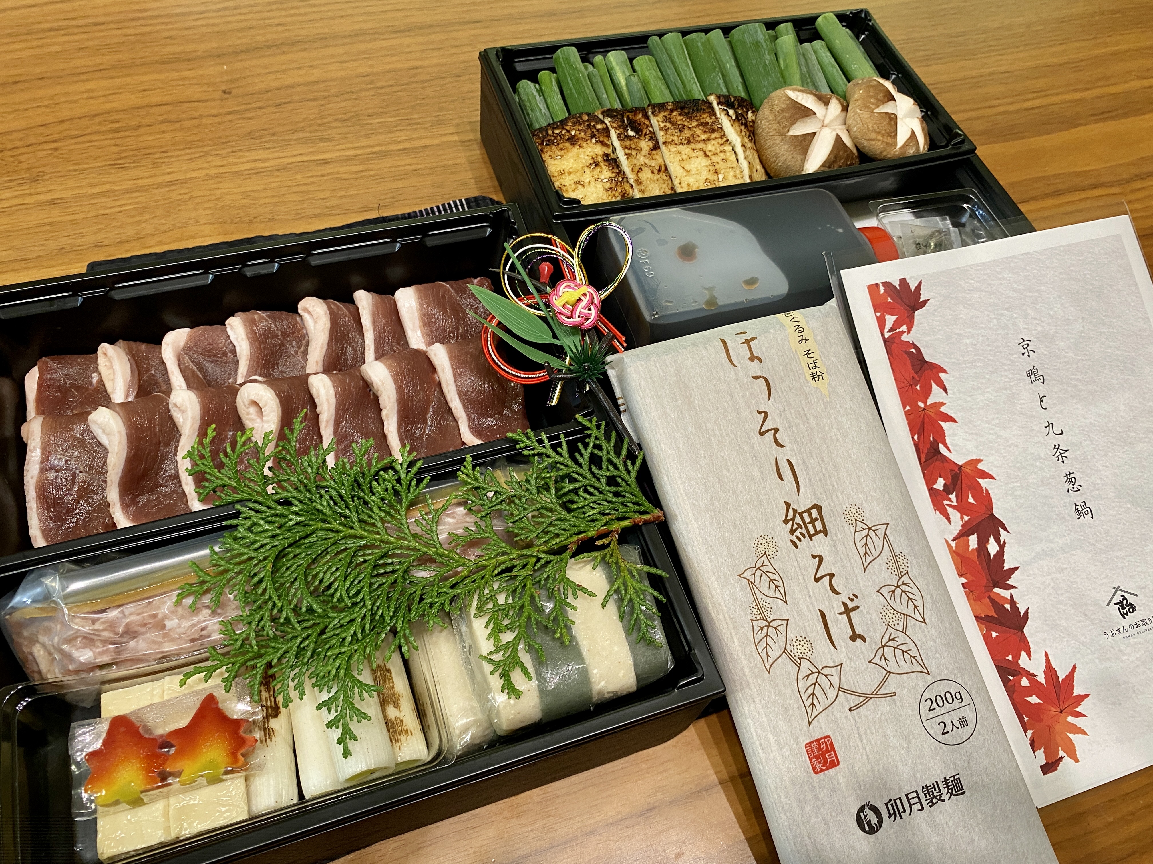 「鴨が葱を背負って来る」という「ことわざ」がある程、相性の良い食材が組み合さった「京鴨と九条葱鍋」です。京鴨ならではの上品な脂の旨味、京都九条葱のトロッとした食感が出会った極上の鍋です。その他、湯葉、あわ麩、よもぎ麩、紅葉麩、薄揚げなど出汁を吸って出汁の味を感じられる具材や、鴨のつくね、薬味、〆の蕎麦までセットになっているので、京都の旬の味が自宅で手軽に楽しめます。