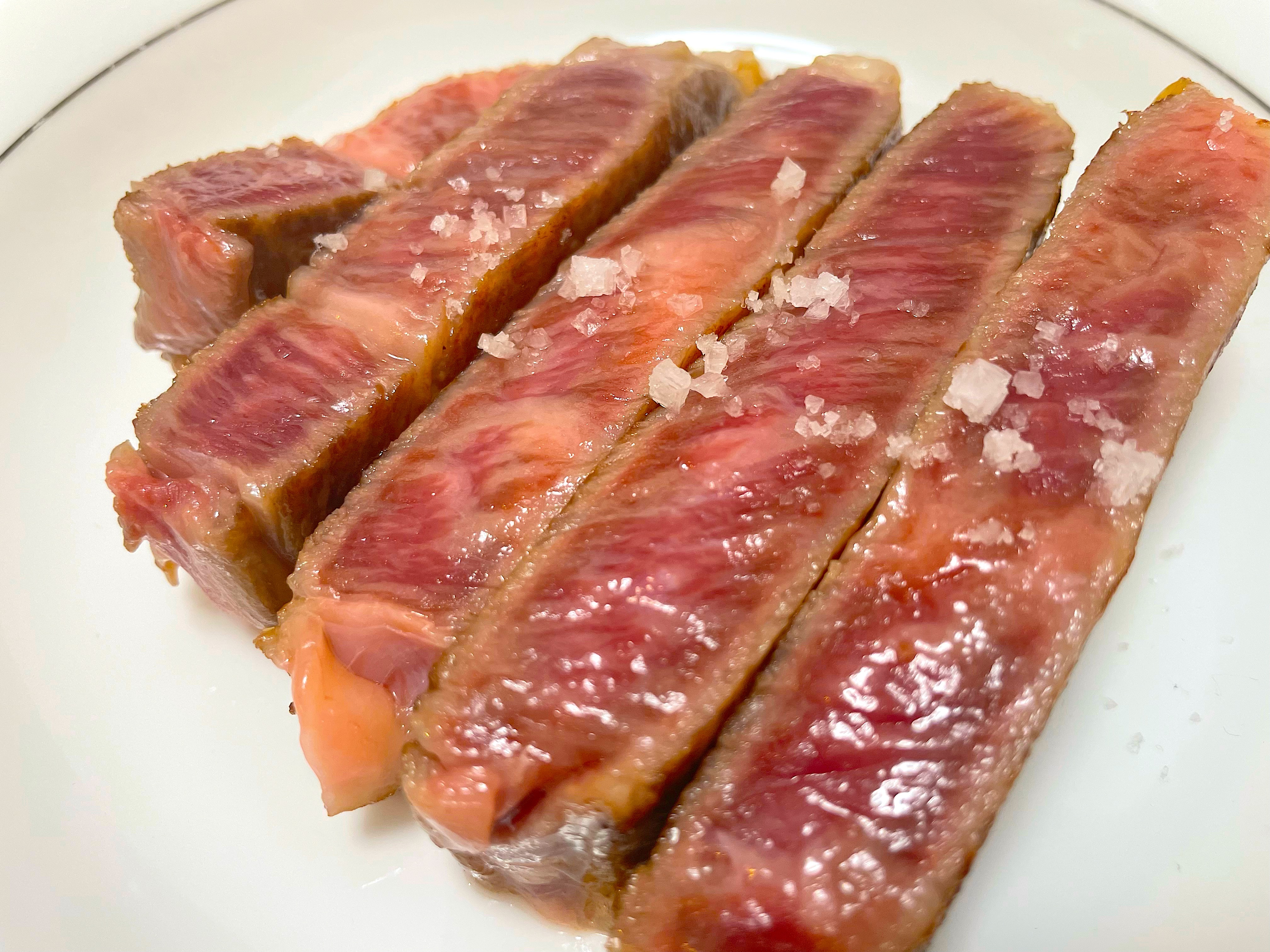 一口食べた瞬間、「ごめんなさい....」。友人と一緒に食べるはずだったのですが、先に私1人で食べることになった事を後悔しました。こんなに美味しいものを1人で食べてしまったことを心の中で懺悔します。お肉って硬いところや柔らかいところがあると思うのですが、満遍なく全てが柔らかいんです。そして、口の中でじゅわぁっと肉の旨みが広がります。一瞬にして初めて伊万里牛をいただいたときの感動が蘇りました。いや、その時よりも美味しいです。どのブランド牛よりも美味しいです。下の上でとろける繊細なこの感じ。サーロインならではの脂の旨さ。本当に美味しい。