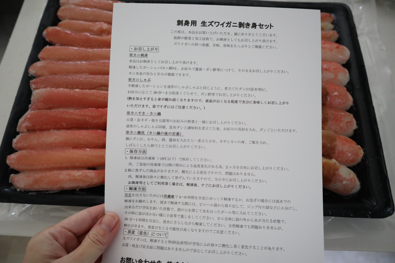 かに自体の包材も最小限に抑えられているので、そのまま冷蔵庫に入れているだけでゴミも少なく解凍出来たのがとても良いと思います。