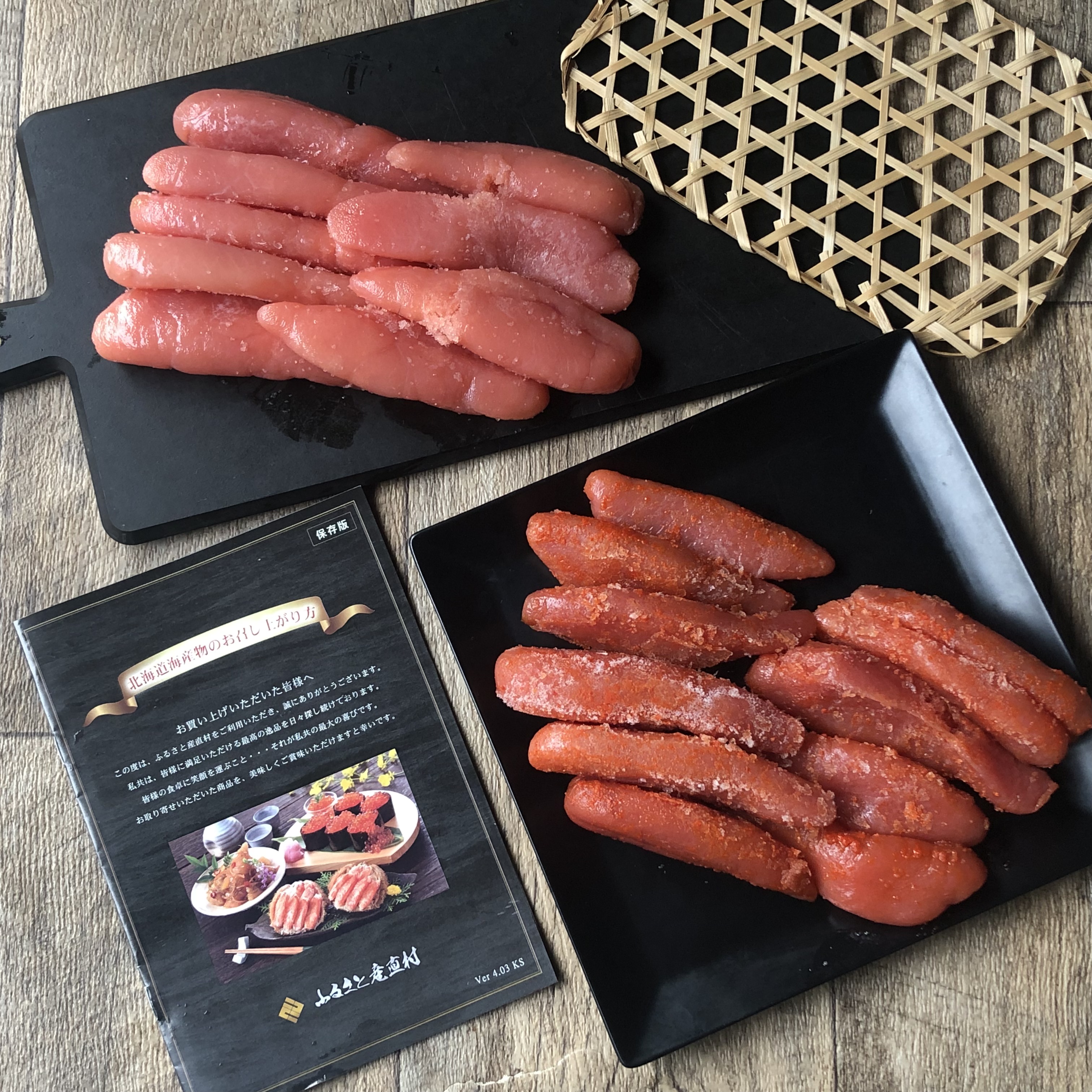 ○塩たらこ、明太子の単品販売もありますが、こちらのセットなら食べ比べもできて大切な方への贈り物にも最適です。