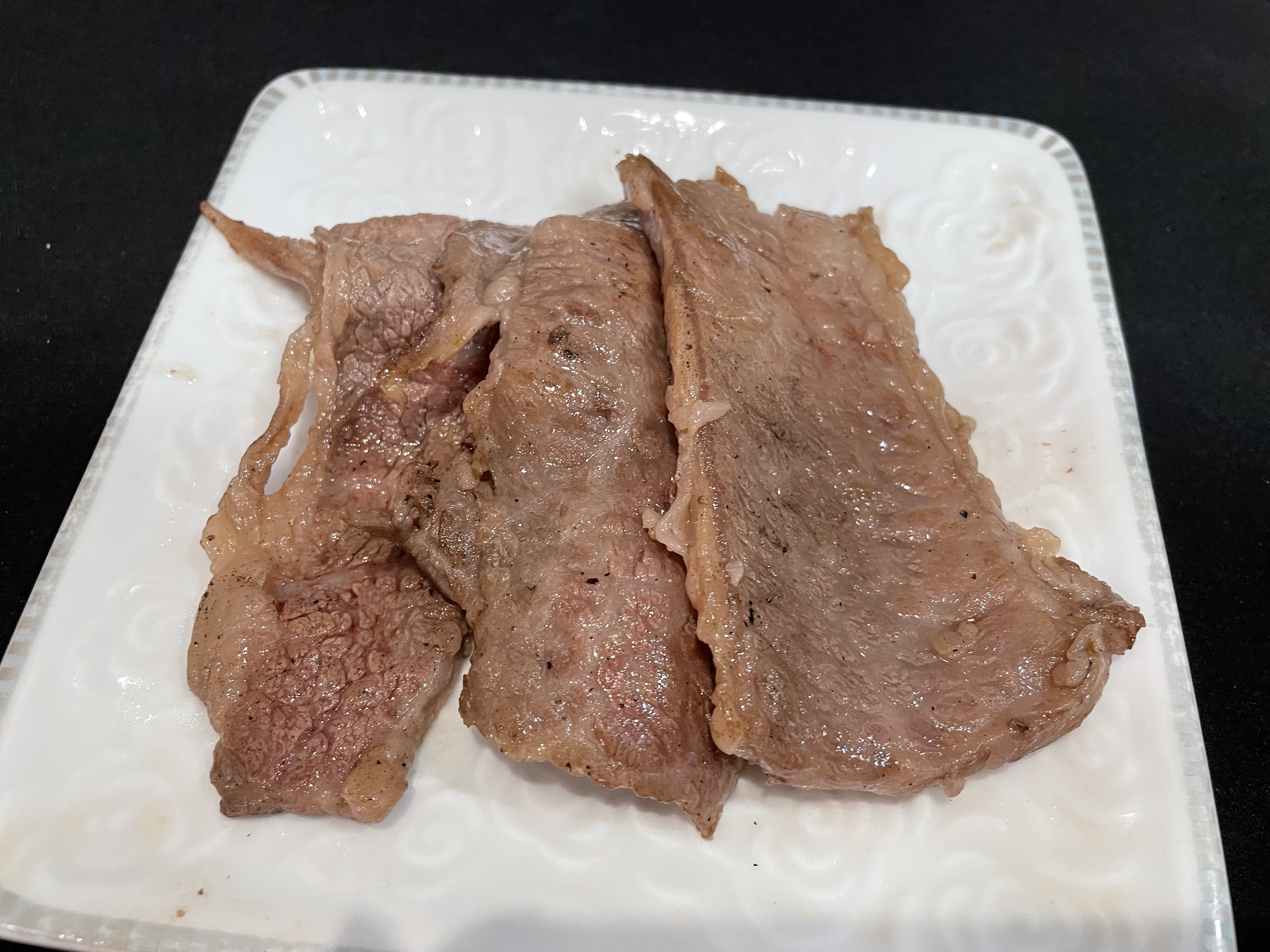 今回はまず、見た目の良いお肉を選んでステーキにしていただきました。シンプルに焼くだけで、お肉の良い香りが広がり、食卓が一気に特別感のある雰囲気に。味付けはポン酢、わさび醤油、にんにくチップ、大根おろしなどいろいろ試してみました。夫はさっぱりと食べられるポン酢が一番気に入ったようで、脂の旨味と酸味のバランスが良いと喜んでいました。私はわさび醤油がお気に入りで、お肉本来の甘みやコクをしっかり感じられる点がとても良かったです。にんにくチップでパンチを加えたり、大根おろしでさっぱりさせたりと、同じお肉でも味の変化を楽しめるのも魅力でした。