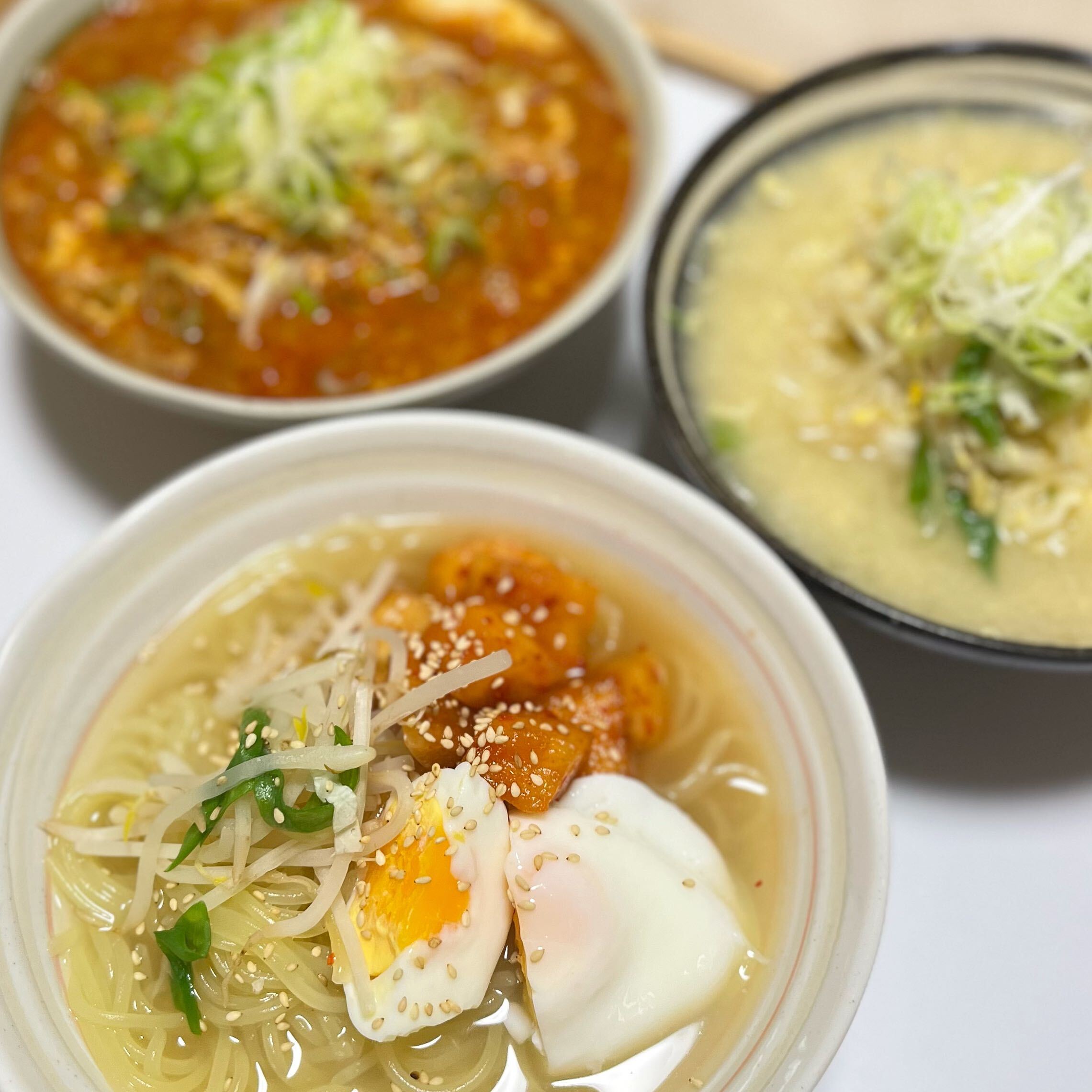 三大麺の中で唯一の冷麺。私は少し硬めに茹でて、つるっとした喉越しを楽しみました。さっぱり食べられるので暑い日に最高です。また、ついているカクテキが格別!ピリッとした辛味で味変して楽しめました!
