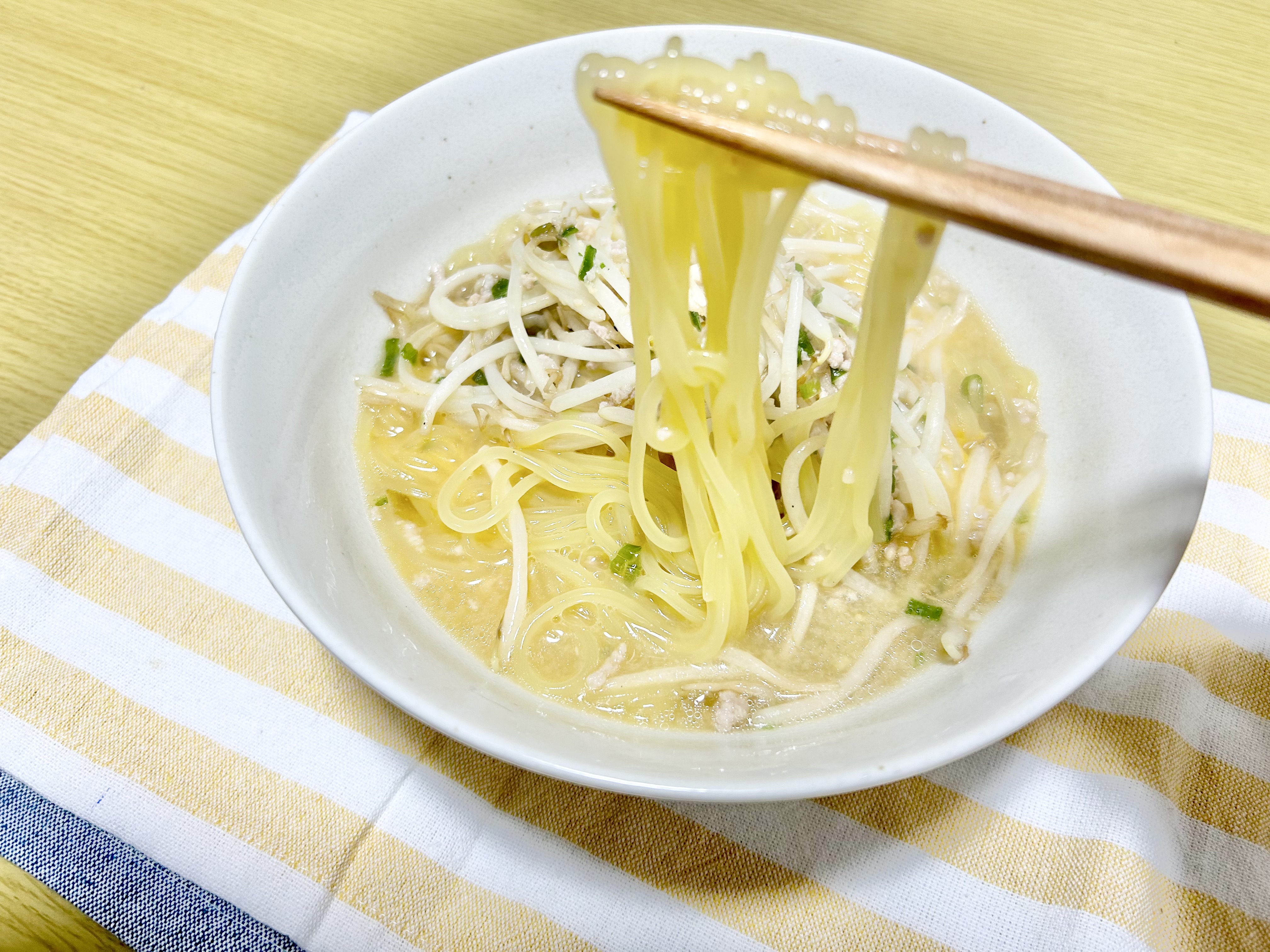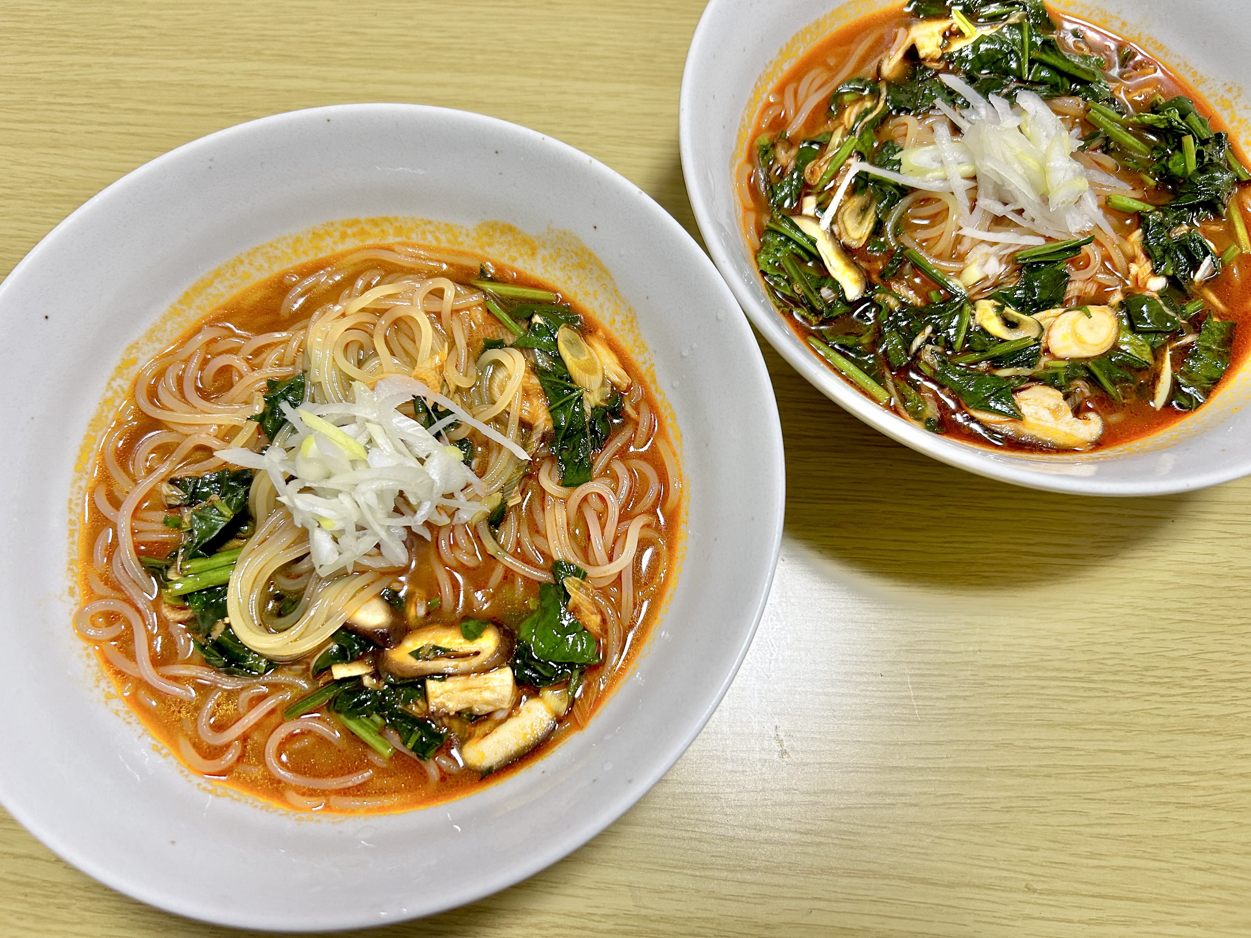 辛いのが苦手な方でも美味しく召し上がっていただける塩温めん。豚の挽肉、もやし、ほうれん草、白菜、刻みネギを入れるとさらに美味しく召し上がっていただけます。
