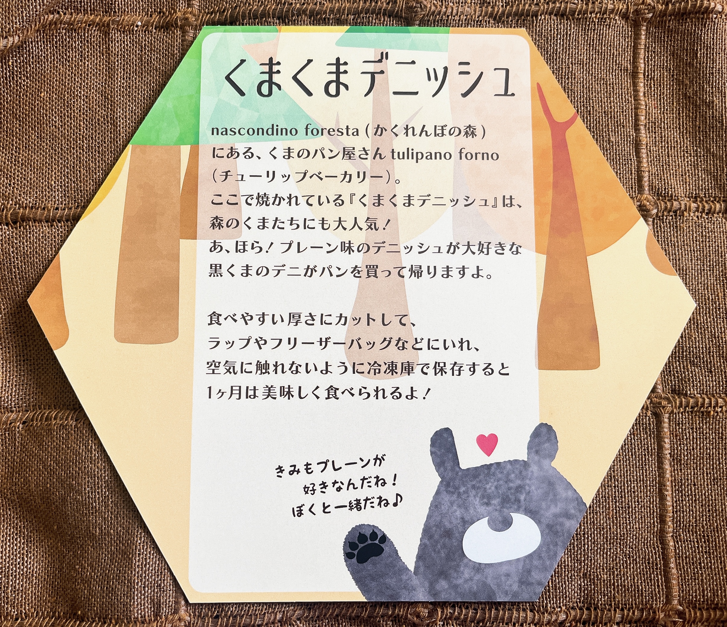 パン職人ミトンさん、黒くまのデニ、茶色くまボール・・・くま達がおススメのデニッシュや、美味しい食べ方を紹介しているのも是非チェックしてみてください♪