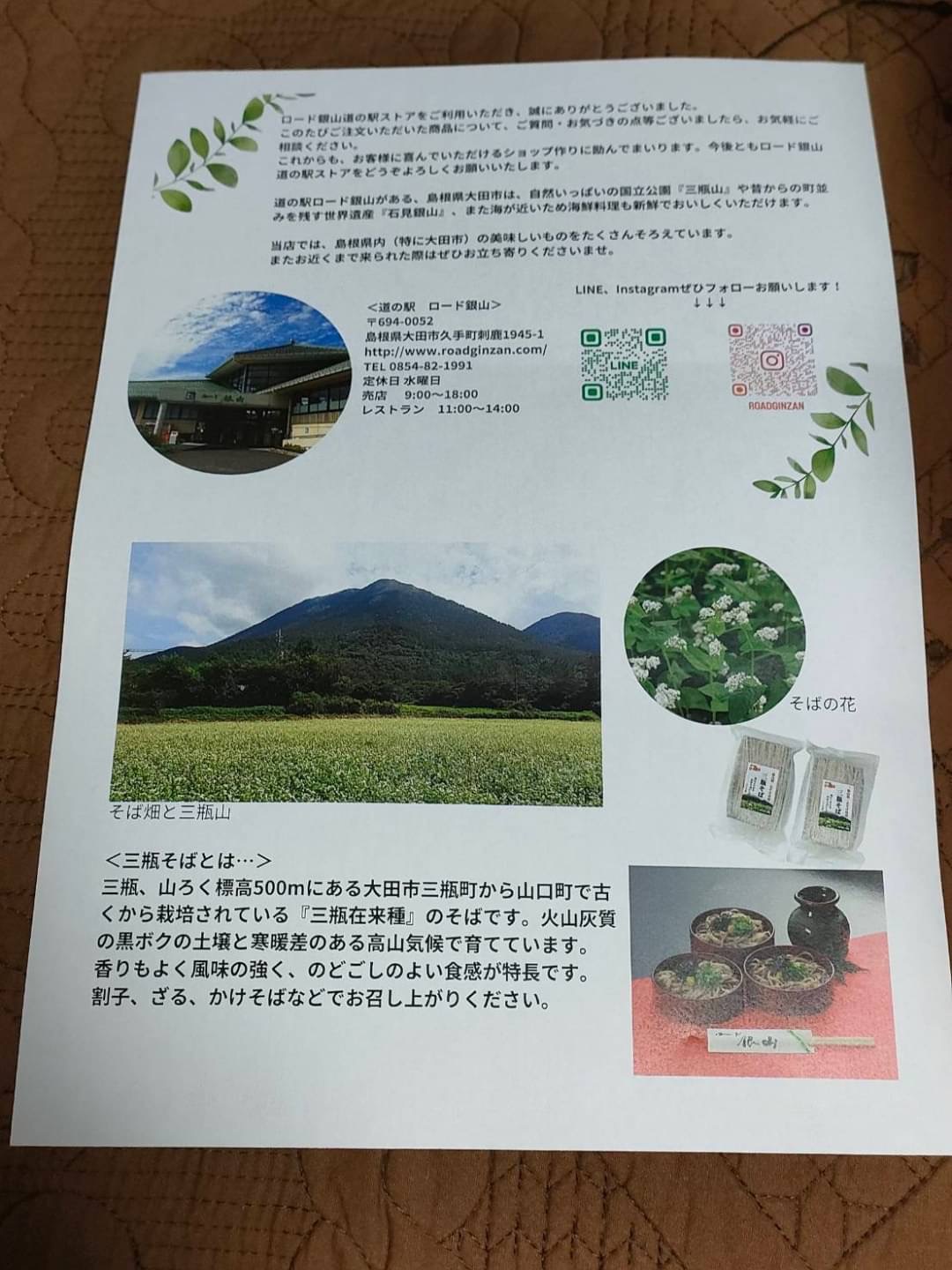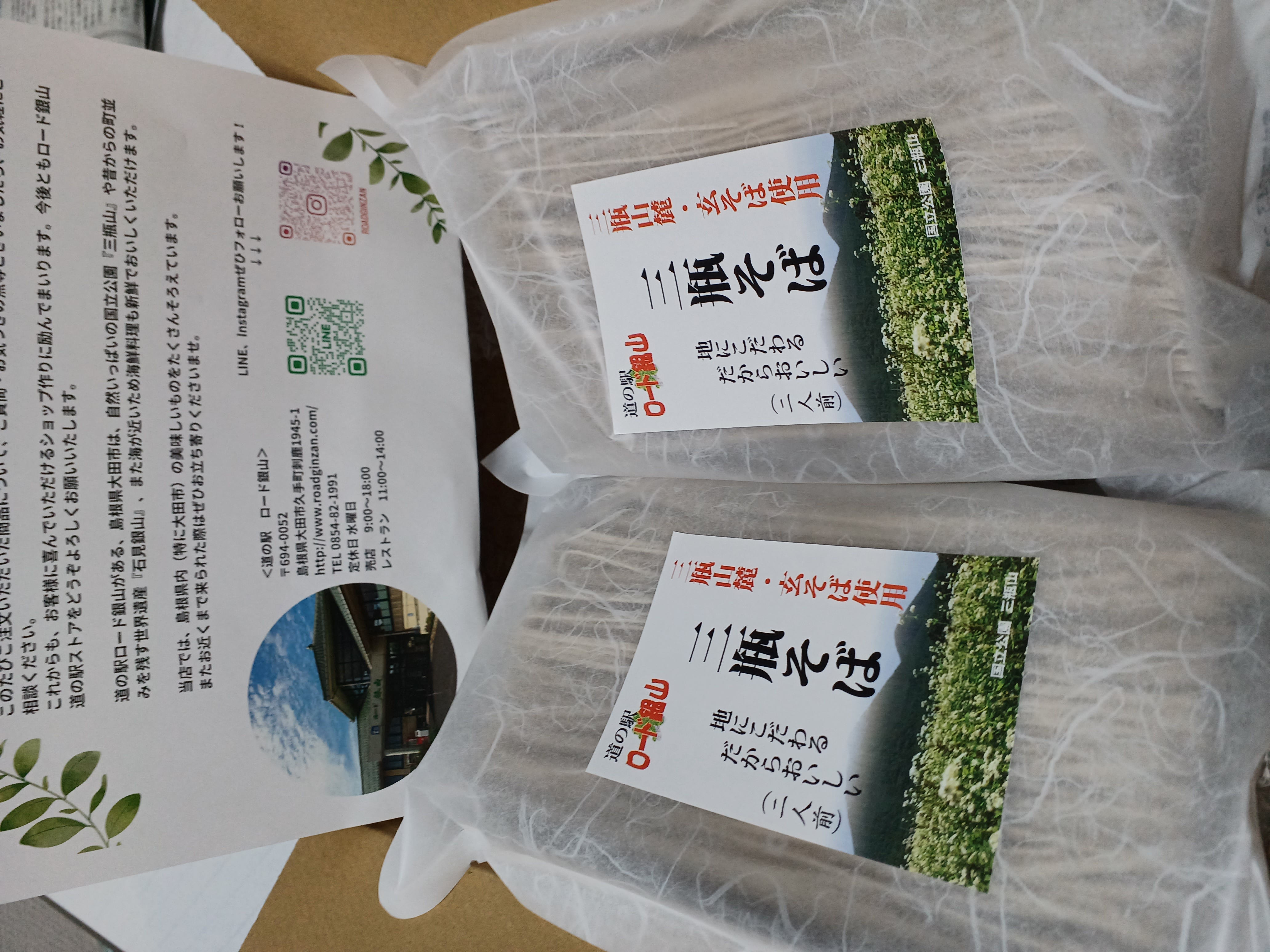 三瓶そば(乾麺) 2パック 4人前 ロード銀山道の駅ストア