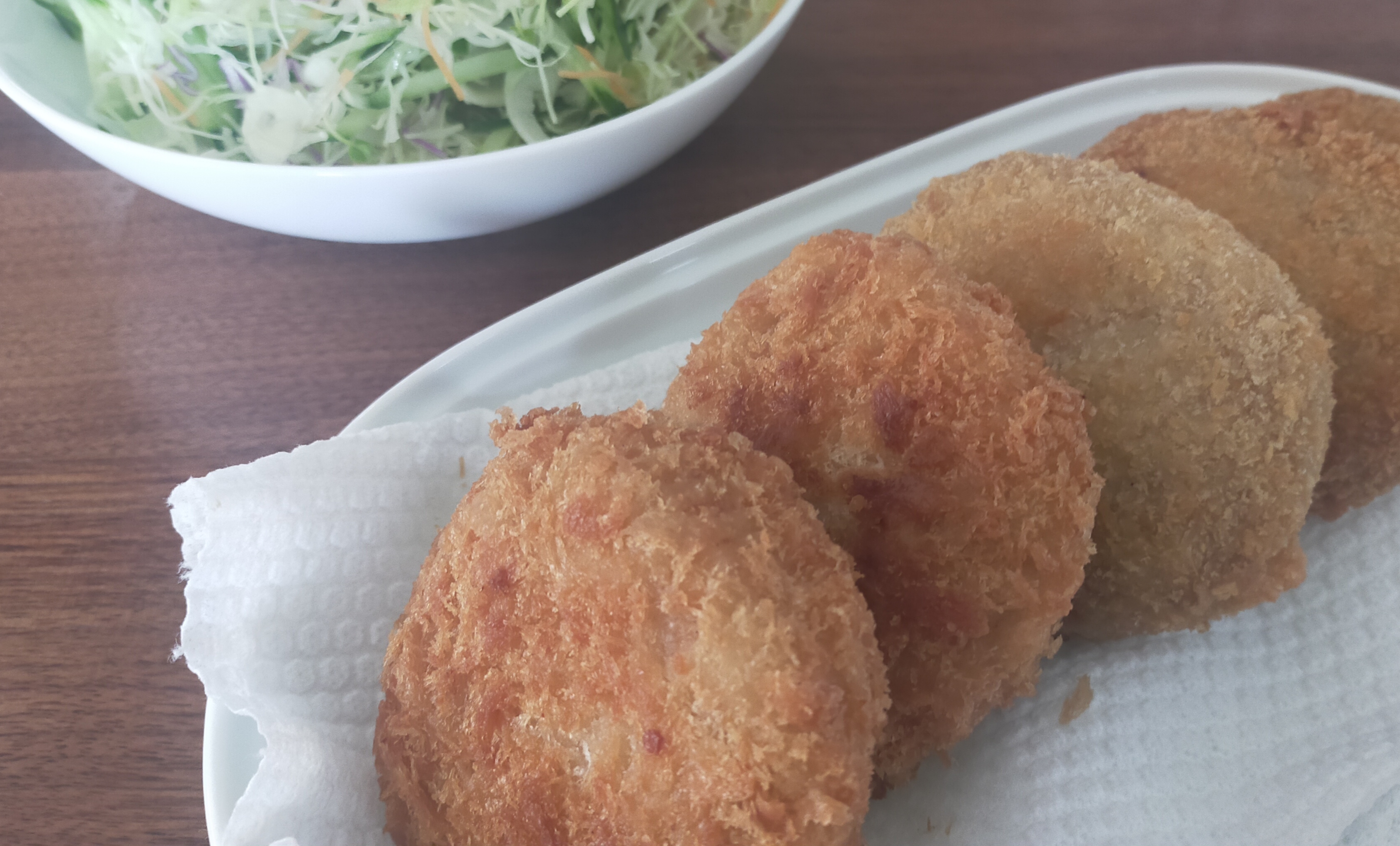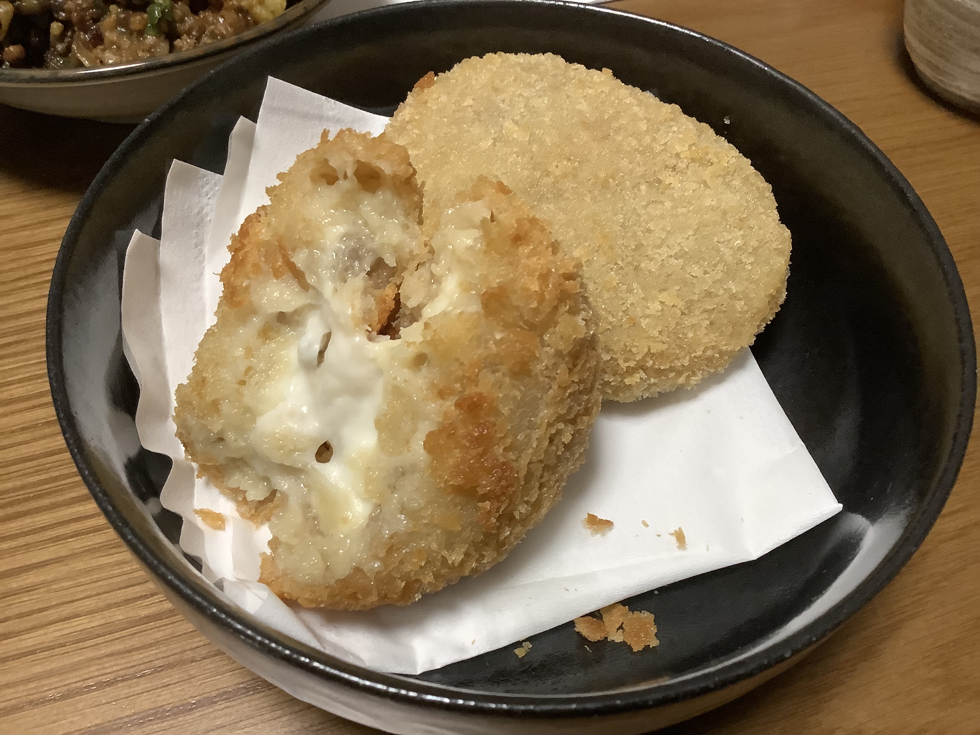チーズ入りコロッケを食べたことがなかったので、いただく前はどんなお味かな?と思っていましたが、とろけたチーズとなめらかなじゃがいもがとてもマッチしていて、とっても美味しい!
