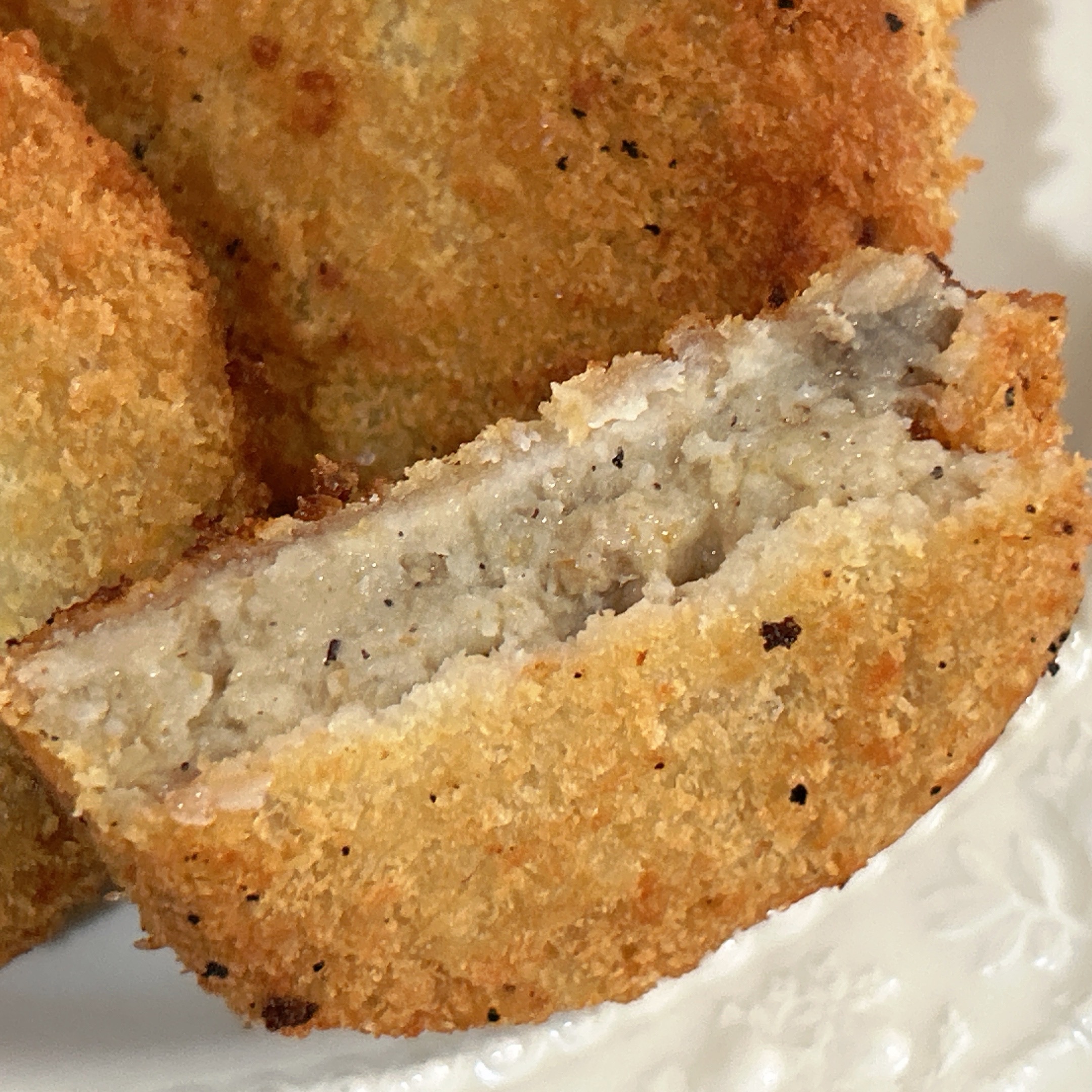 衣さくさく!ブラックペッパーが入っていて食べたときに口の中にブラックペッパーの香りが広がります!じゃがいもと玉ねぎの甘みと旨味も最高!大人もこどもも何もかけずで十分な美味しさでした。