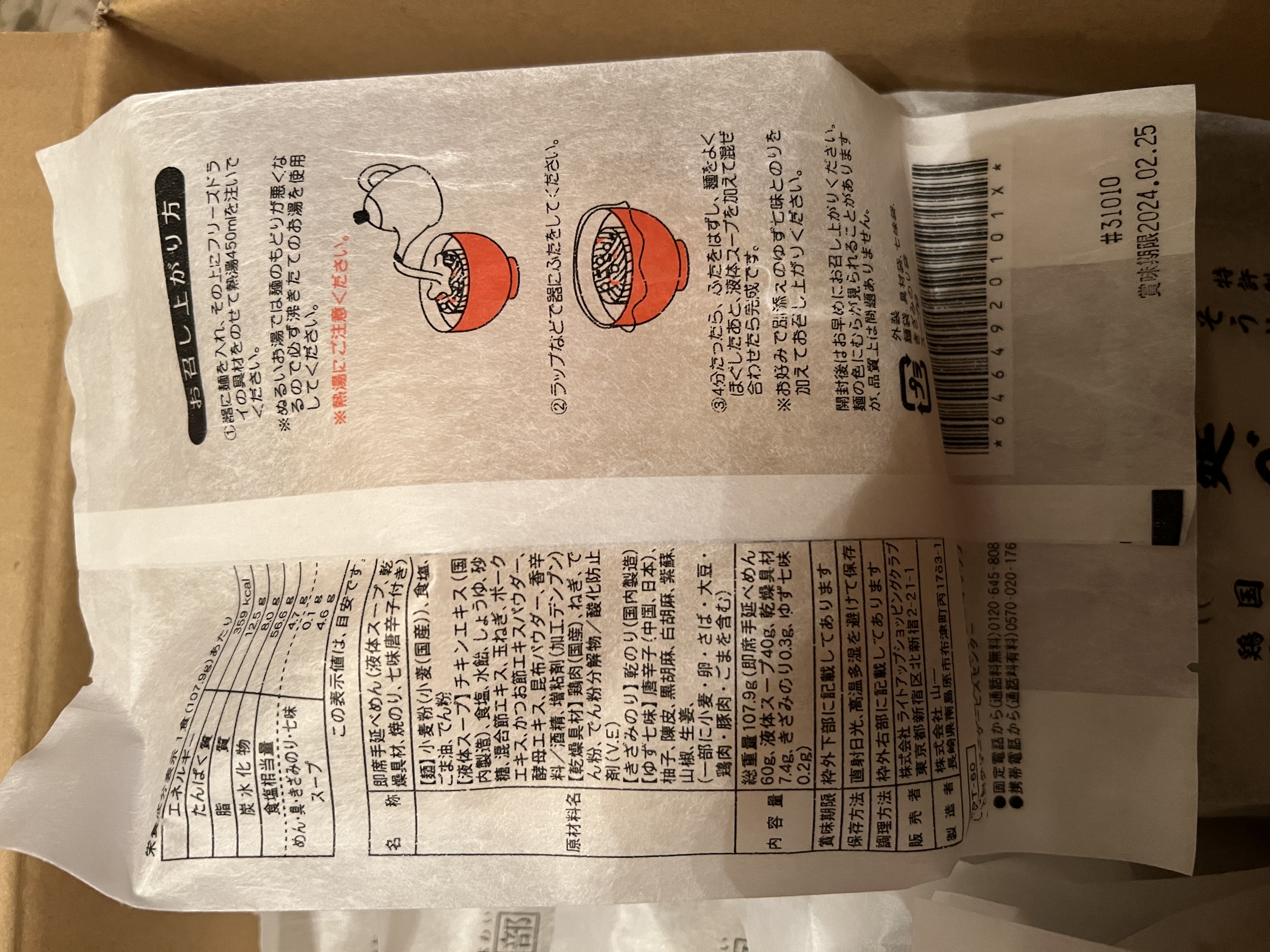 麺、液体スープ、フリーズドライ具材を器に入れ、熱湯を注ぎ約4分でお召し上がりいただけます。