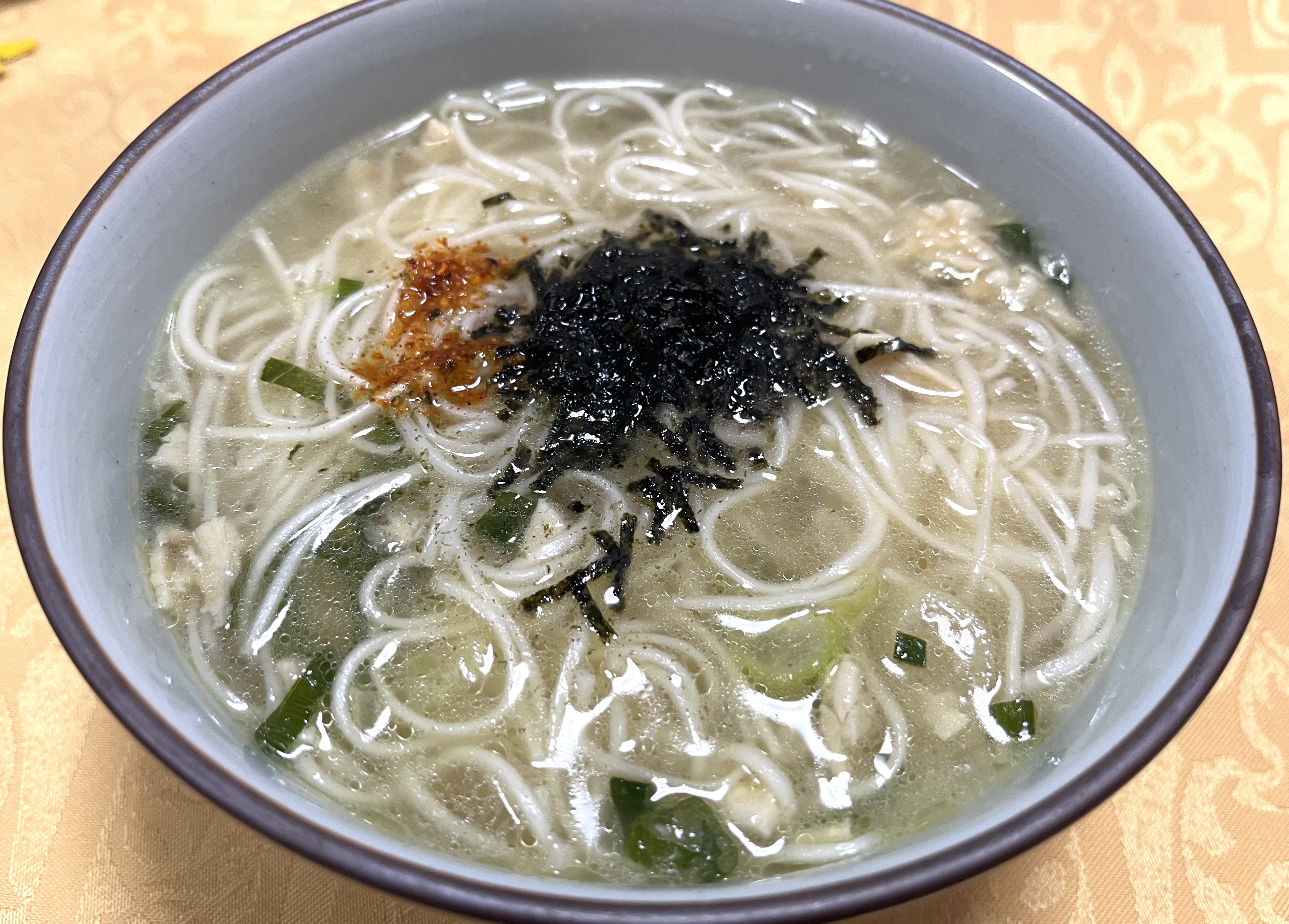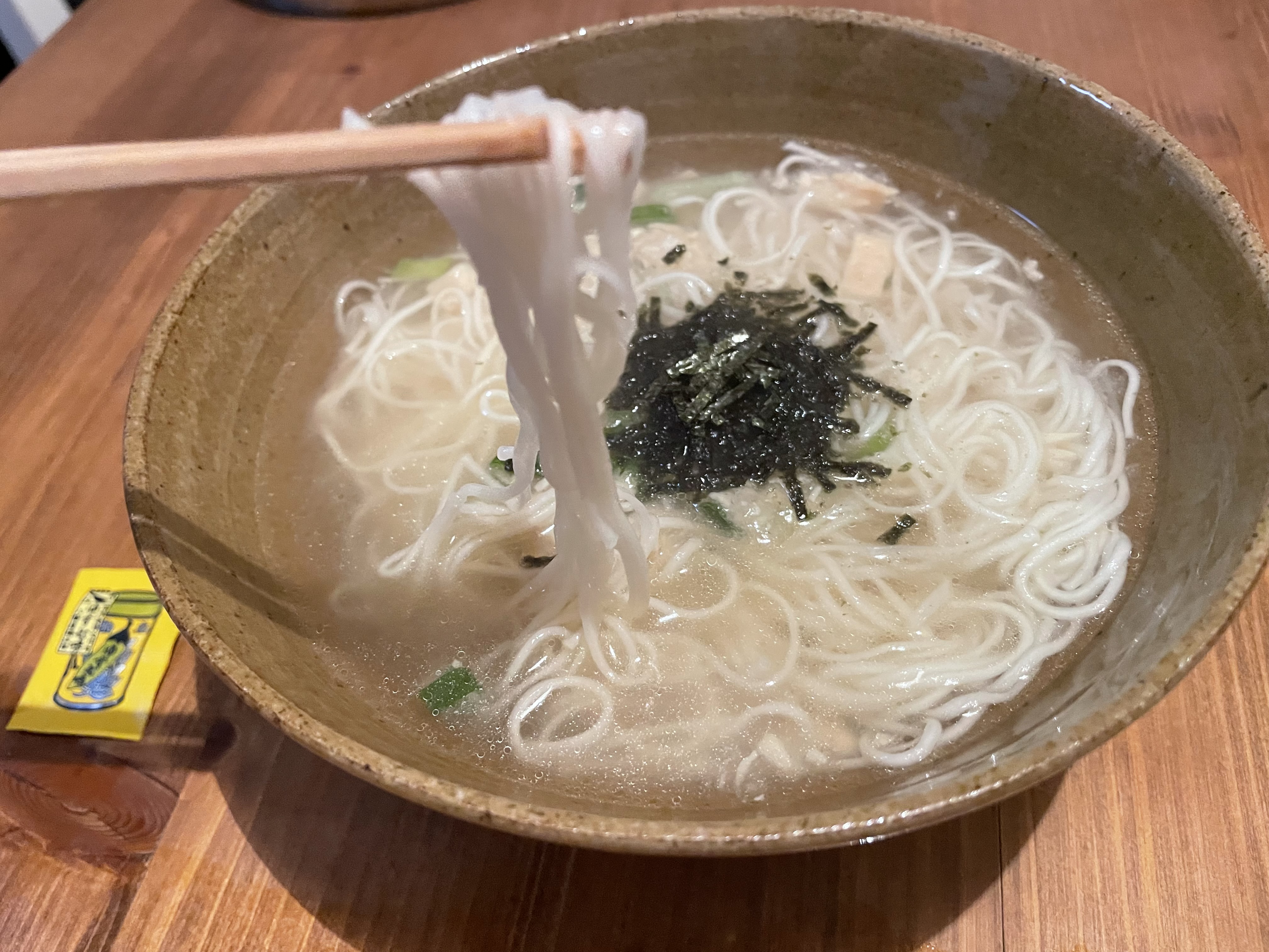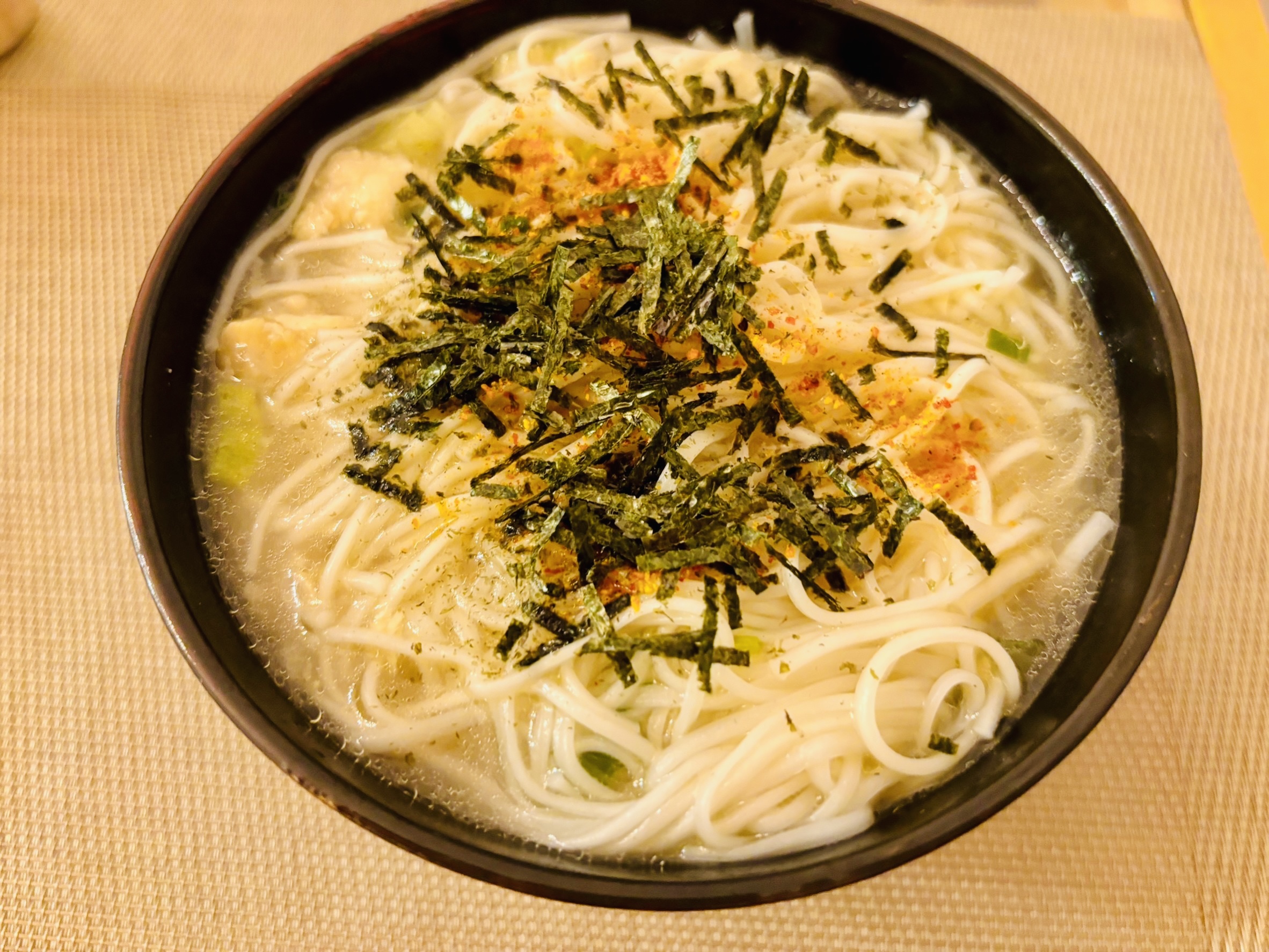 具材の鶏むね肉には程よい食べ応えがあり、爽やかな香りのねぎと風味豊かな海苔が絶妙なアクセントをつけています。