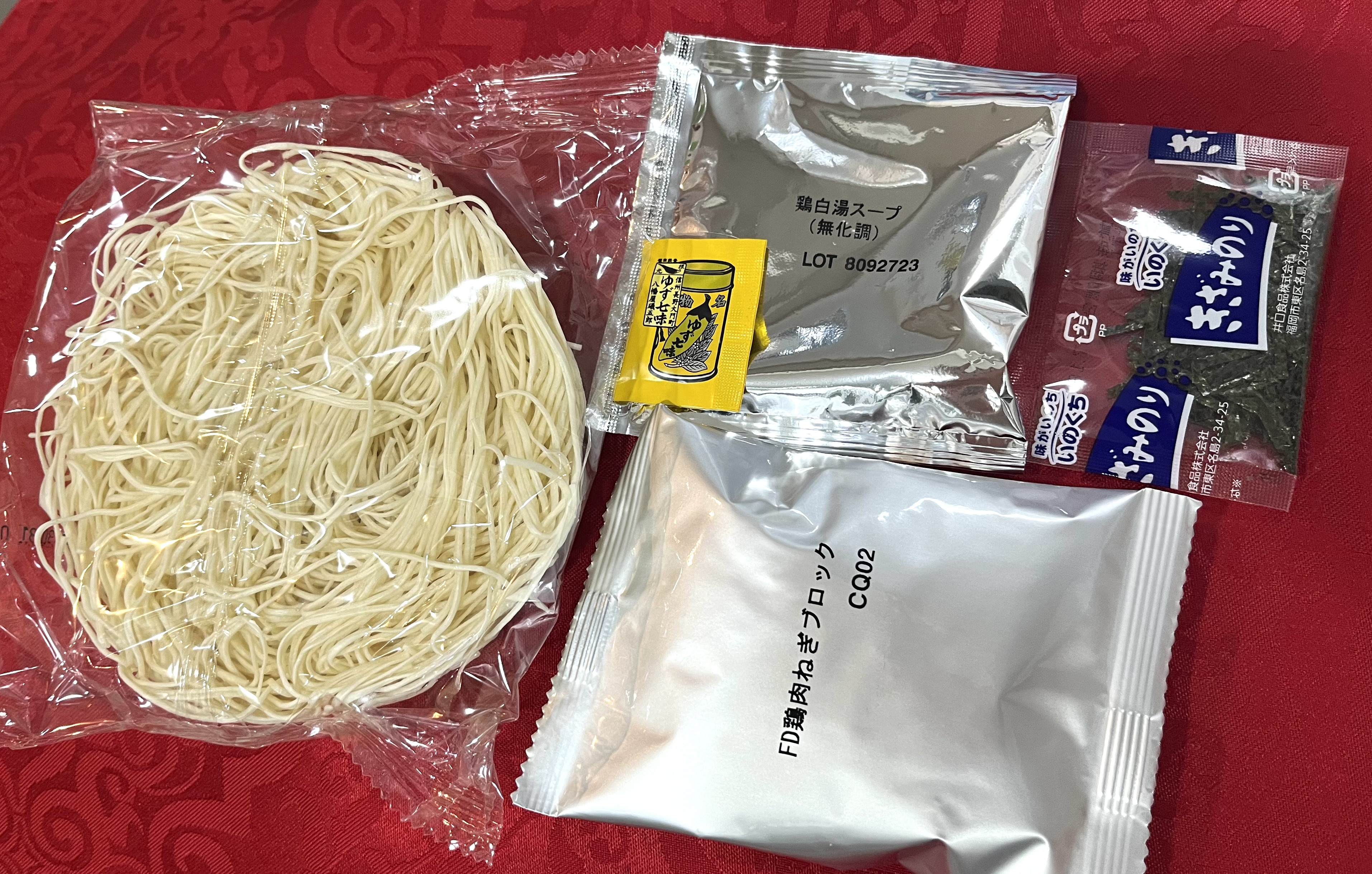 麺、液体スープ、フリーズドライ具材ときざみ海苔、ゆず七味を1食ずつ包装したものを、10袋1セットでお届け。