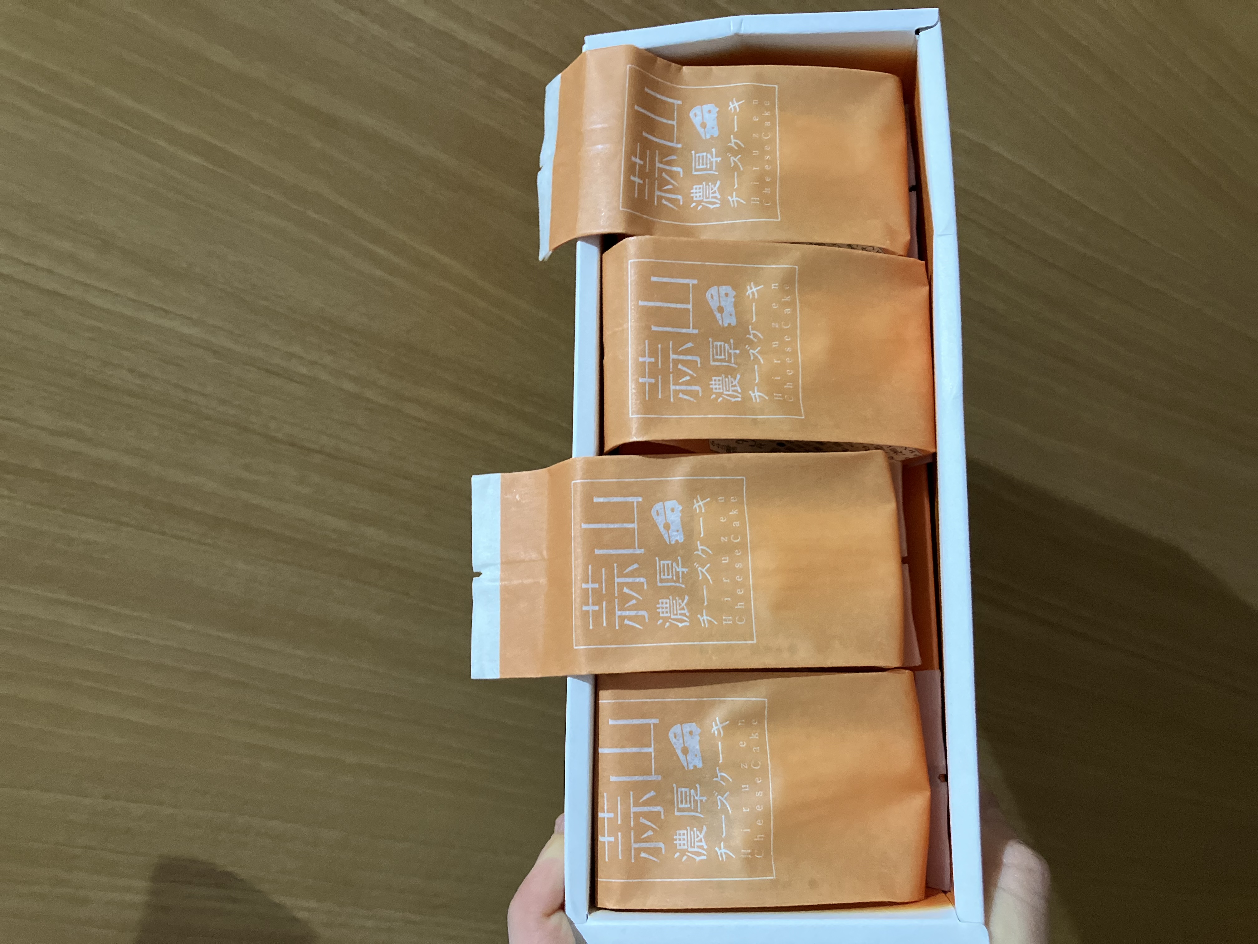 箱を開けると、個包装されたチーズケーキが4個入っていました。