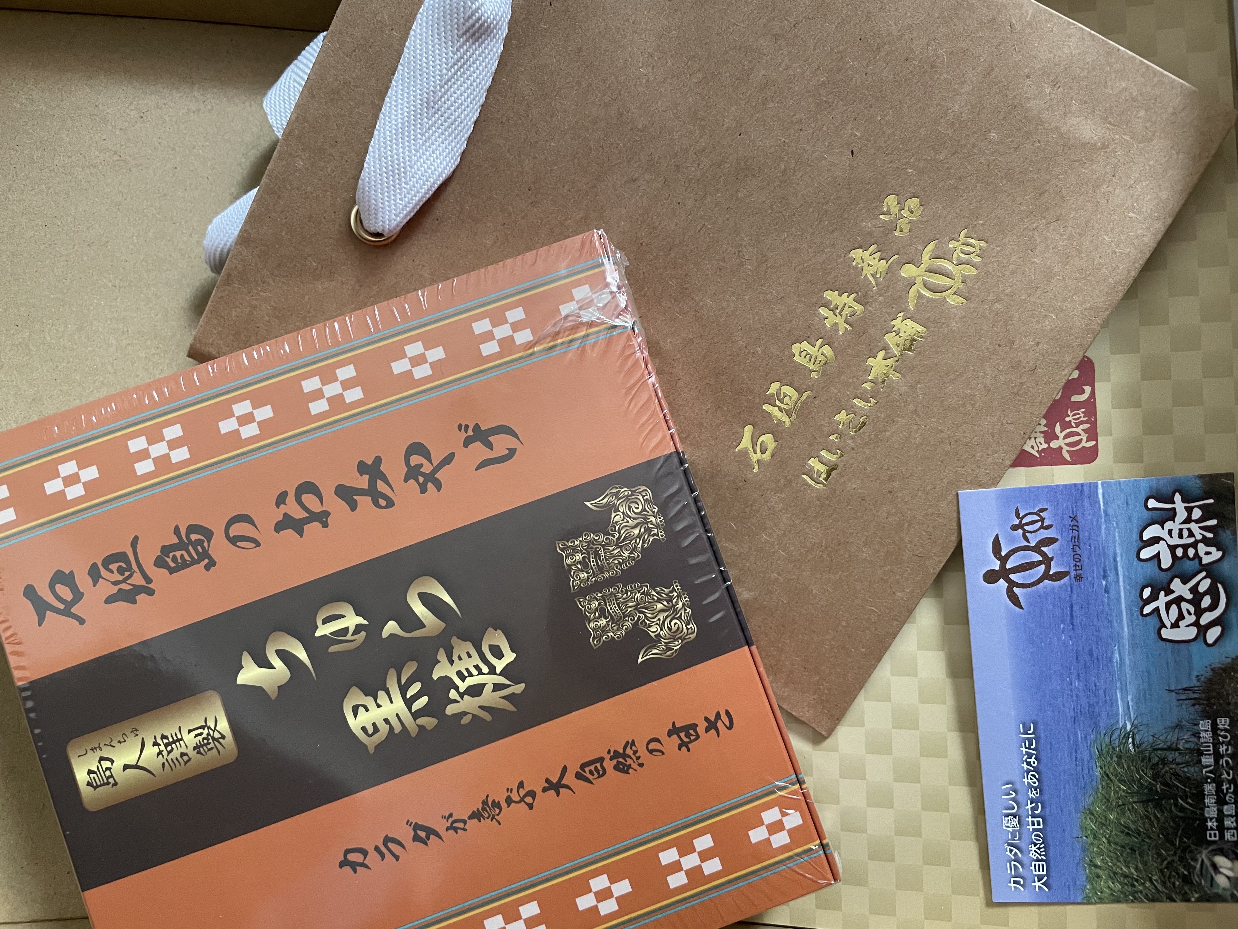 西表島のさとうきびを使った無添加の「黒糖」です。島々が育む自然の恵み、自然のミネラルをぎゅっと閉じ込めた、西表島産さとうきび100%の純粋黒糖。濃厚でまろやかなやさしい甘さが特長で、そのままおやつとして楽しめます。印象的なパッケージは、沖縄の伝統ミンサー柄で、中には琉球王朝の時代から伝わるお話が記載されています。石垣島の島人が心を込めて手作りした商品で、紙袋やメッセージカード付なので、プチギフトにもおすすめです。
