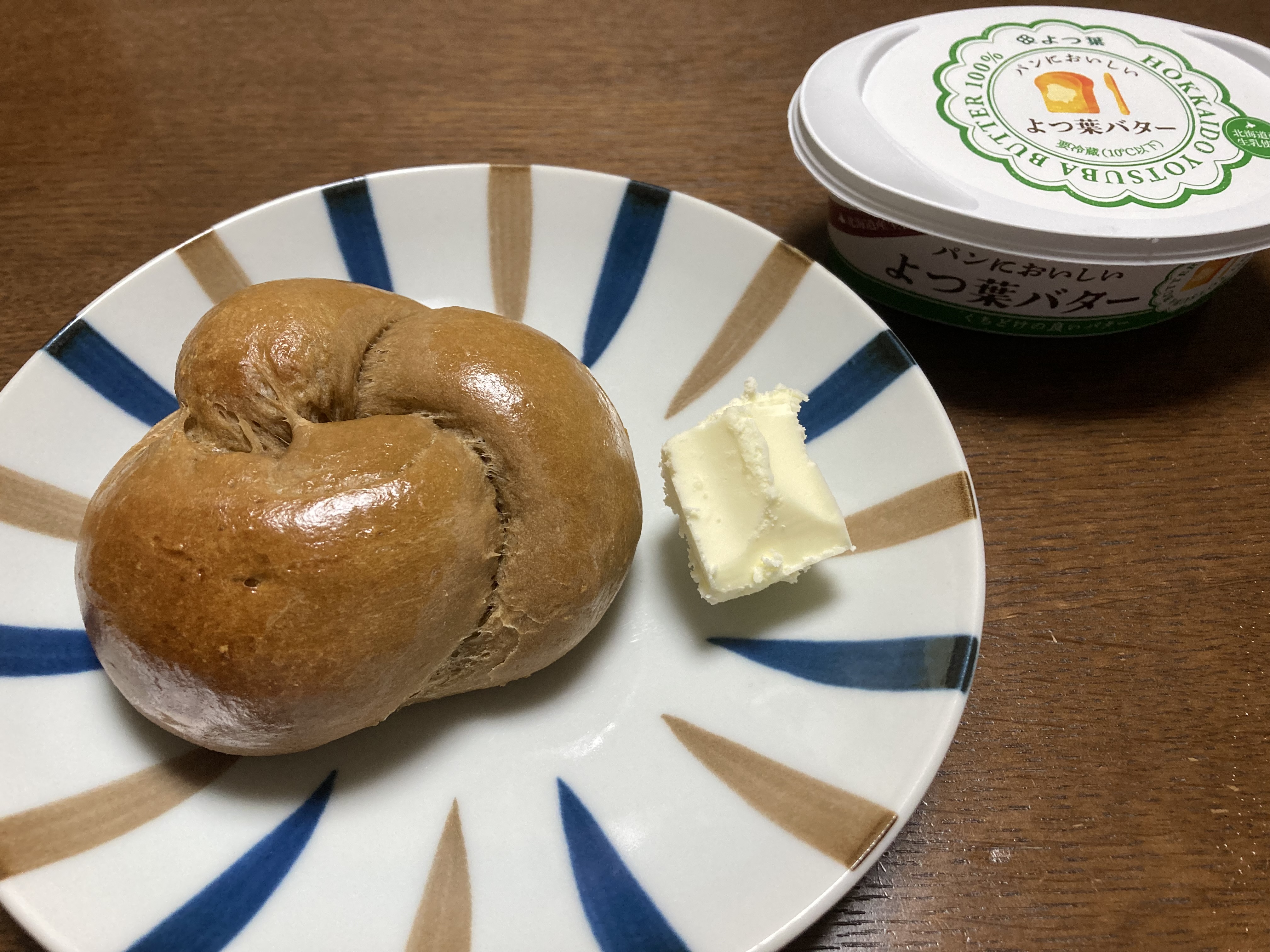 黒糖をたくさん練り込んだ黒糖パンも作りました。焼き上がりは黒糖のいい香りが部屋中に充満して幸せな気持ちになりました。パンを食べたら、黒糖の味と香りが濃厚でおいしくて、バターもトッピングしてもさらにおいしくいただけました。