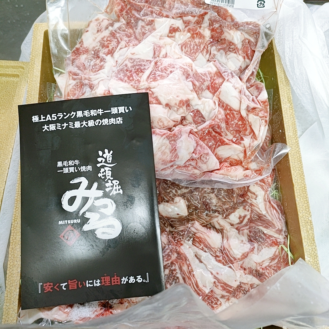 大阪道頓堀にある焼き肉屋の数量限定「A5黒毛和牛切り落とし」です。一頭買いをしているからこそできる上質な切り落としで、様々な部位がセットになっています。500g入りパックが2個 計1kg入りの、ボリューム満点な商品。牛丼、すき焼き、肉じゃがなど多彩な料理に活躍できます。醤油ベースと味噌ベースのたれも一緒に届くので、食べ比べが楽しめます。