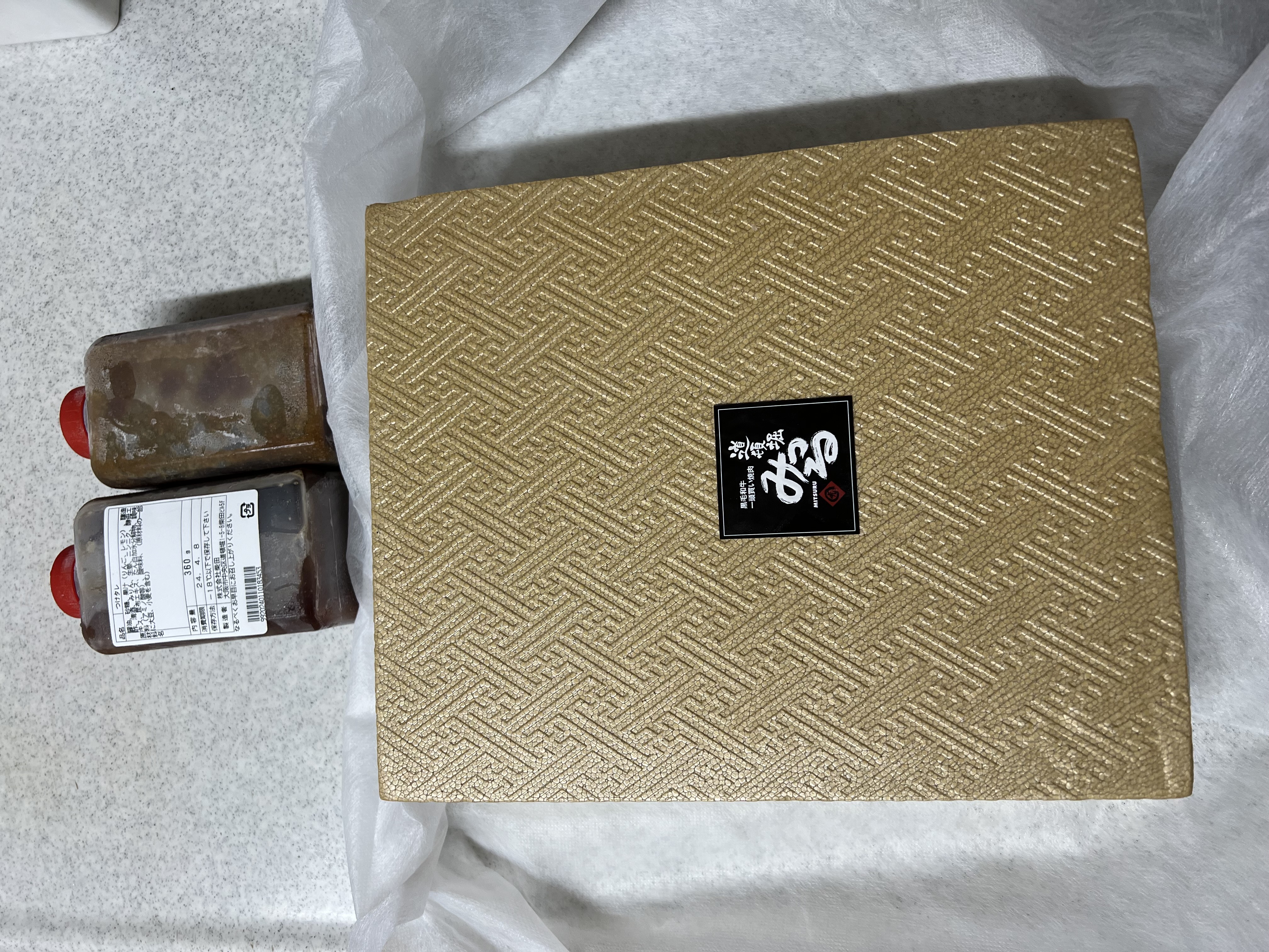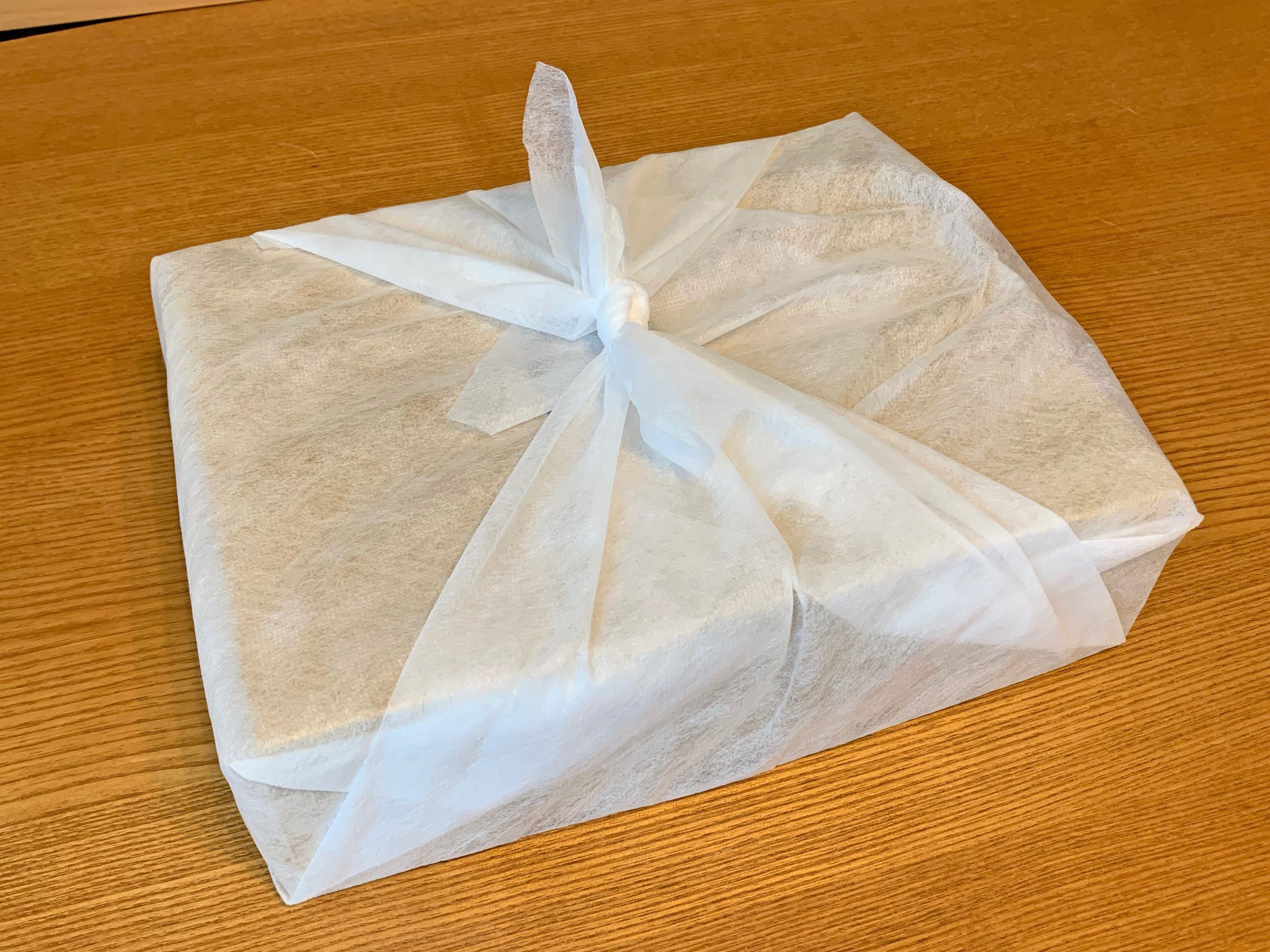 ギフト用の布に包まれた、桐箱に見紛うばかりの梱包です。