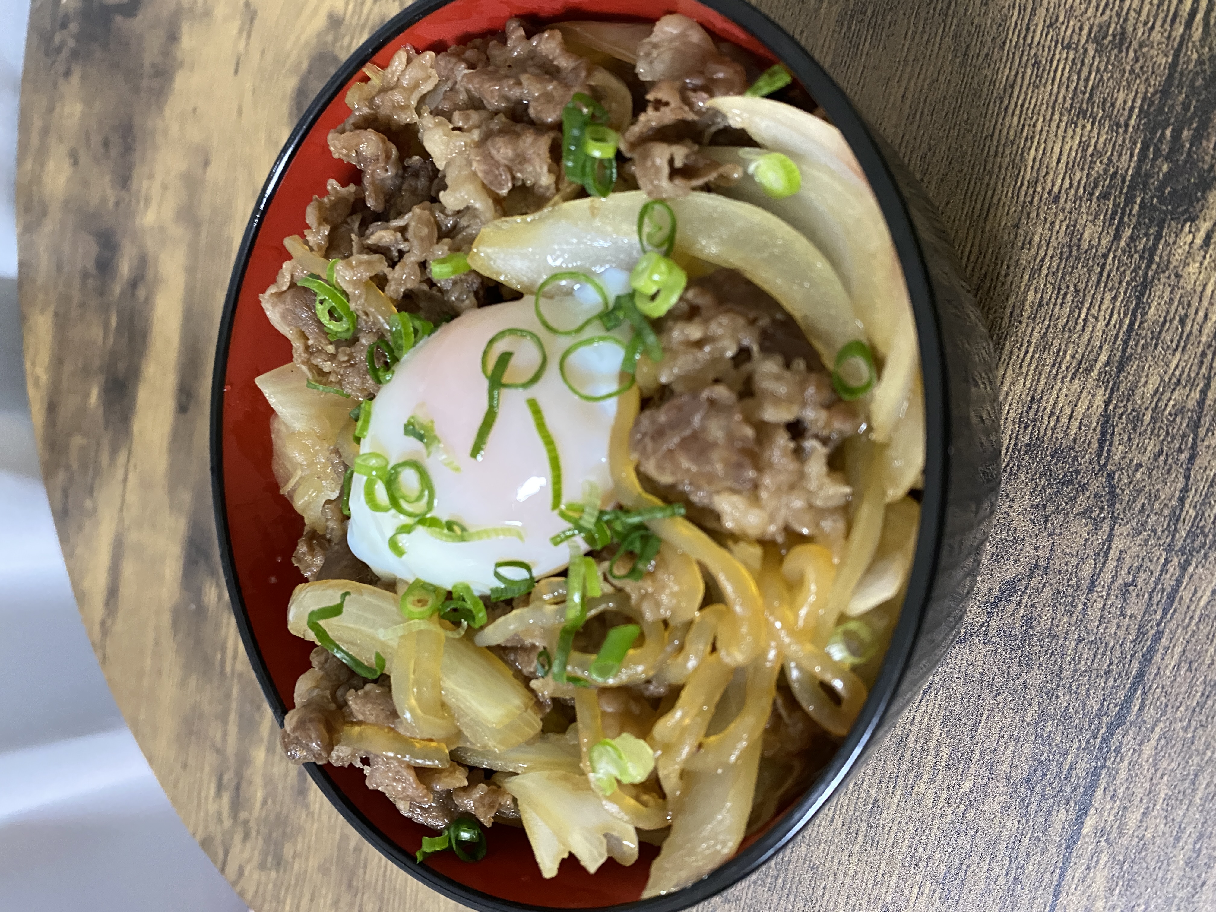 牛丼はおススメのレシピに乗っていた「牛すき丼」の作り方を参考に、お肉の量はふんだんに使用しました。