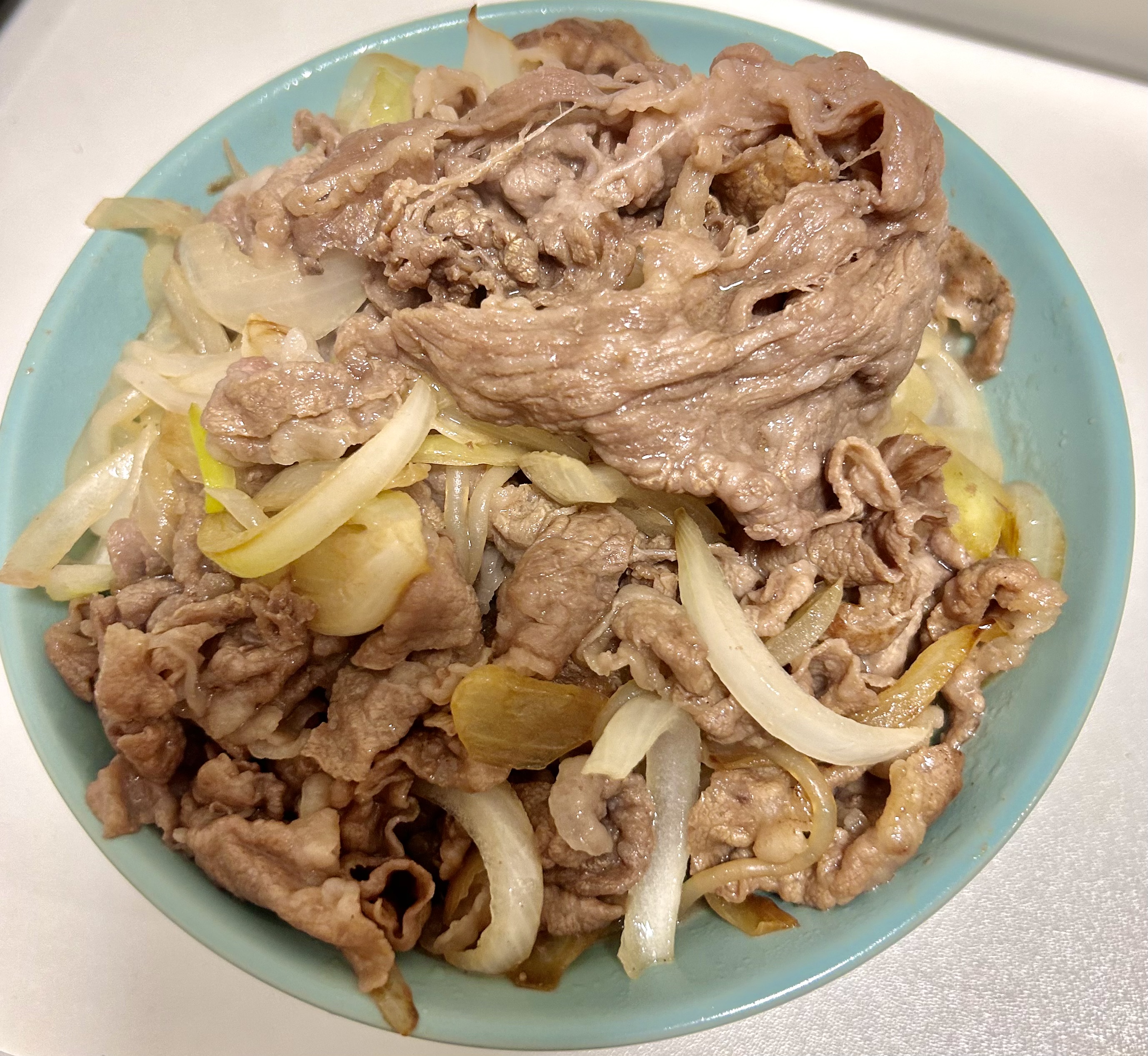 私は安定に牛丼を作りました。(2パック使用)