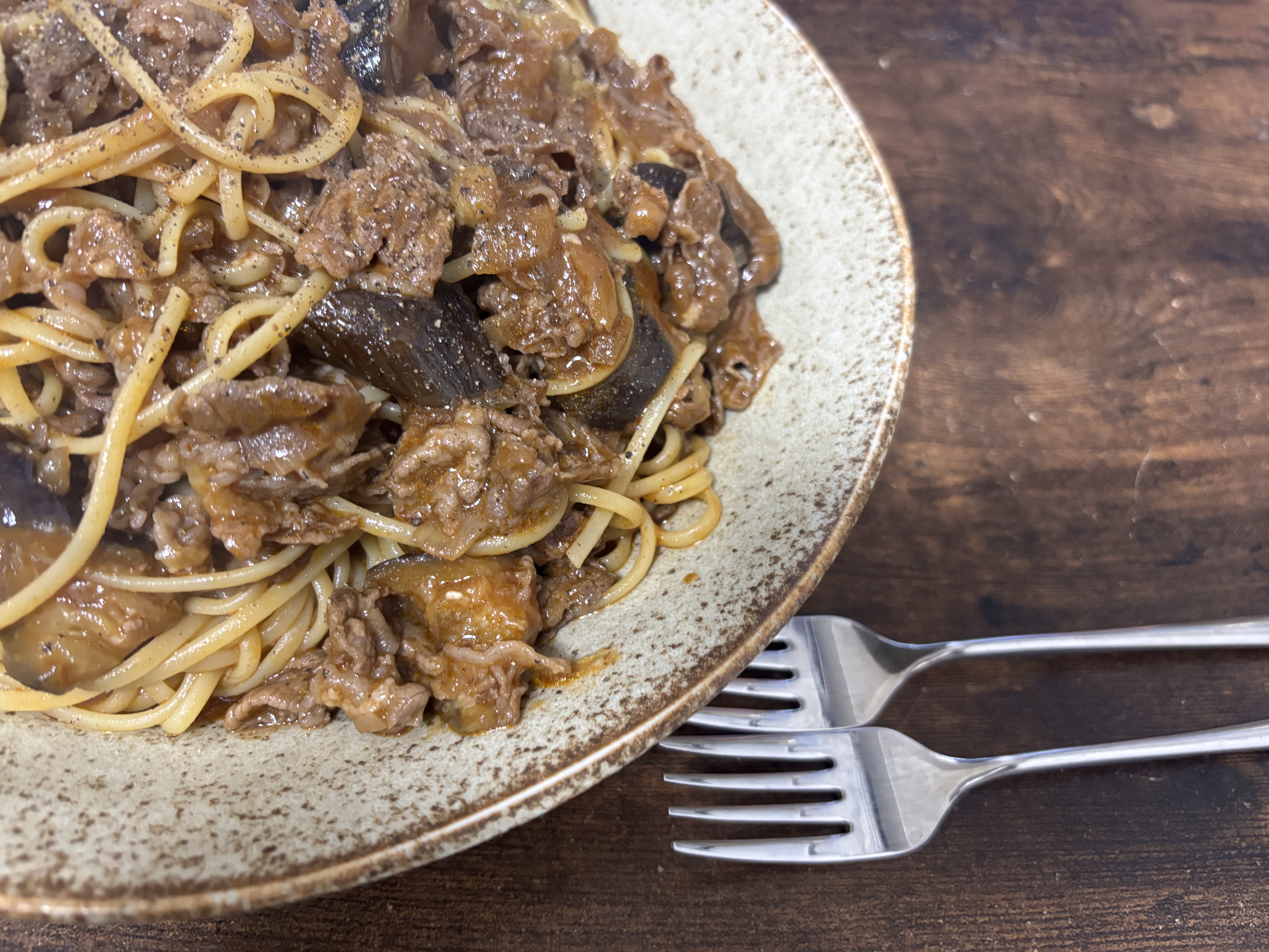 本来のミートパスタなら挽肉を使うと思うんですけど贅沢にA 5の黒毛和牛切り落としを使ったミートパスタは初でした。