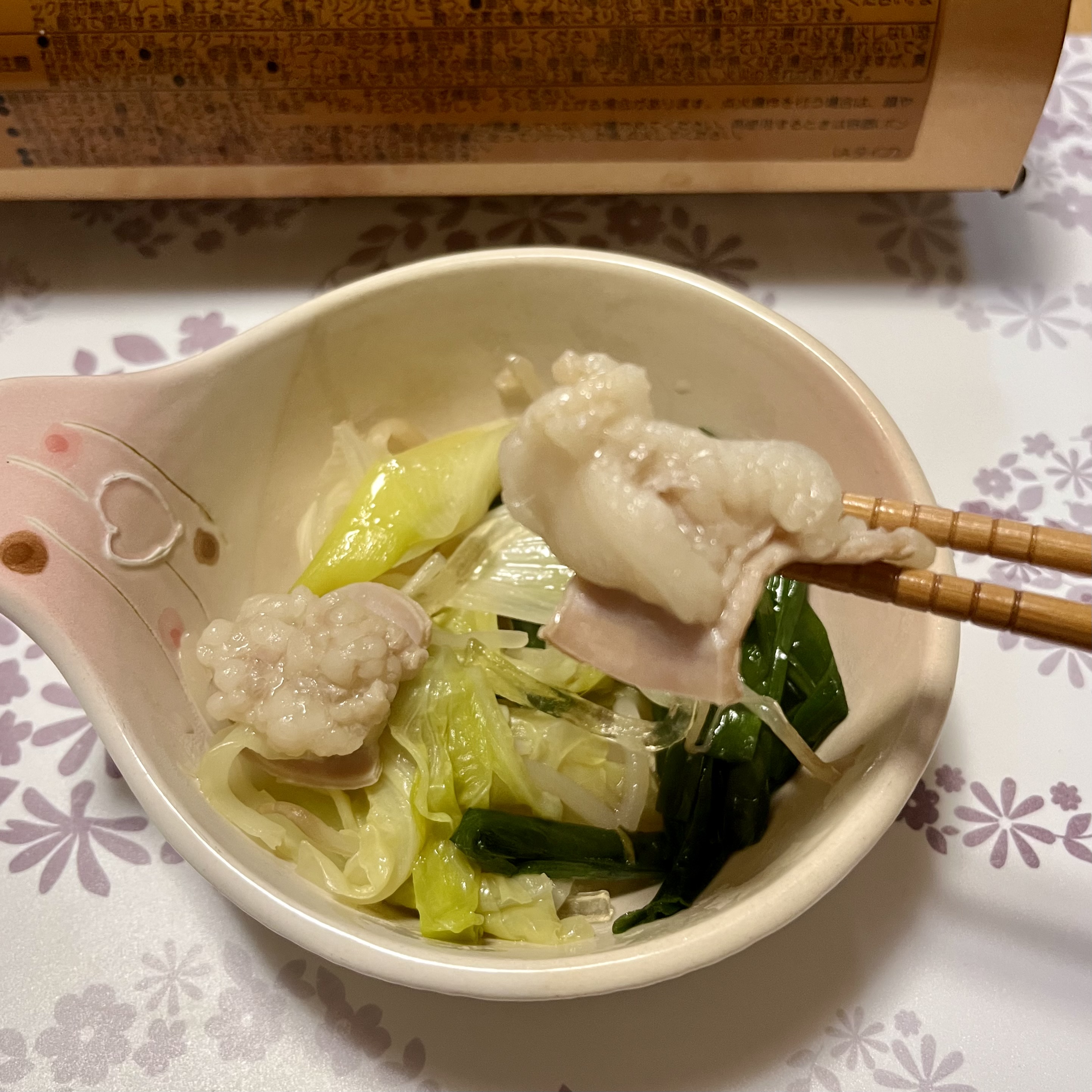 スープに溶け出したもつの旨味が染み込んだキャベツも格別です。セットのちゃんぽん麺で、シメまでお楽しみください。