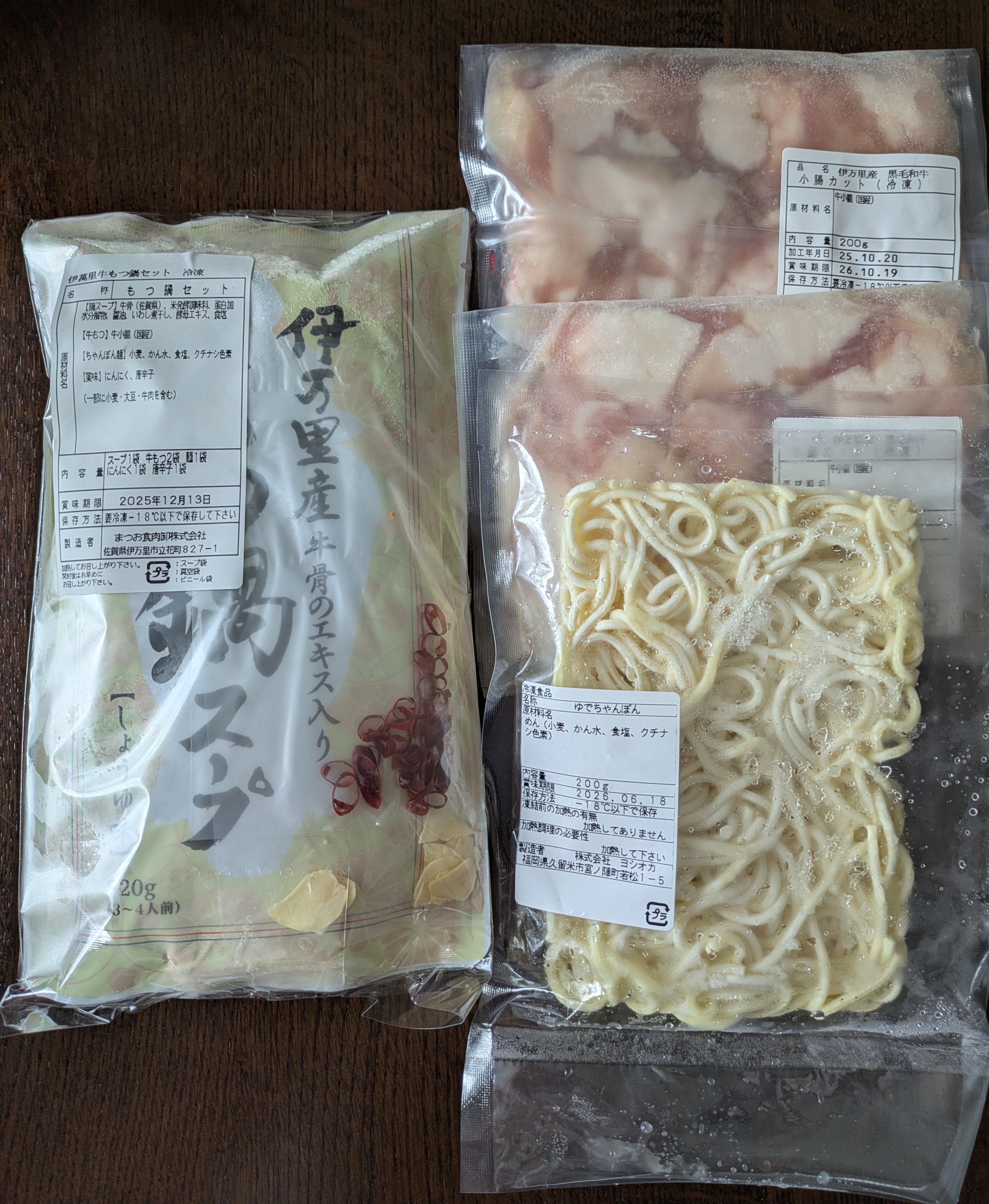 あとは、キャベツやニラを準備するだけで美味しいもつ鍋が作れるセット商品になっています。