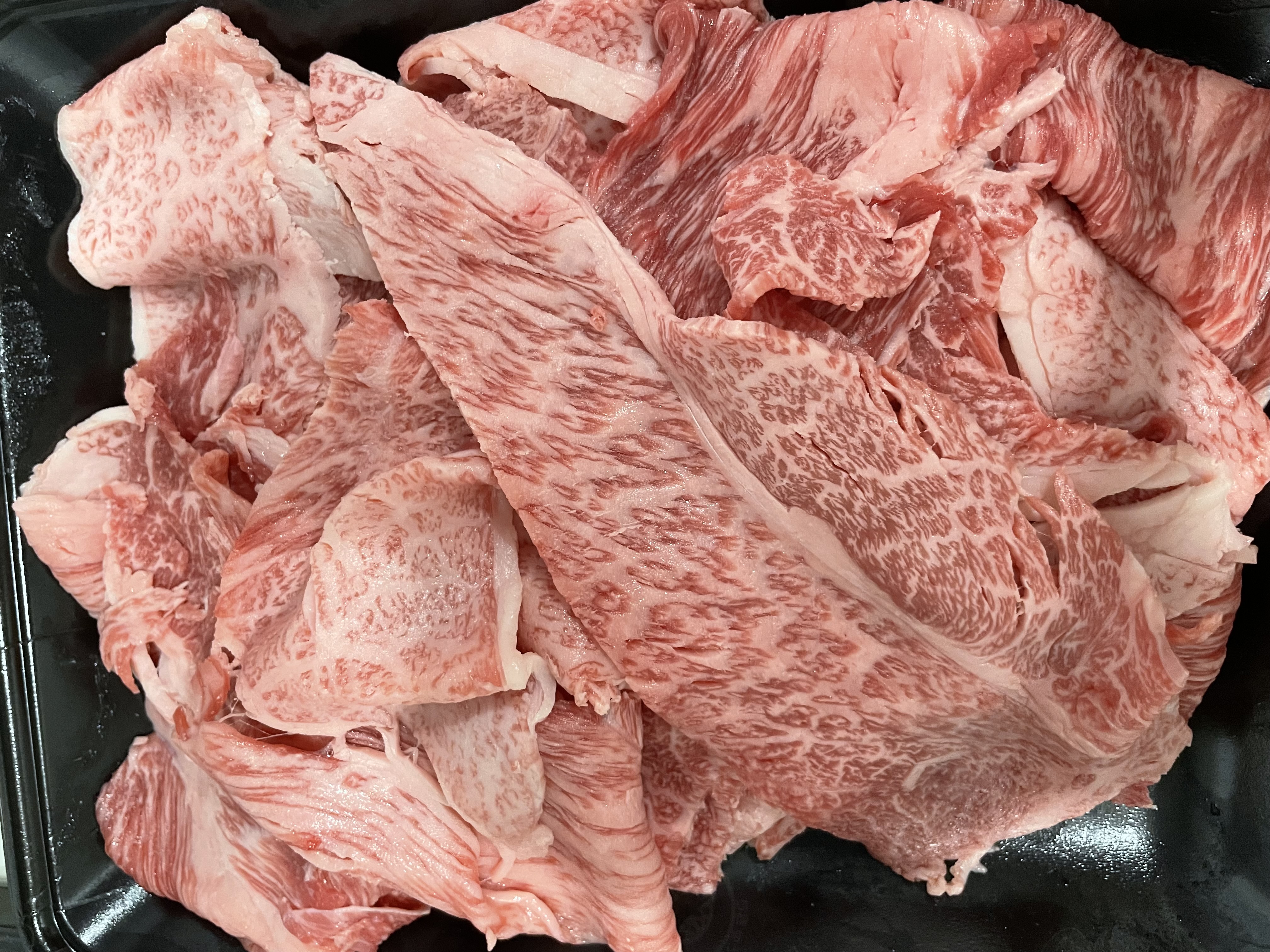 佐賀県伊万里市にある松尾勝馬牧場で育てられた伊萬里牛の「切り落とし」です。脂肪と赤身のバランスが良く、きめ細やかで、甘み・風味に優れている「伊萬里牛」。満遍なくサシが入っており、柔らかい食感で、焼いた時の甘い香りが食欲をそそります。切り落としとはいっても一枚一枚が大判なので、食べ応えがあり、使い勝手も良い商品です。牛丼や肉じゃが、すき焼き、ハッシュドビーフなど幅広く利用できます。化粧箱に入って届くため、自宅用はもちろん、ギフトにもおすすめです。